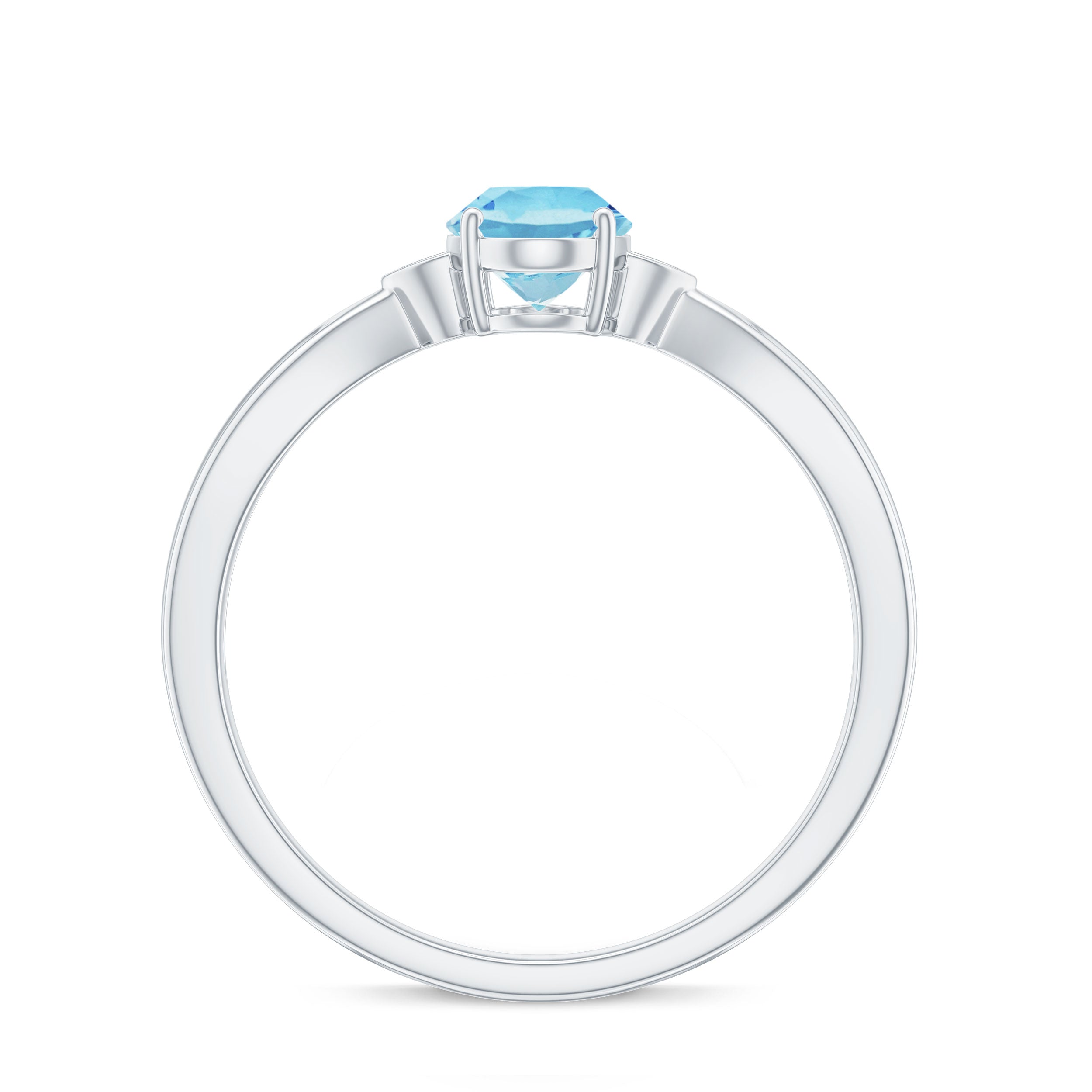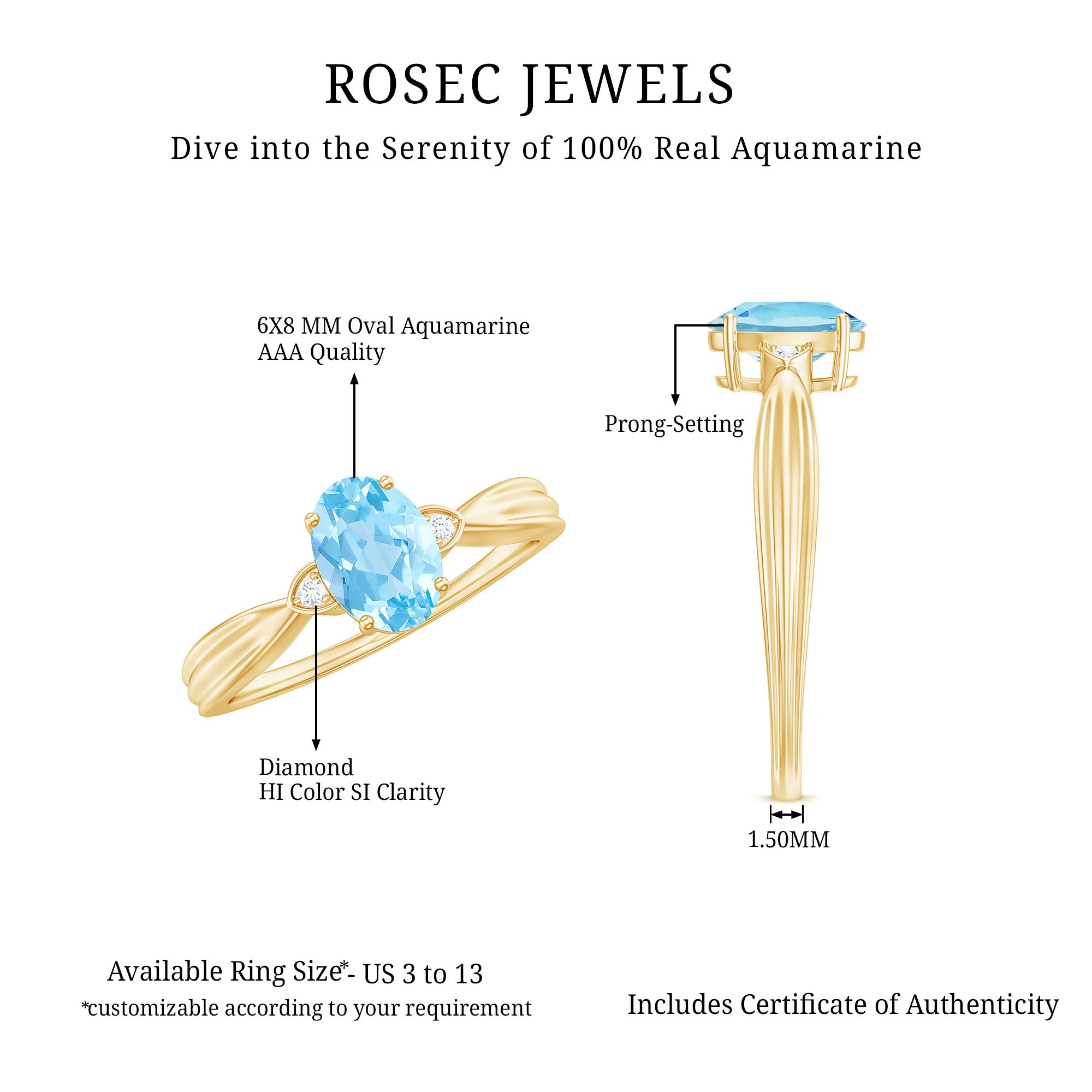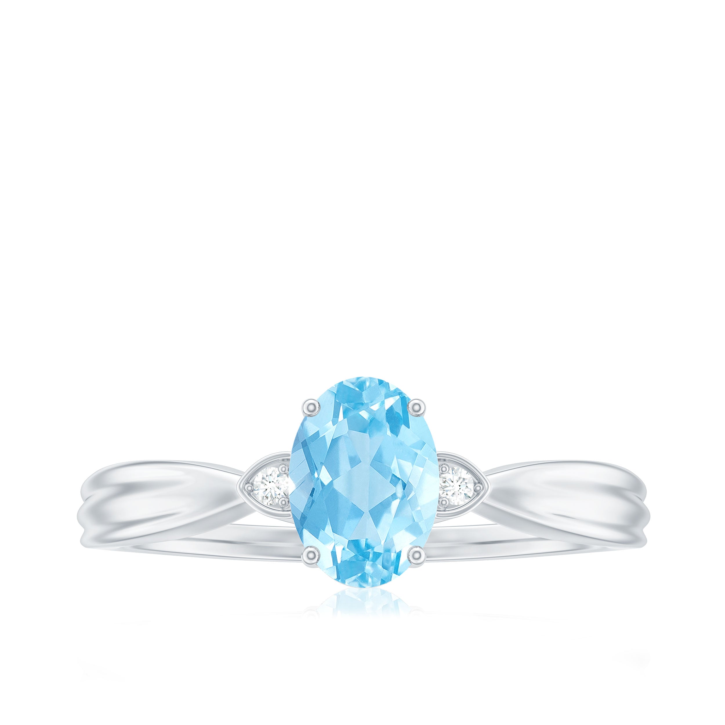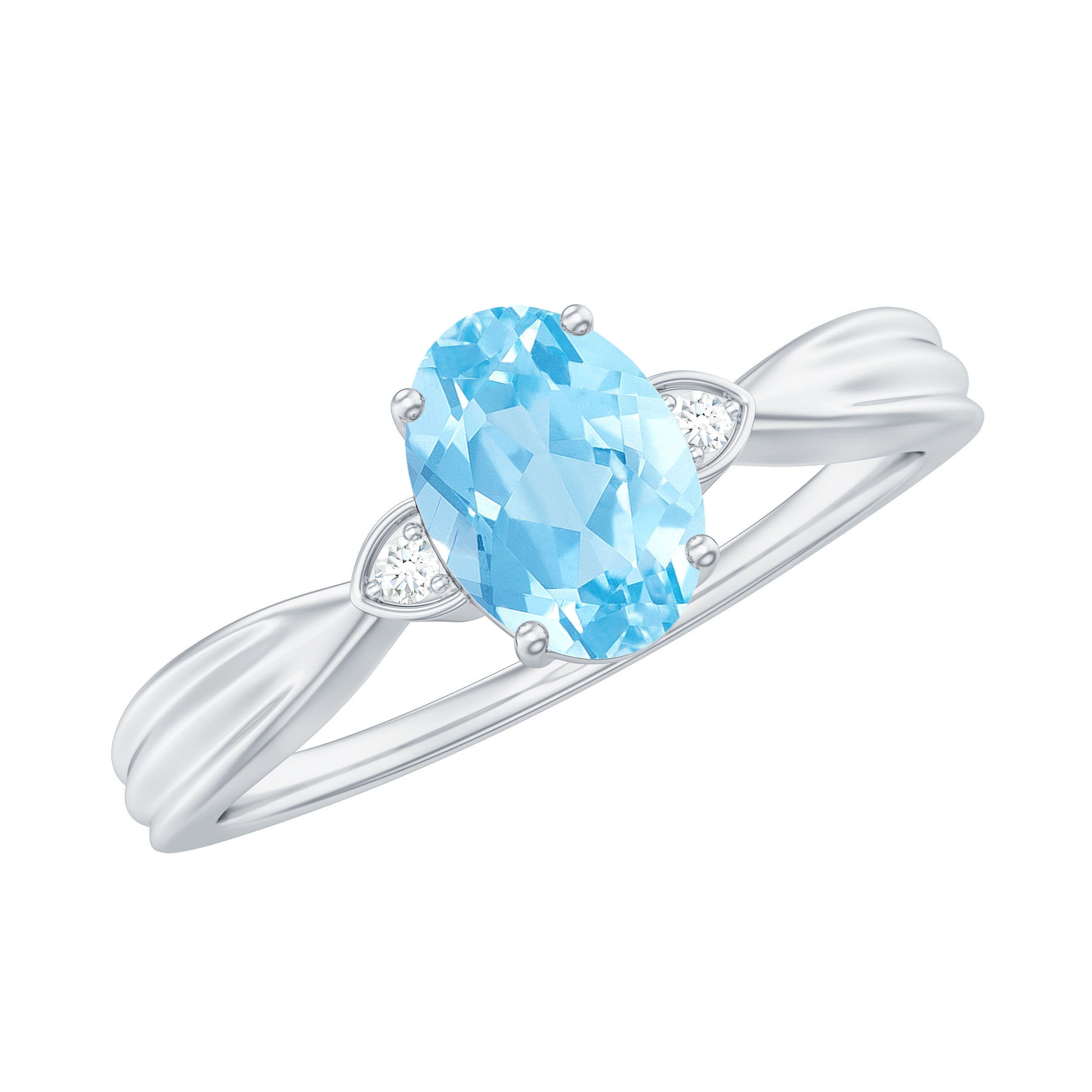 Oval Cut Real Aquamarine Solitaire Ring with Diamond