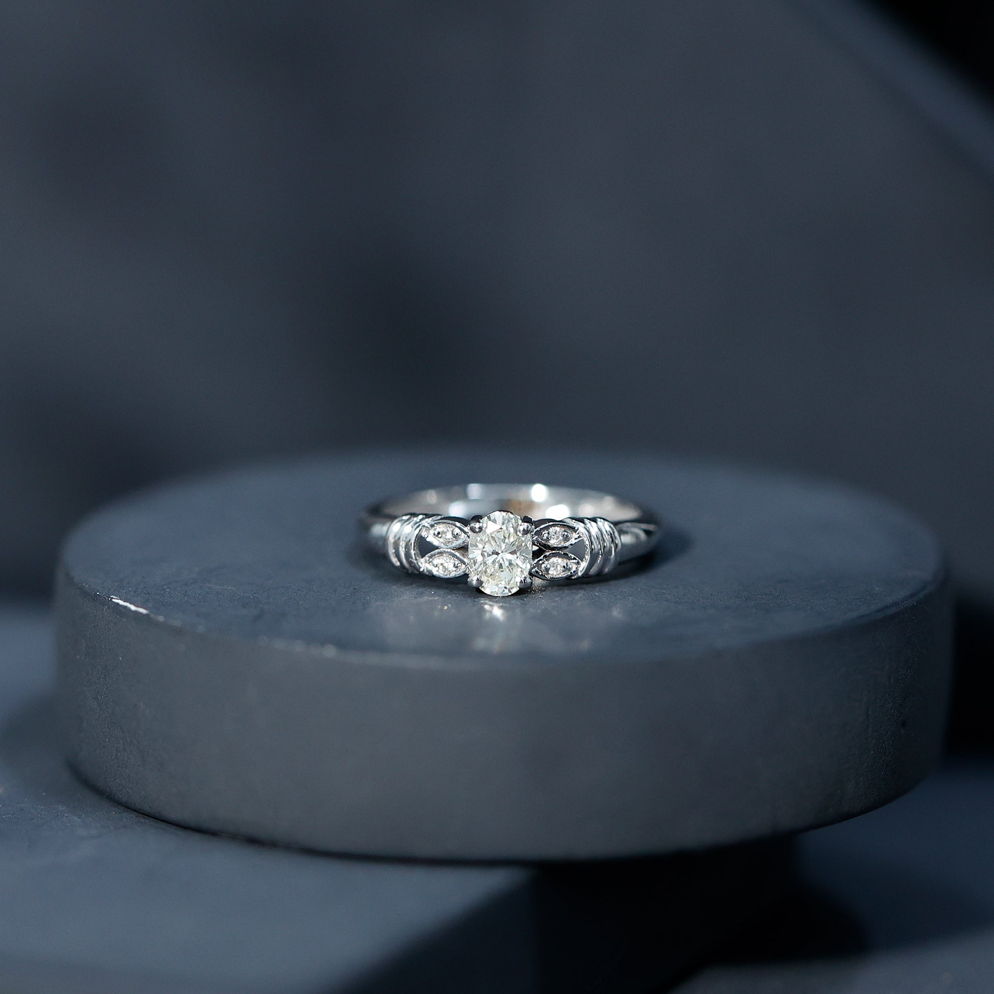 Oval Cut Real Diamond Solitaire Engagement Ring