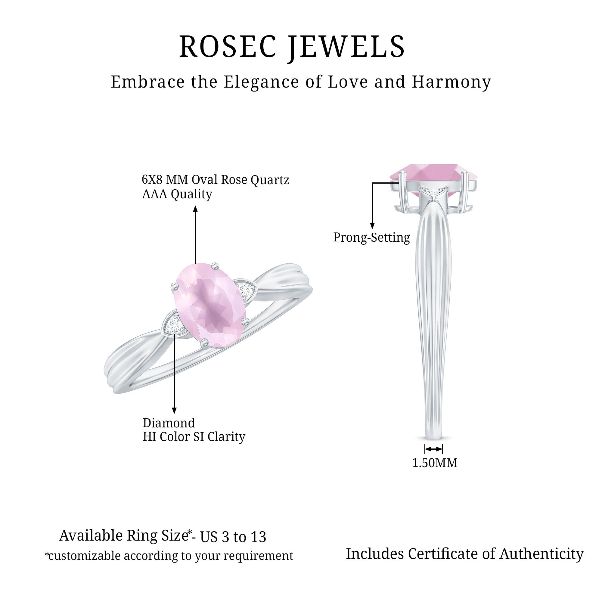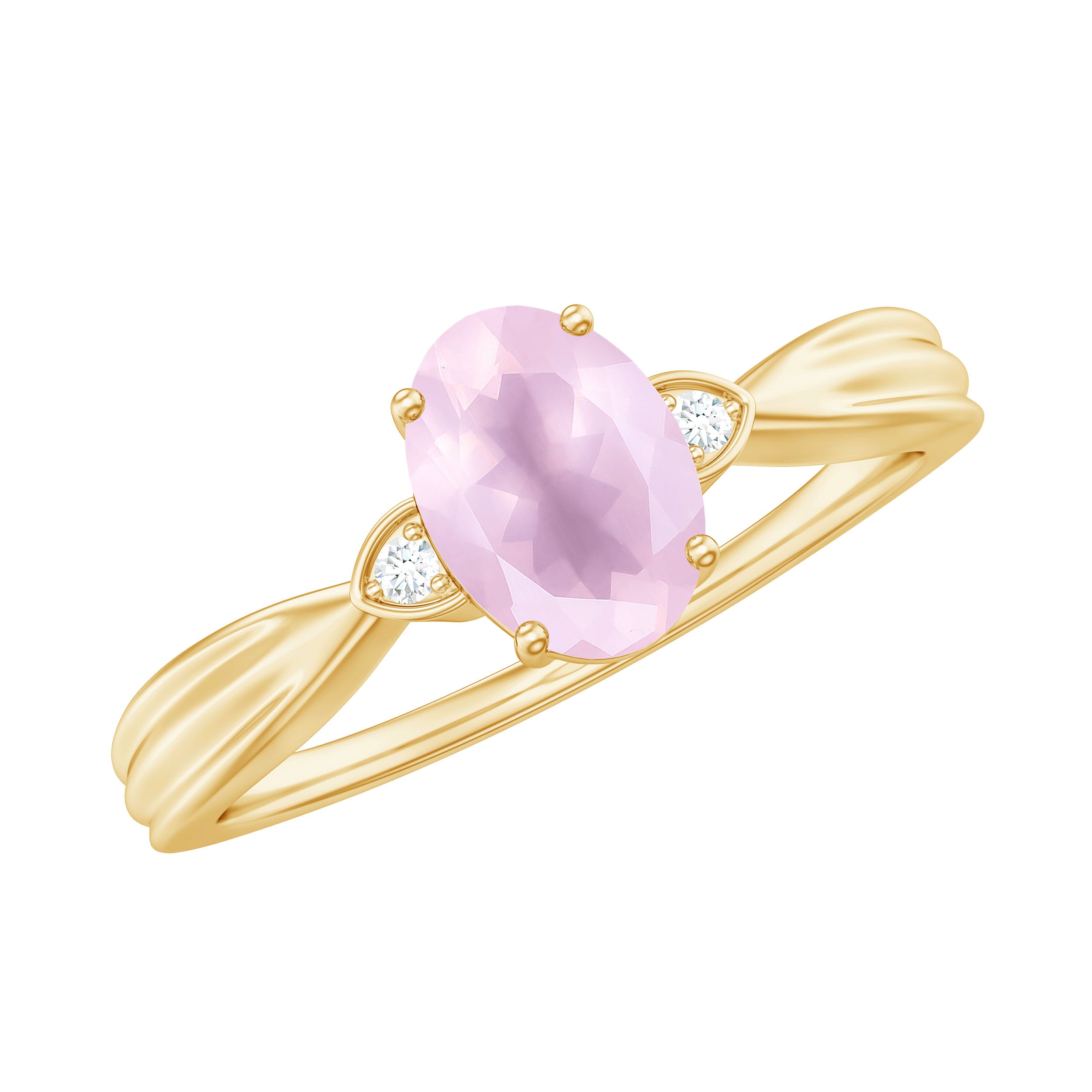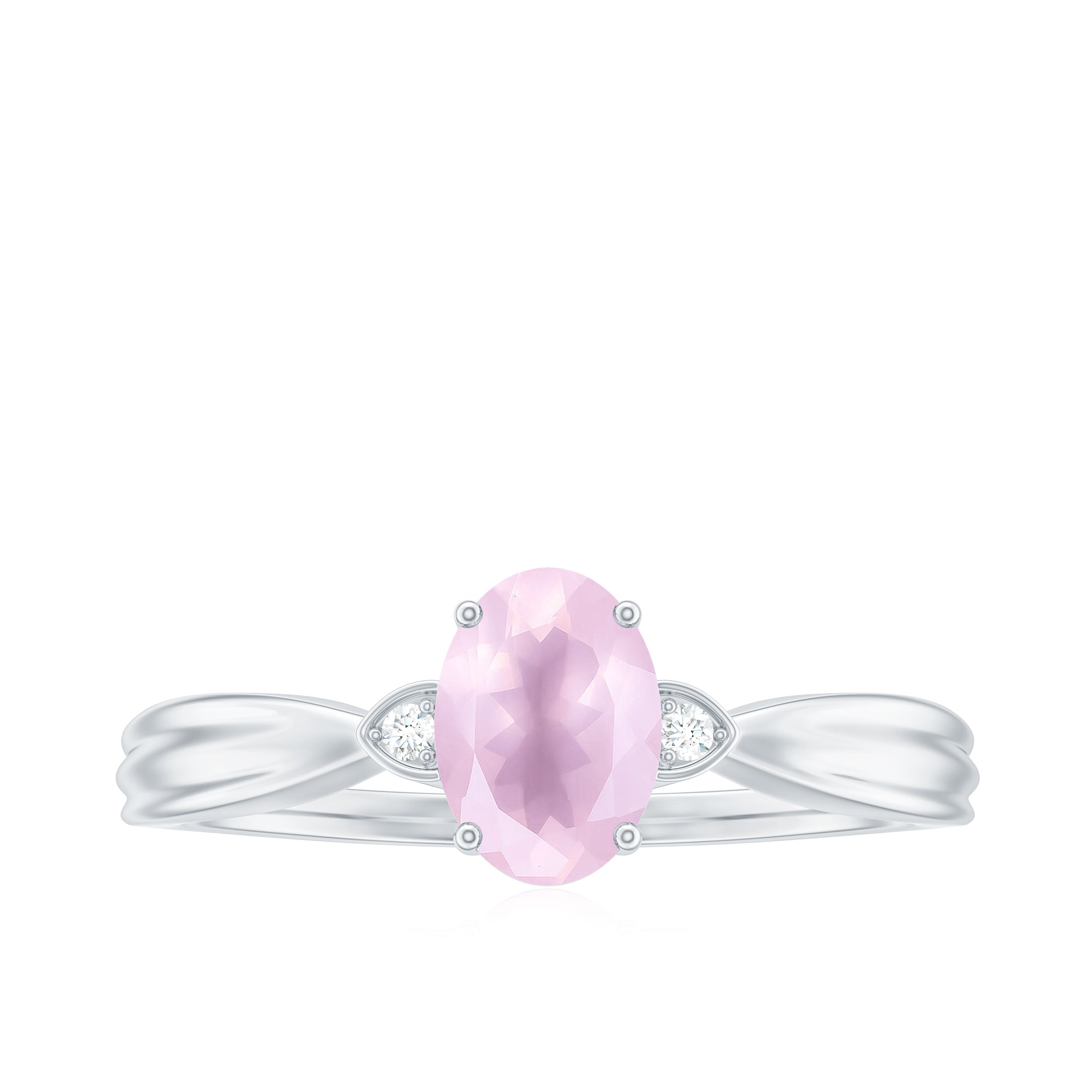 Oval Cut Real Rose Quartz Solitaire Engagement Ring with Diamond