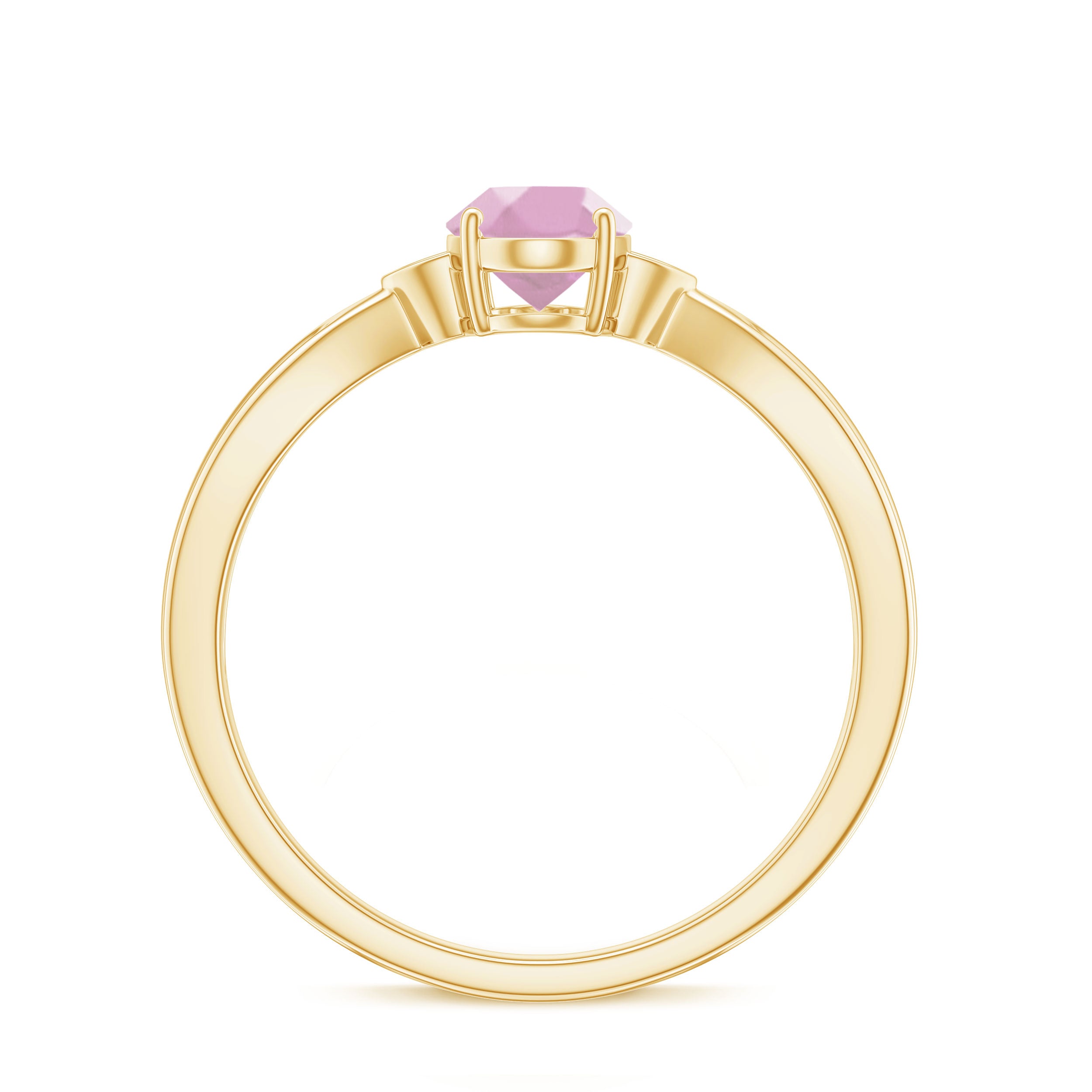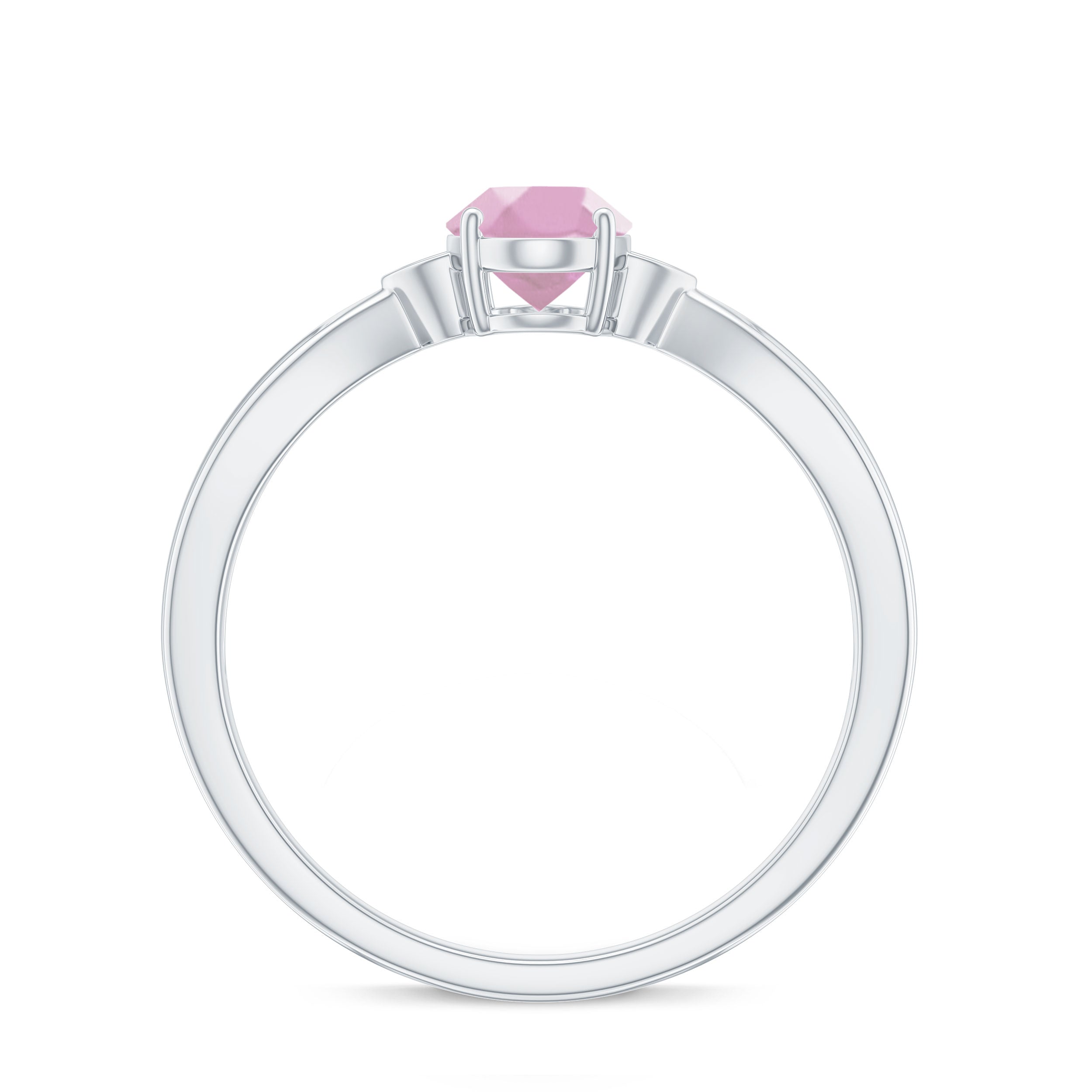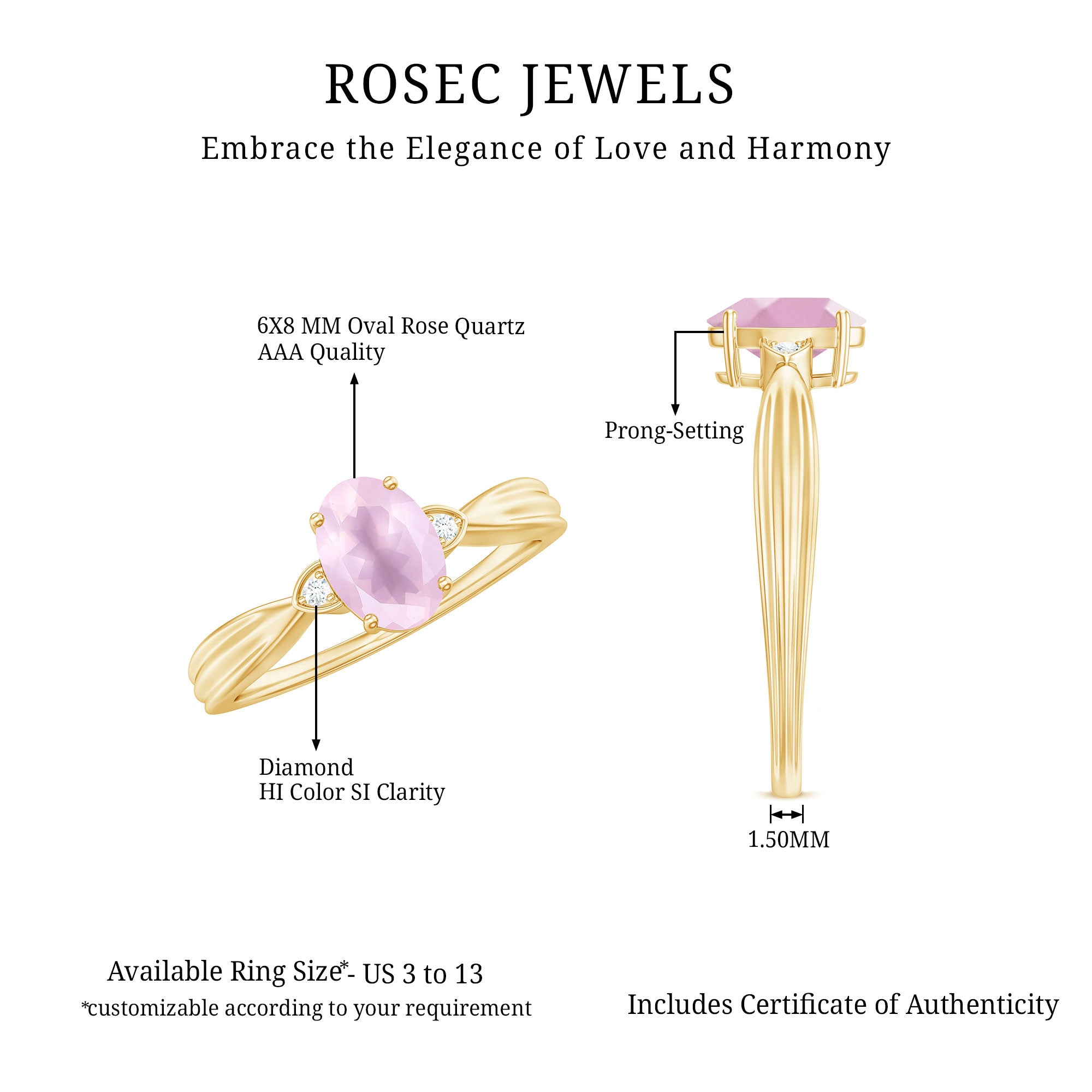 Oval Cut Real Rose Quartz Solitaire Engagement Ring with Diamond