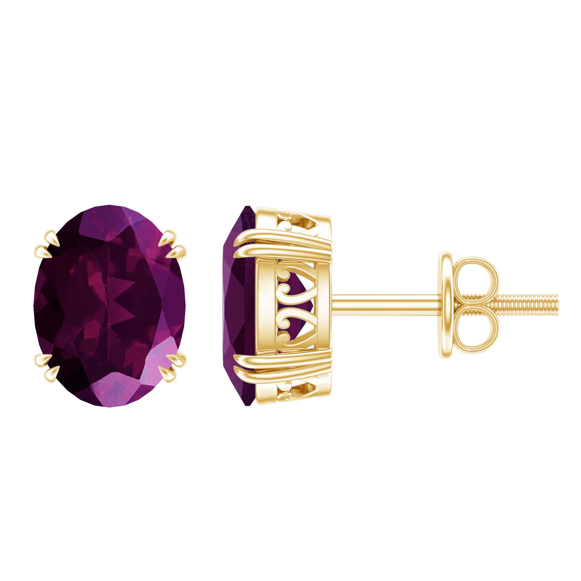 Oval Cut Rhodolite Solitaire Stud Earrings in Double Claw Setting