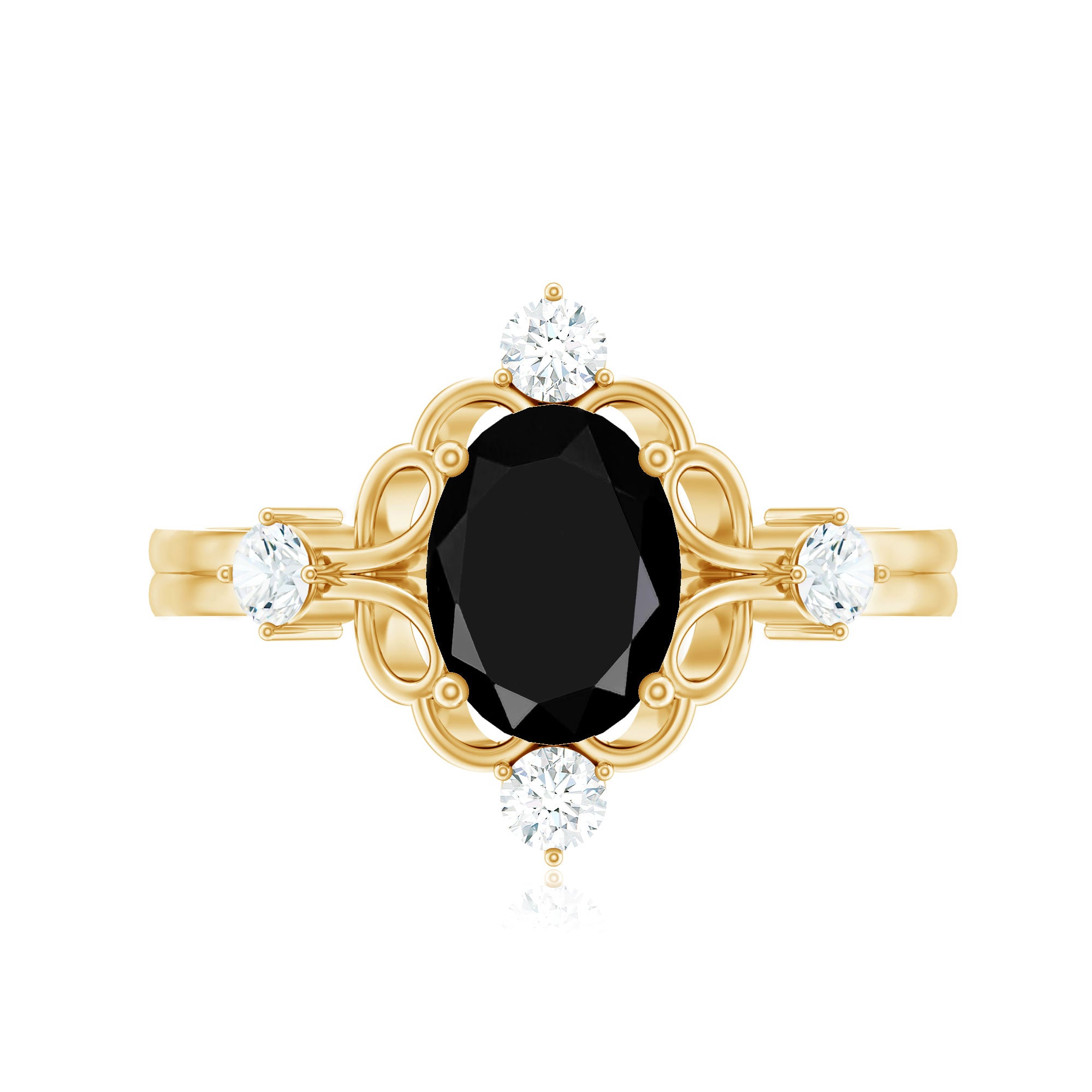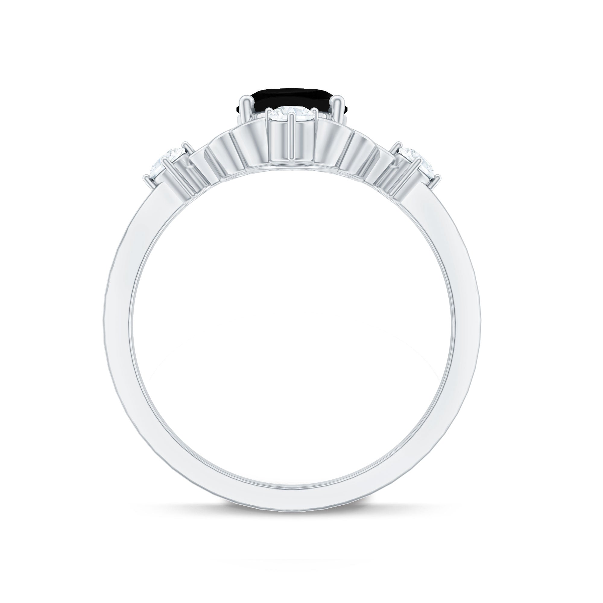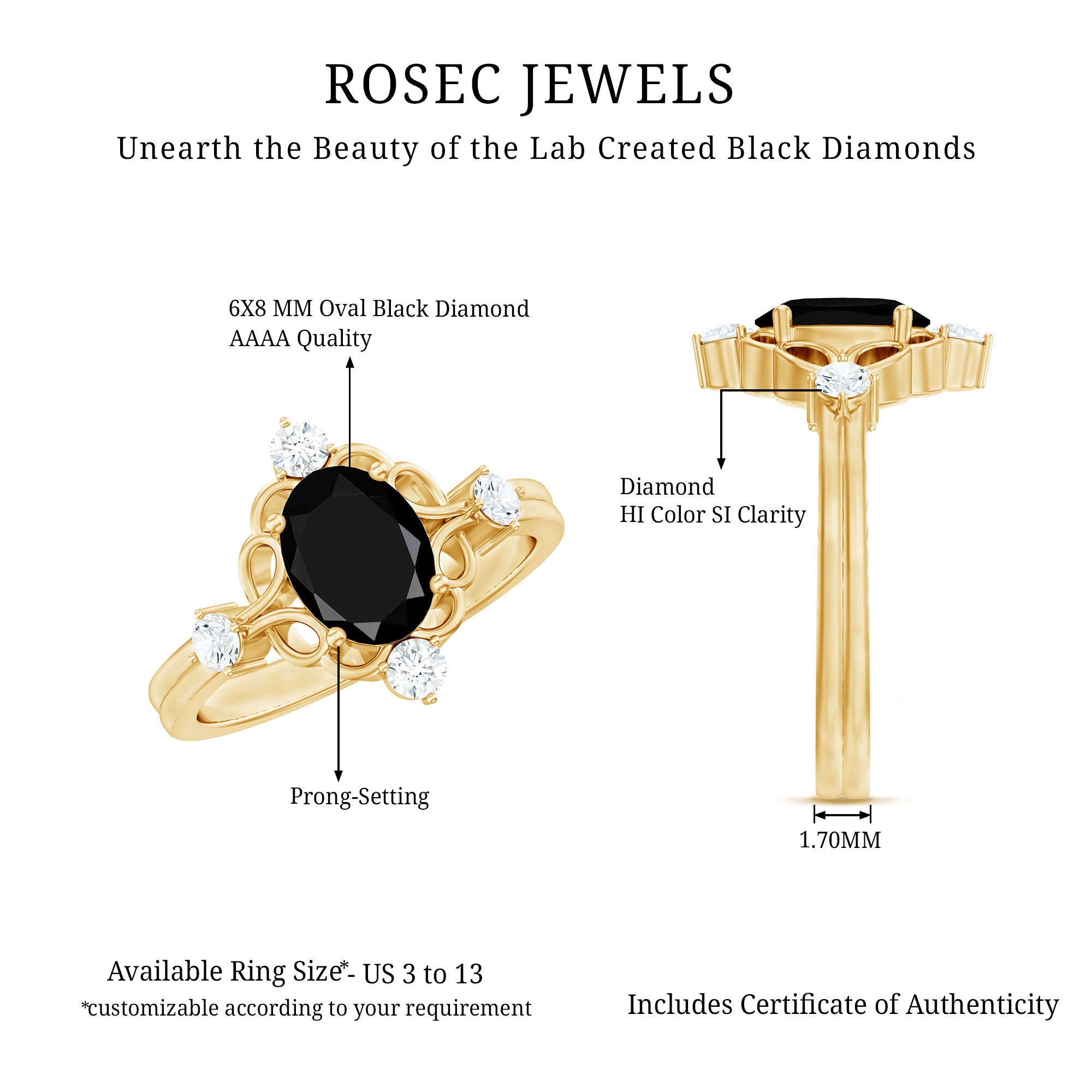 Oval Cut Solitaire Created Black Diamond Engagement Ring with Diamond