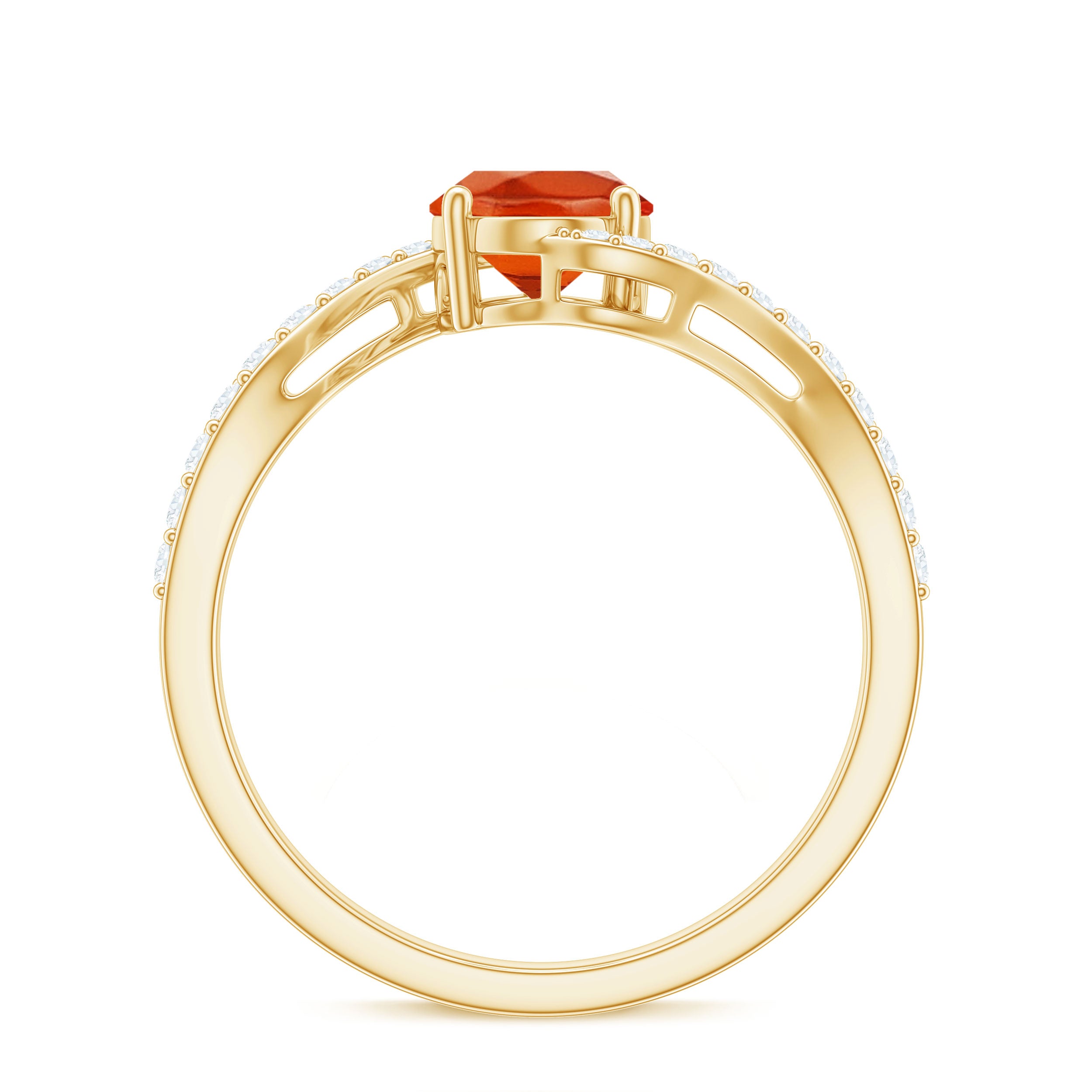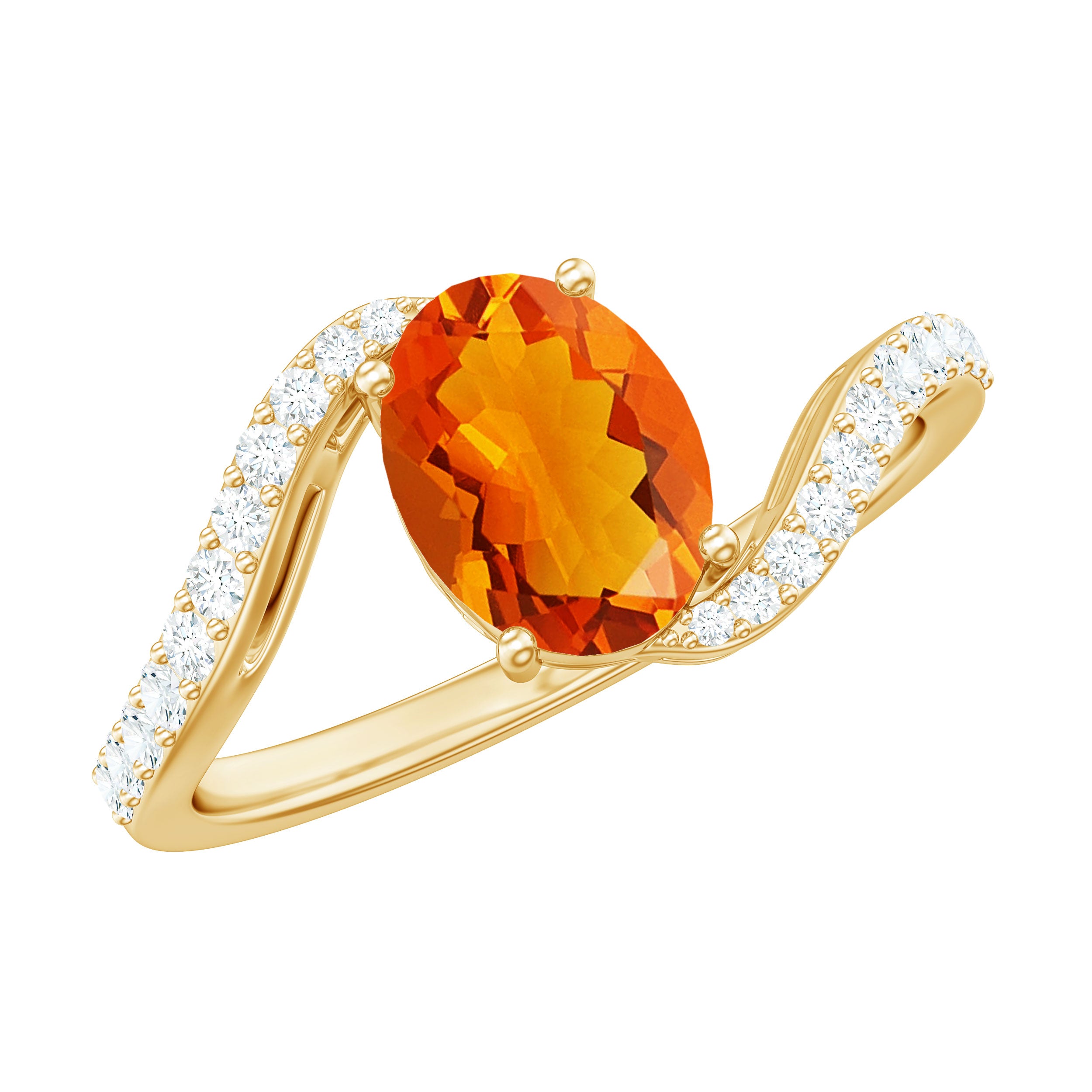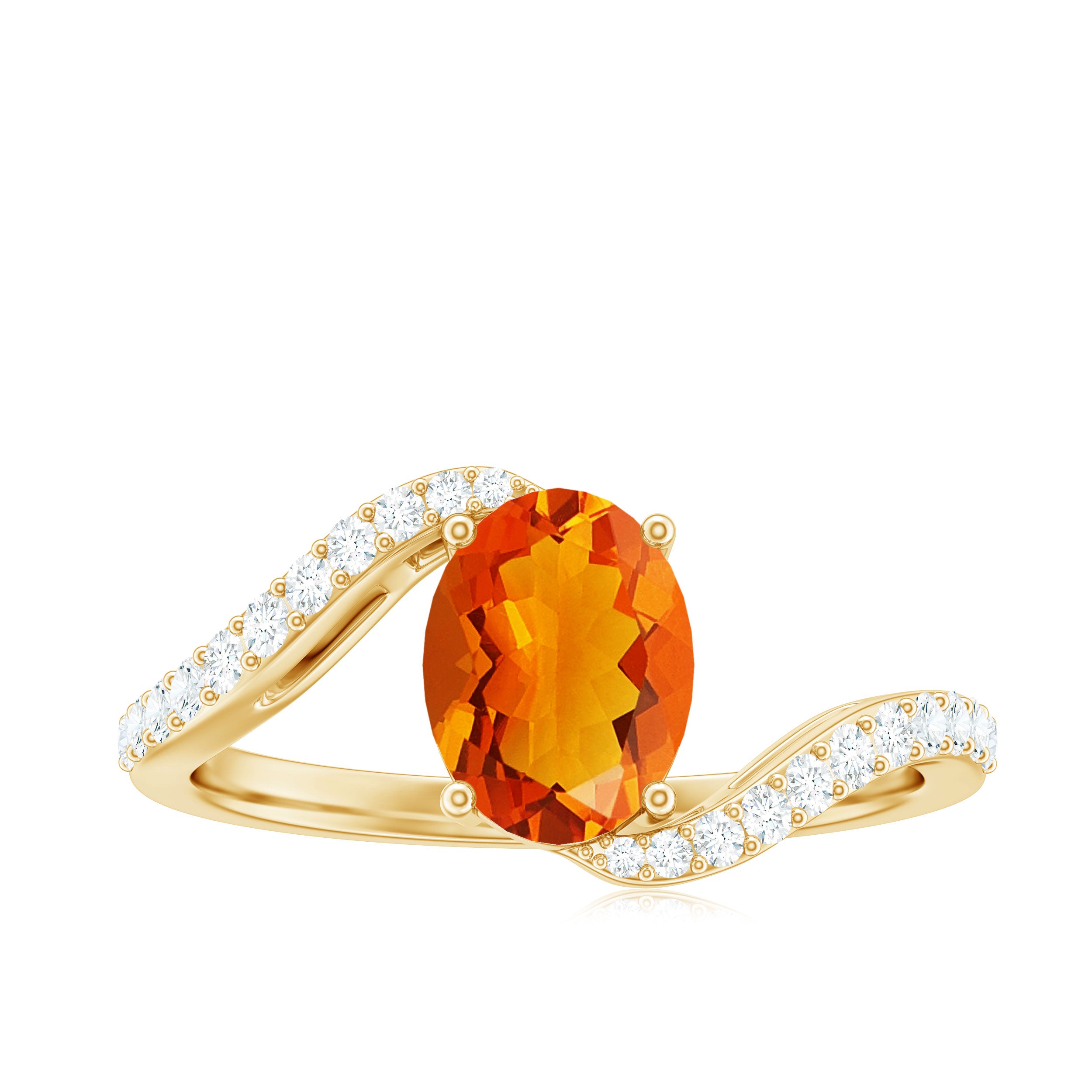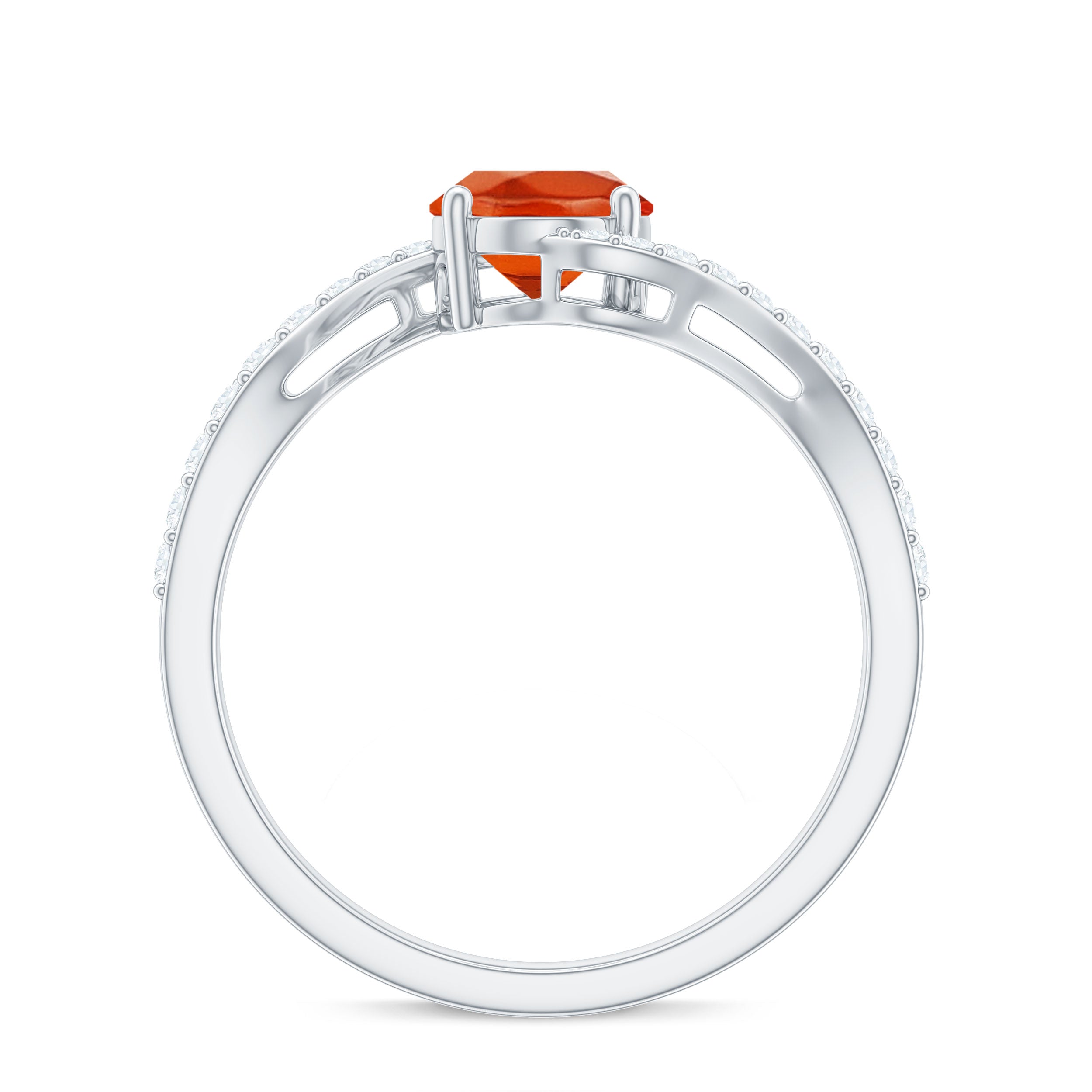 Chic and stylish this Fire Opal gemstone of Oval Cut in Prong Setting with Diamond on the Bypass shank is a perfect piece for your special occasion.