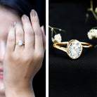 Step into elegance with a Moissanite Engagement Ring designed to shine with beauty and meaning. At its center is a stunning 7X10 MM oval cut moissanite, set in a secure prong setting. To give it extra shine and a unique twist, a hidden halo of small moissanites sits beneath the center stone. This small detail adds a soft, glowing sparkle that makes the Solitaire Engagement Ring even more special without taking away attention from the design. The band features a graceful bypass style, where the curves gently wrap around the center stone. This smooth twist gives the Bypass Engagement Ring a flowing, modern look while symbolizing unity, balance, and the shared path of two people coming together. The mix of the bold center stone and the soft shine of the hidden halo creates a ring that feels both classic and fresh. It is a beautiful choice for someone who loves traditional styles but also wants something with a modern touch. This Oval Engagement Ring comes carefully packaged in a jewelry box, ready to be shared or treasured. With its mix of elegance, comfort, and thoughtful design, it is a lovely symbol of love and commitment that is made to last.