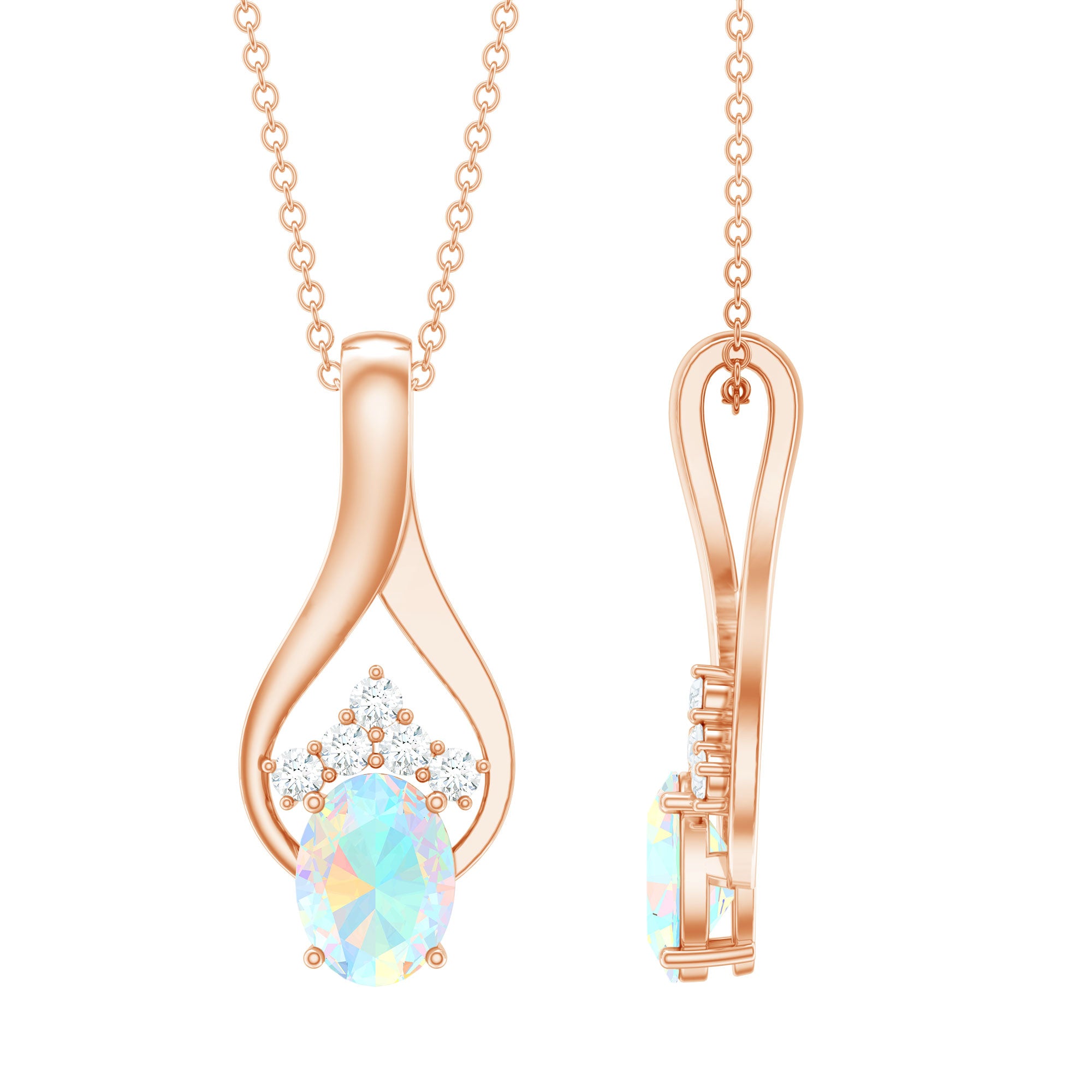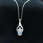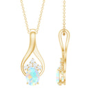 Natural Oval Ethiopian Opal and Moissanite Teardrop Necklace With Chain
