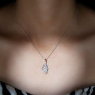 Dangling gently from an elegant metal design is a stunning 6X8 MM oval cut Ethiopian opal, creating a beautiful Teardrop Pendant Necklace. Strong prongs hold the opal safely in place, letting its glowing colors shine with every movement. Above the opal sit sparkling round moissanite stones arranged like a bright little crown, adding extra brilliance and drawing attention to the center gem. Warm flashes of color from the AAA quality ethiopian opal blend beautifully with the clear sparkle of the D-VS1 quality moissanite, creating a piece that feels both magical and refined. Hanging from a smooth cable chain, the Opal and Moissanite Necklace rests comfortably around the neck and fits well with both everyday outfits and special-occasion styles. Its graceful teardrop shape makes it a lovely choice for anyone who loves jewelry with meaning, beauty, and a touch of uniqueness. Given in a jewelry box along with a certificate of authenticity, the Oval Opal Necklace arrives ready for gifting or keeping as a personal treasure.