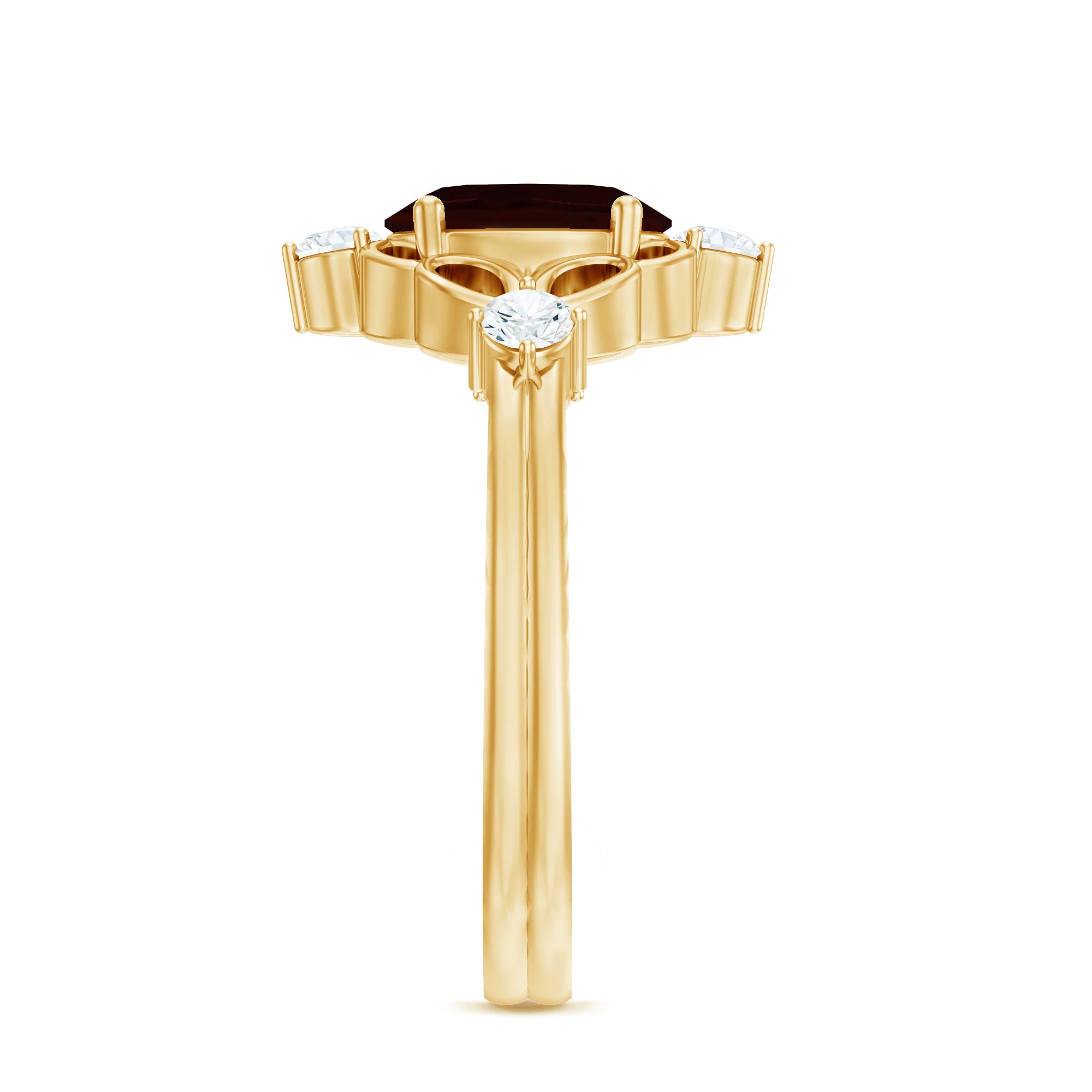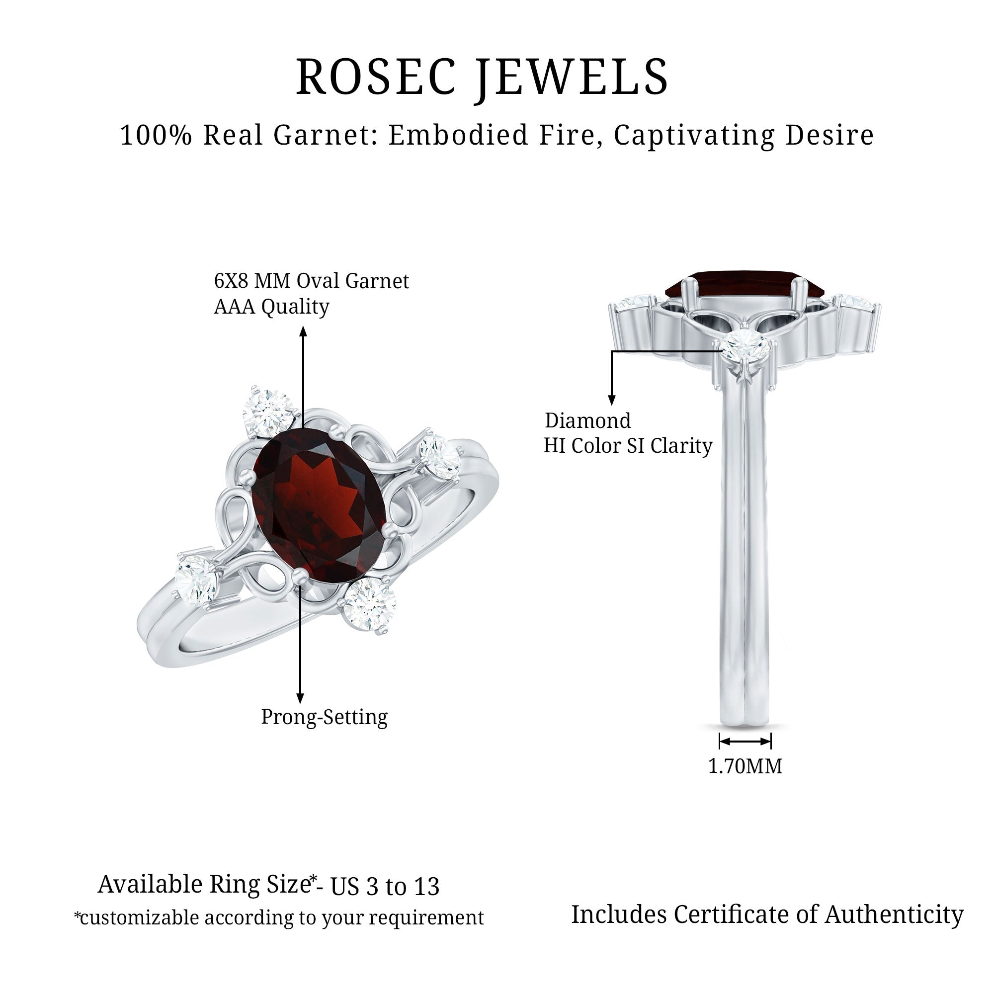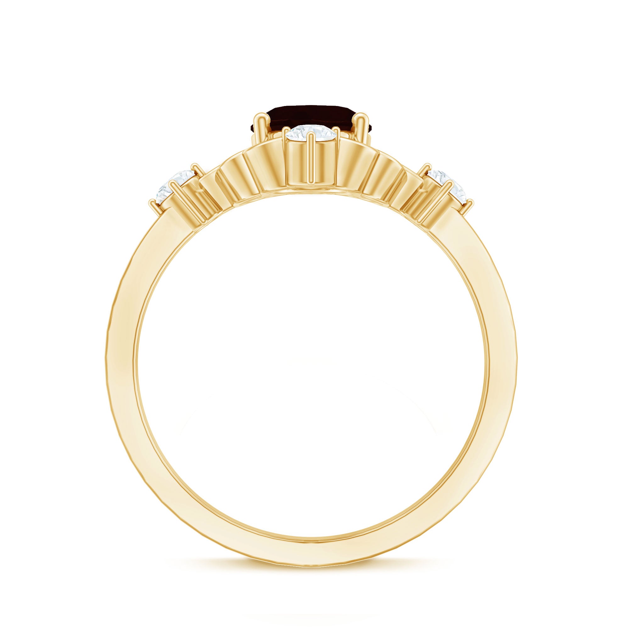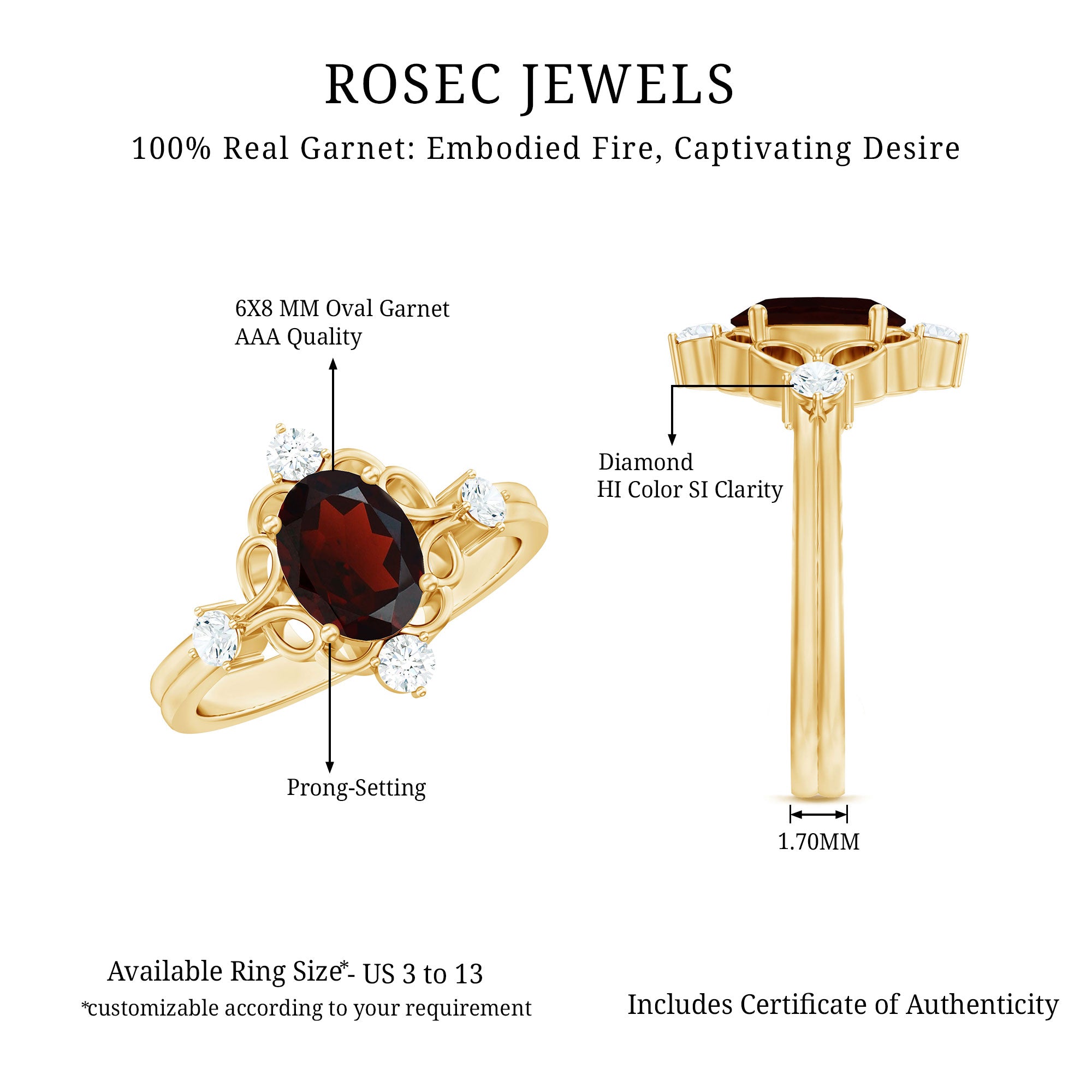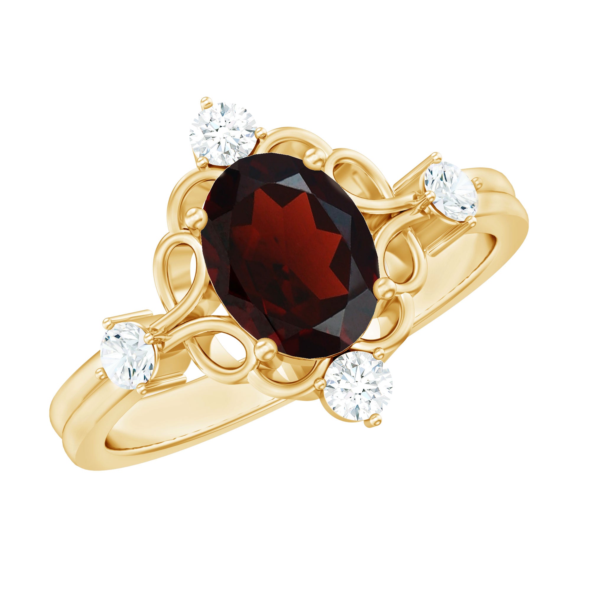 The uniquely shaped garnet in this stunning cocktail ring is sure to stand you out from the rest. The intricately crafted detailing around the oval garnet and sparkly round Diamond accentuate the intense hue of the center stone. If you fancy classic solitaire that is alluring and has a lasting impact, go for this exquisite ring that is all about bold elegance and glitter.