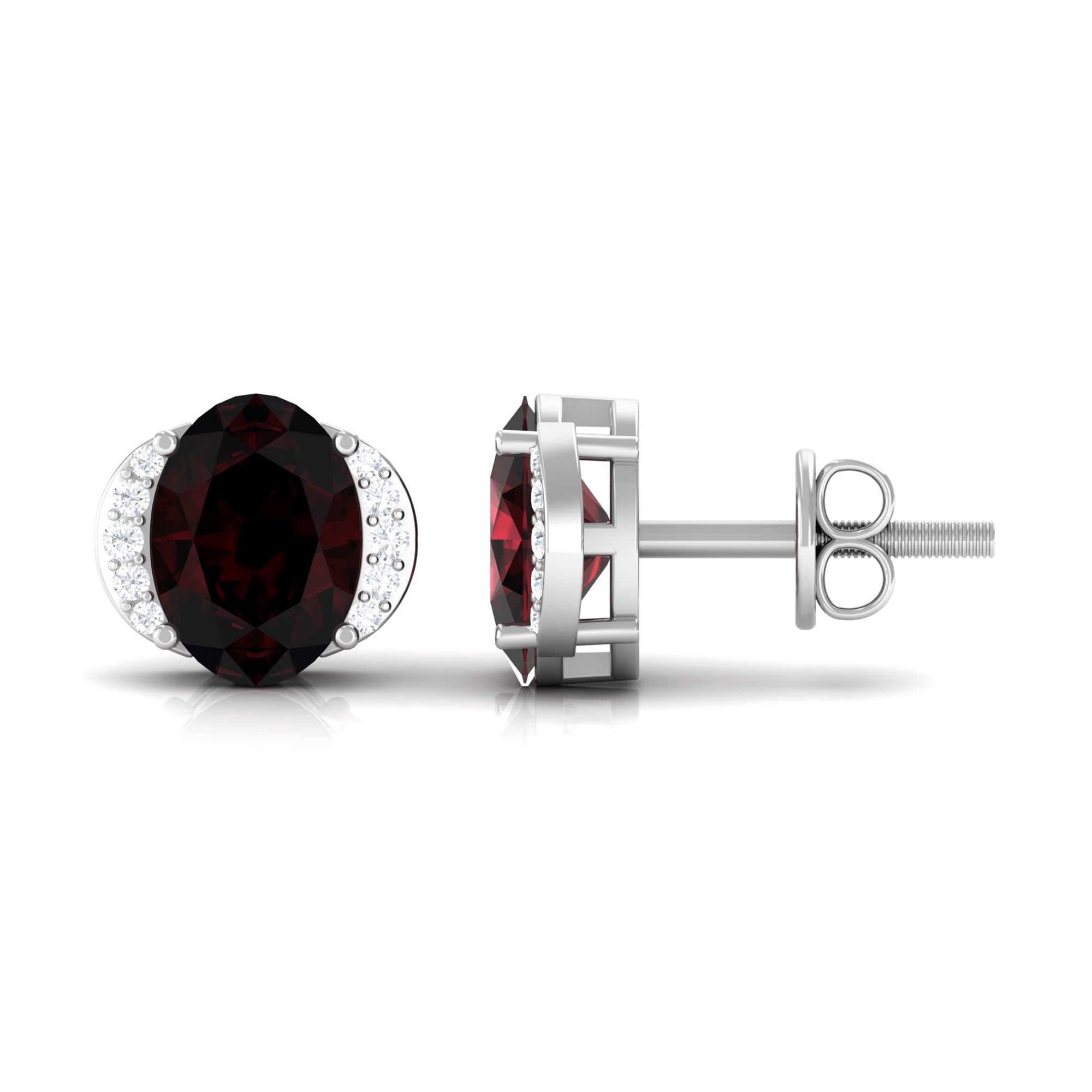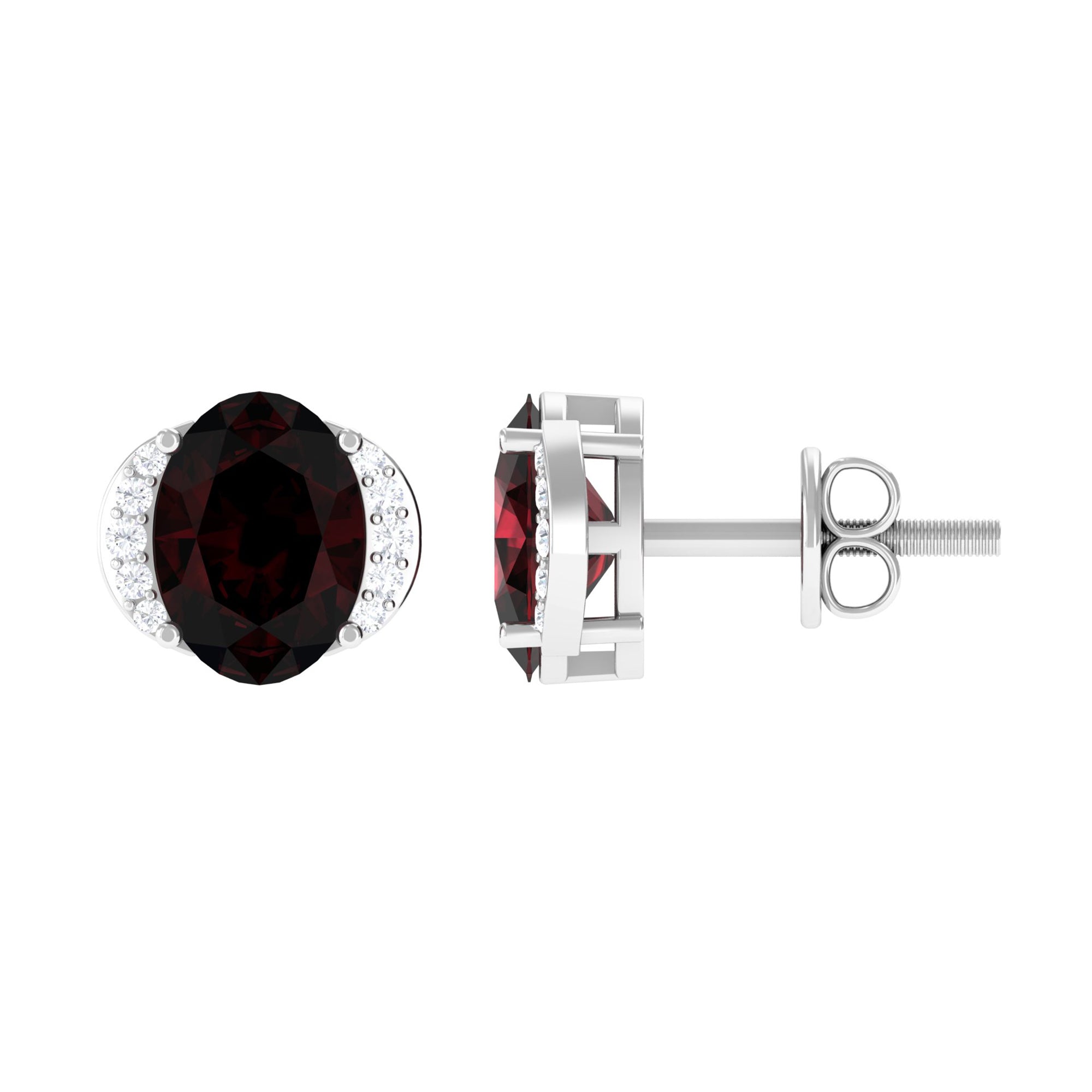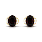 Oval Garnet Solitaire Stud Earrings with Diamond
