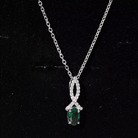 Oval Lab Created Emerald Infinity Pendant with Moissanite in Silver