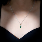 Dive into the sophistication of our Lab Grown Emerald Pendant Necklace, where every aspect radiates elegance and allure. Our Emerald Infinity Necklace is more than just a piece of accessory, it stands as a bold declaration, a representation of eternity, and a luminous chapter in your unique love narrative. The design features a 5X7 MM oval cut lab grown emerald delicately cradled in prong setting at the bottom with an infinity symbol, embellished with shimmering round Moissanite stones. Embrace your inner brilliance and adorn yourself with the passion and shine of AAAA quality emerald and D-VS1 quality moissanite, allowing this Infinity Drop Pendant to tell your love story through its exquisite gemstones. Curated in gold plated silver, Rosec Jewels is committed to crafting stunning jewelry pieces using Certified Lab Cultured Gemstones.