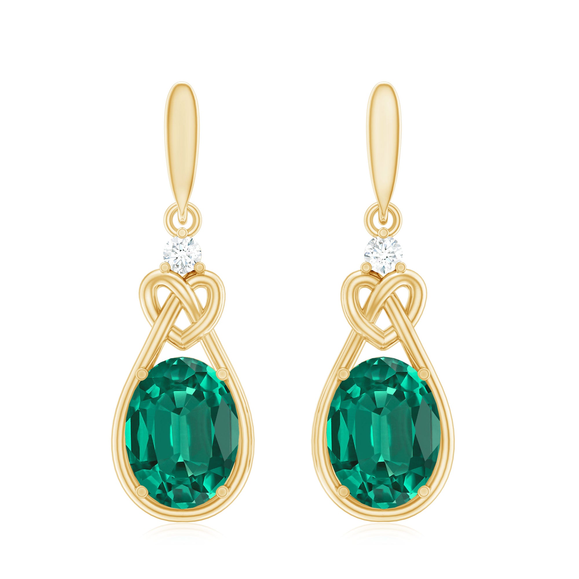 Oval Lab Created Emerald Love Knot Dangle Earrings