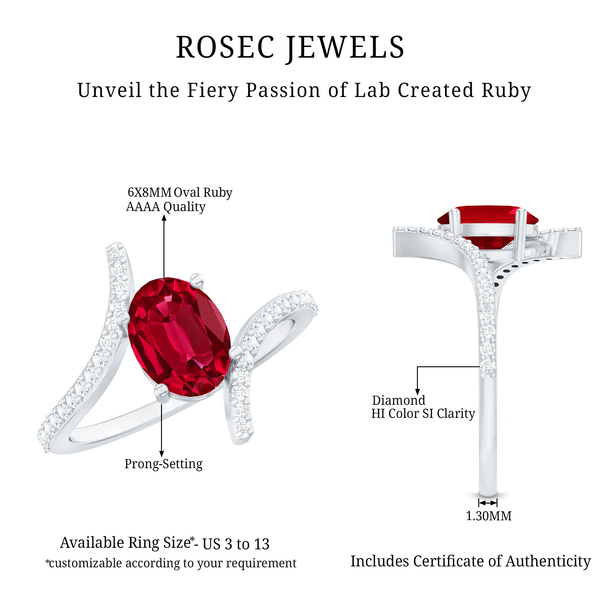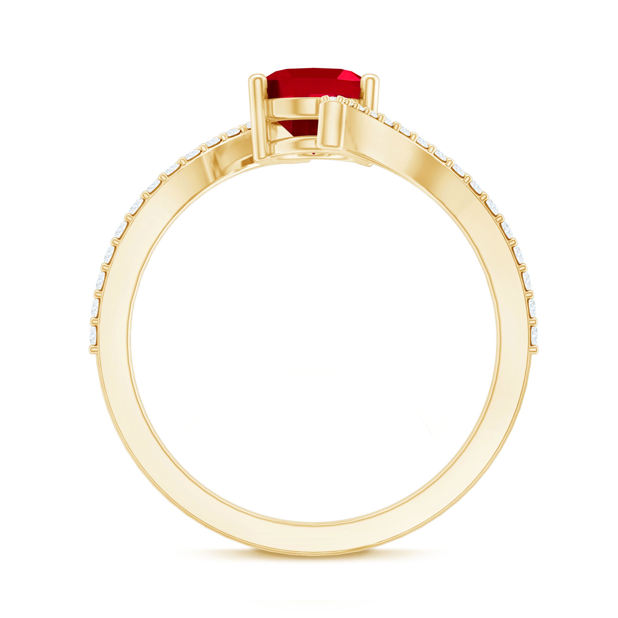Bring a burst of color and elegance to your special moment with this stunning Lab Created Ruby Engagement Ring that beautifully combines passion and style. At the heart of the Solitaire Ring sits a radiant 6X8 MM oval cut lab created ruby, held securely in prong setting. Adding to its charm, the bypass shank is studded with sparkling diamonds that glimmer with every movement. The delicate diamond accents perfectly highlight the ruby’s deep hue, creating a wonderful balance between luxury and simplicity. This Oval Shaped Engagement Ring is thoughtfully crafted to bring out the best of both stones, the fiery red of the AAAA quality lab grown ruby and the cool brilliance of the HI-SI quality diamonds. Designed for comfort as much as beauty, the smooth curves of the band make it easy to wear every day while still feeling elegant and special. Ideal for those who love vibrant jewelry with meaning, the Ruby and Diamond Ring shines with personality and charm. Packed beautifully and ready to gift, this Bypass Ring is a timeless reminder of love, warmth, and the moments that truly matter.