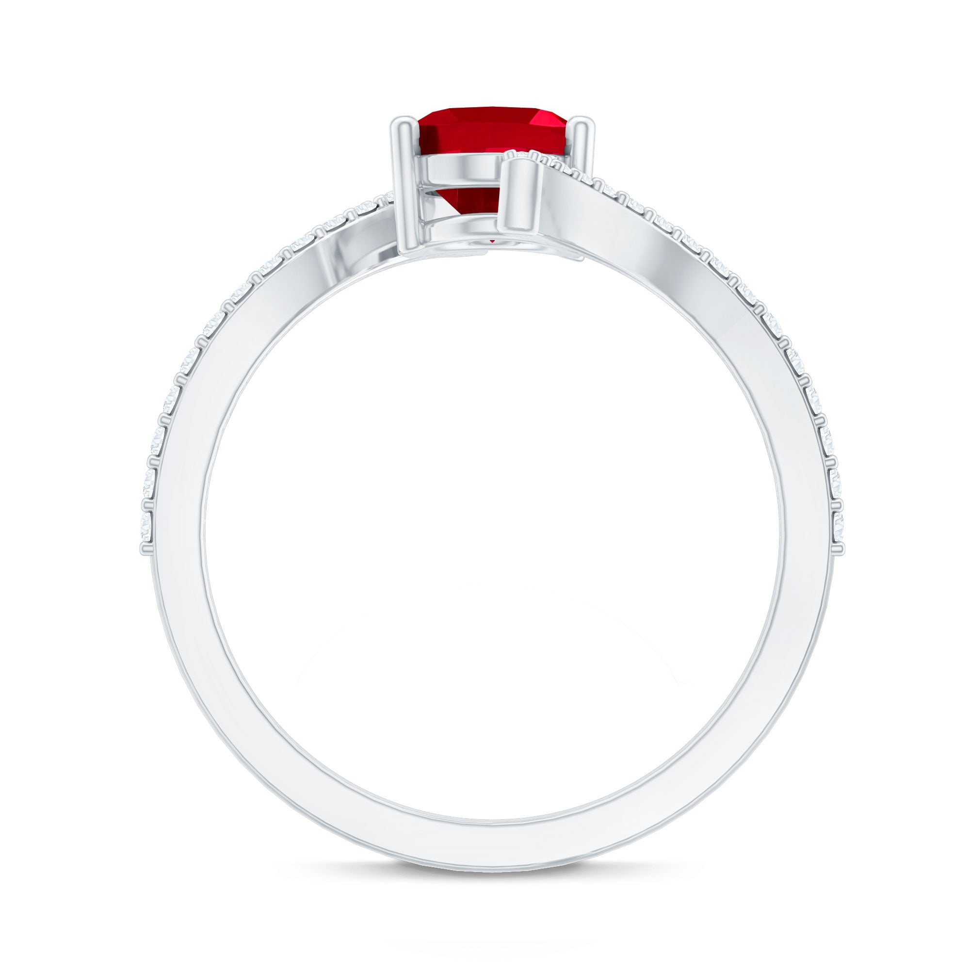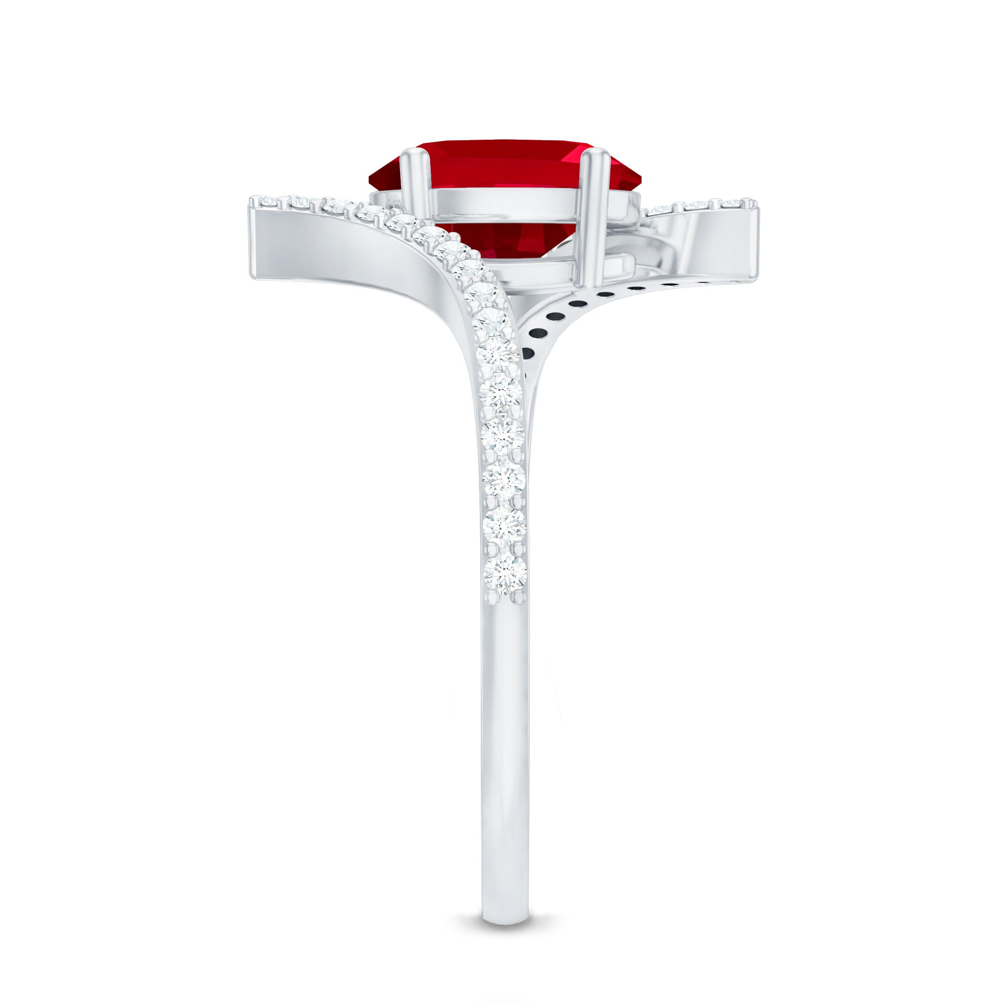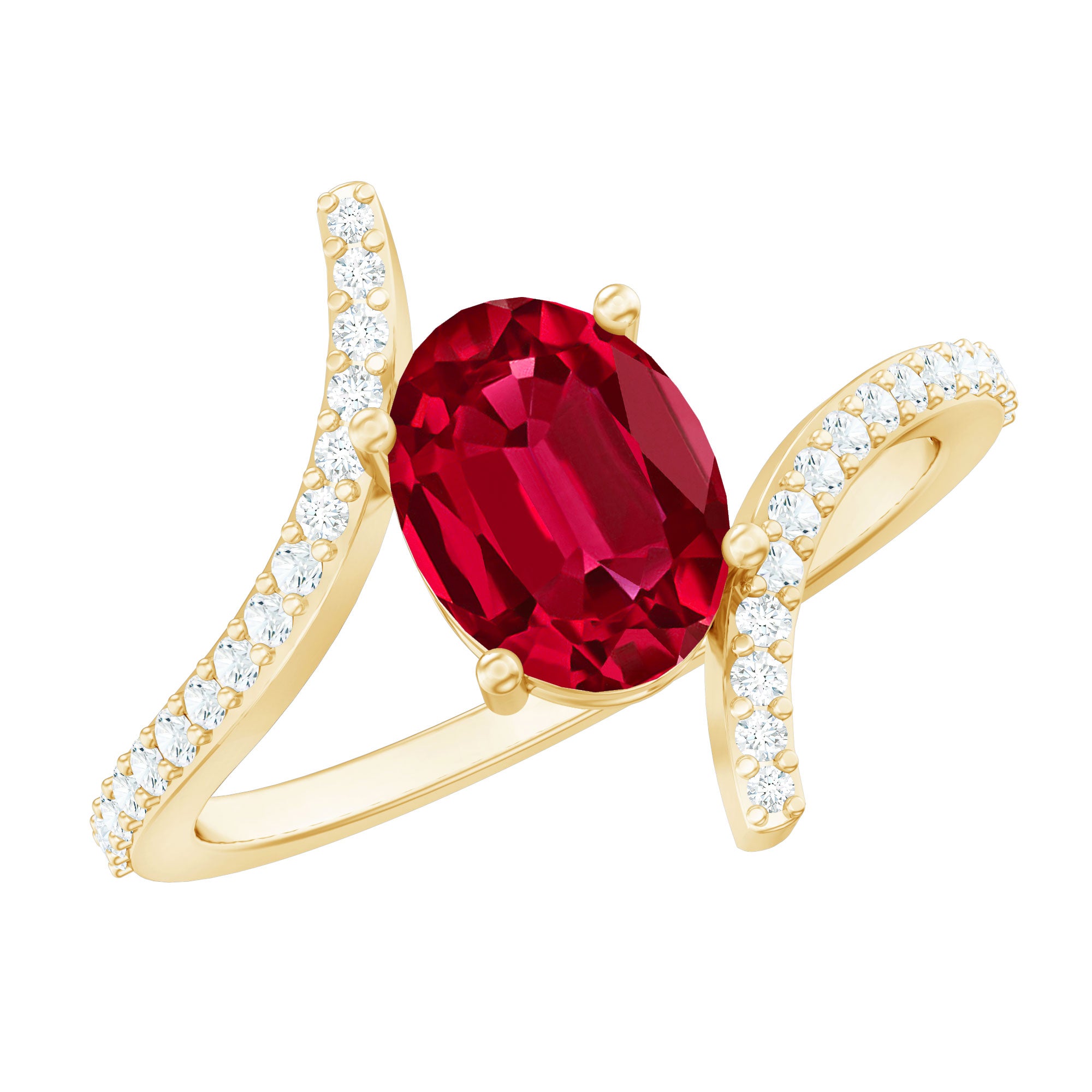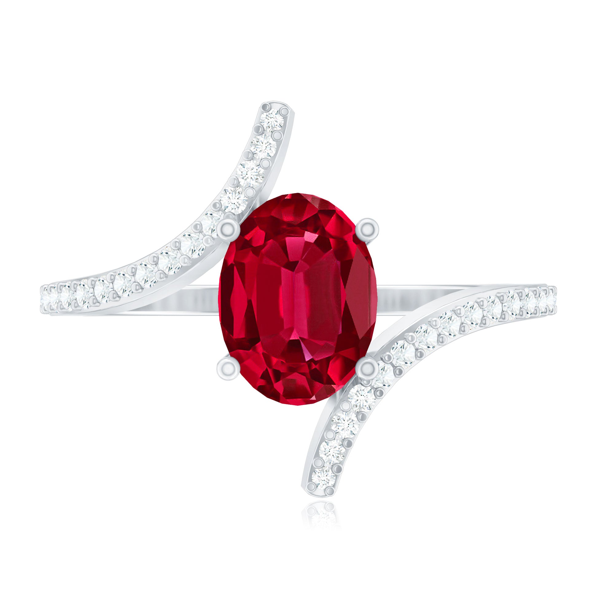 Oval Lab Created Ruby and Diamond Bypass Engagement Ring