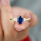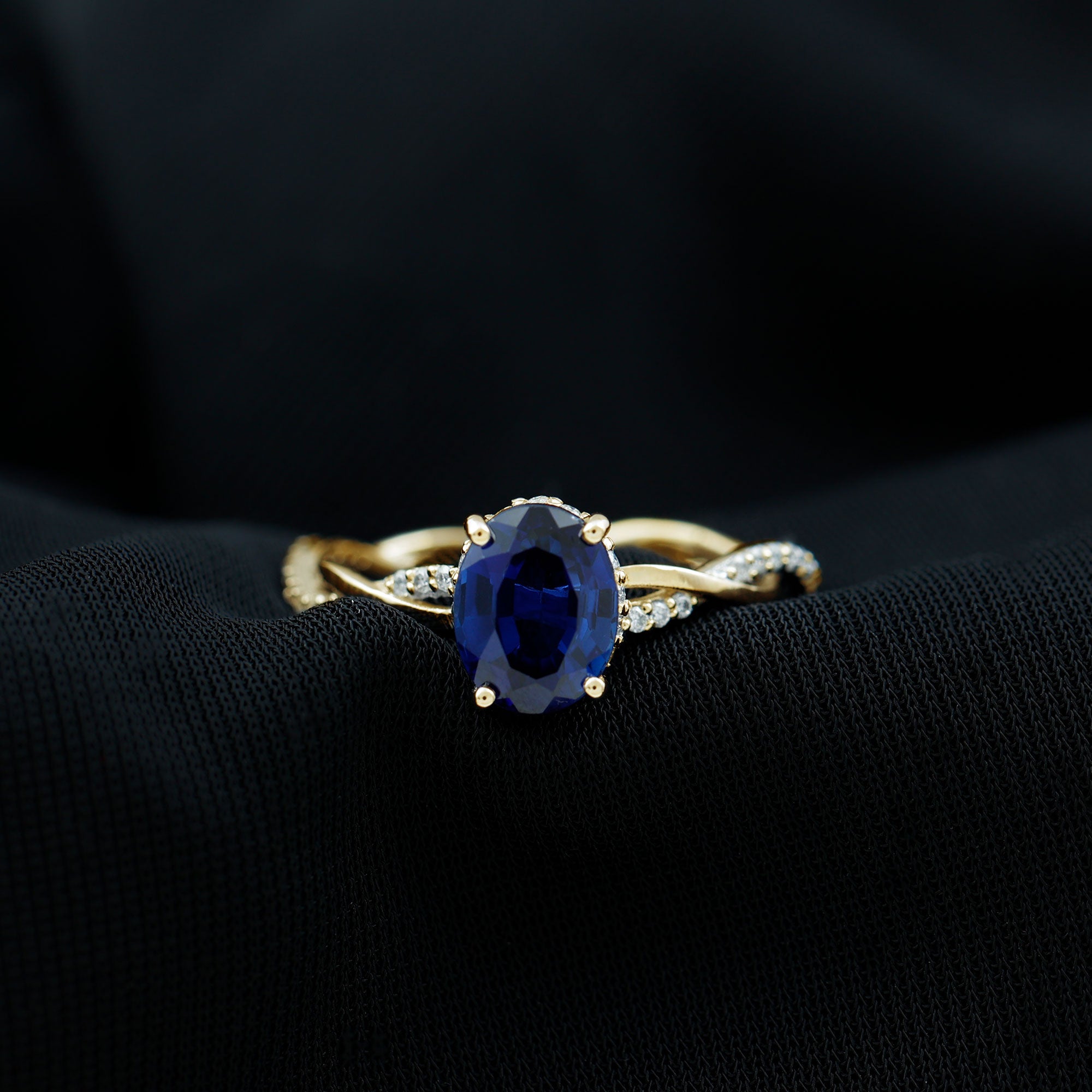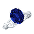 Oval Lab Grown Blue Sapphire Solitaire Braided Ring with Diamond