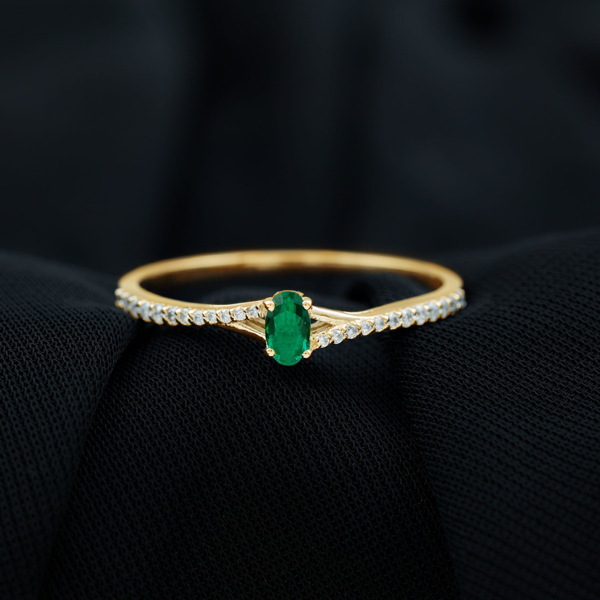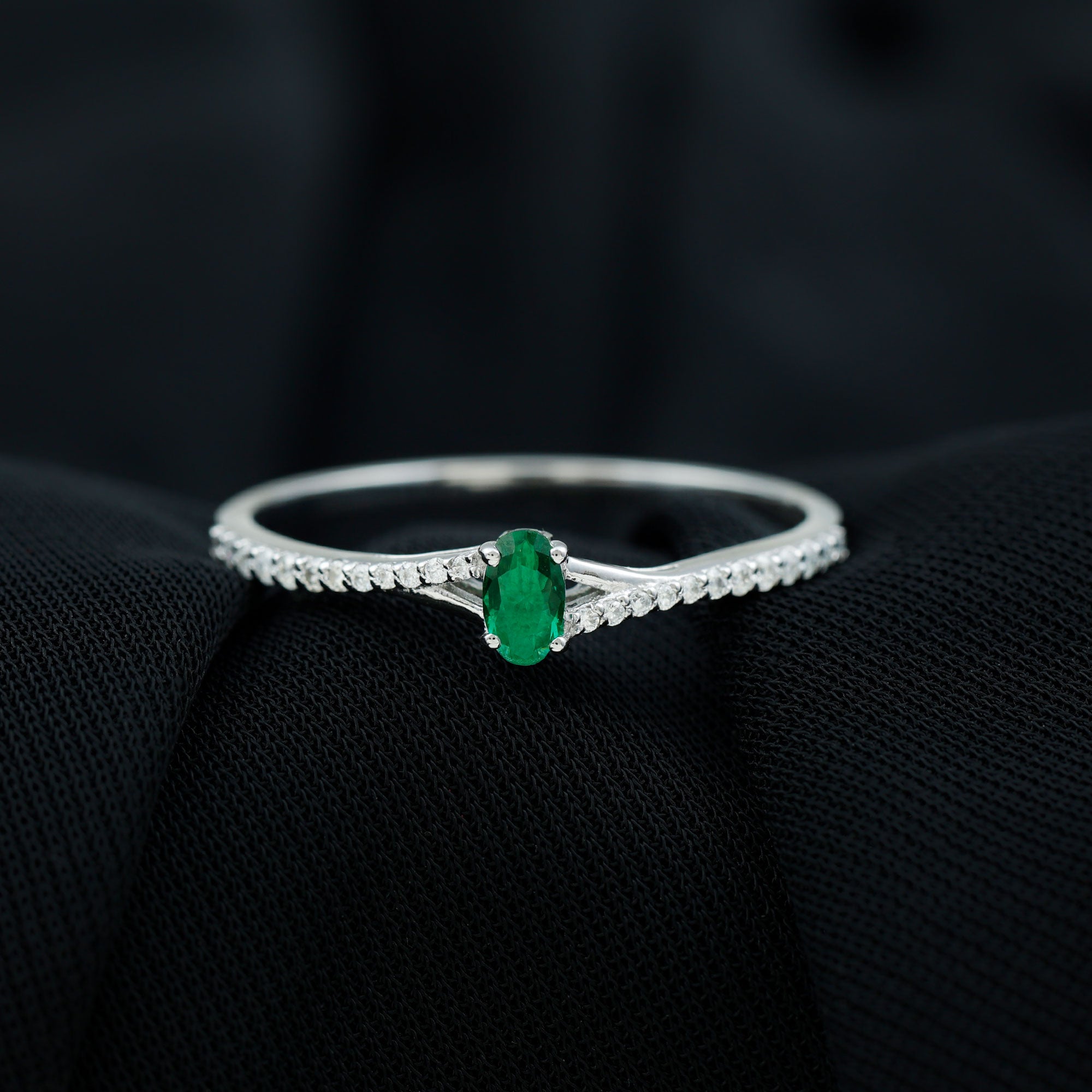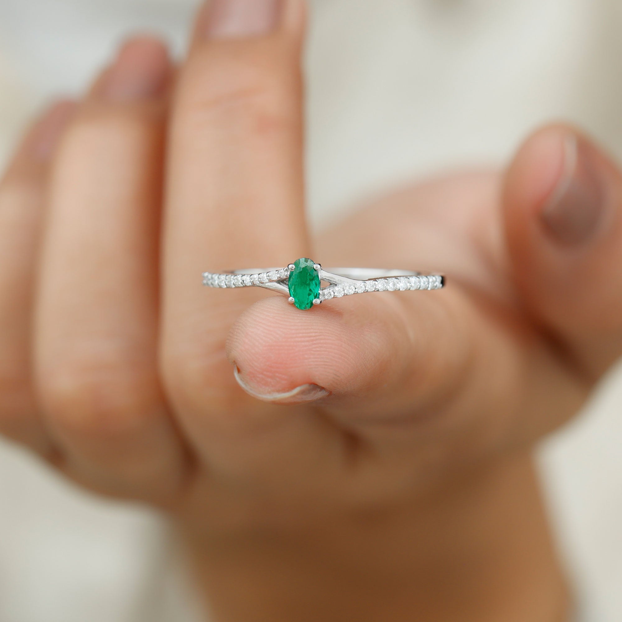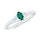 Oval Lab Grown Emerald Promise Ring with Diamond Split Shank