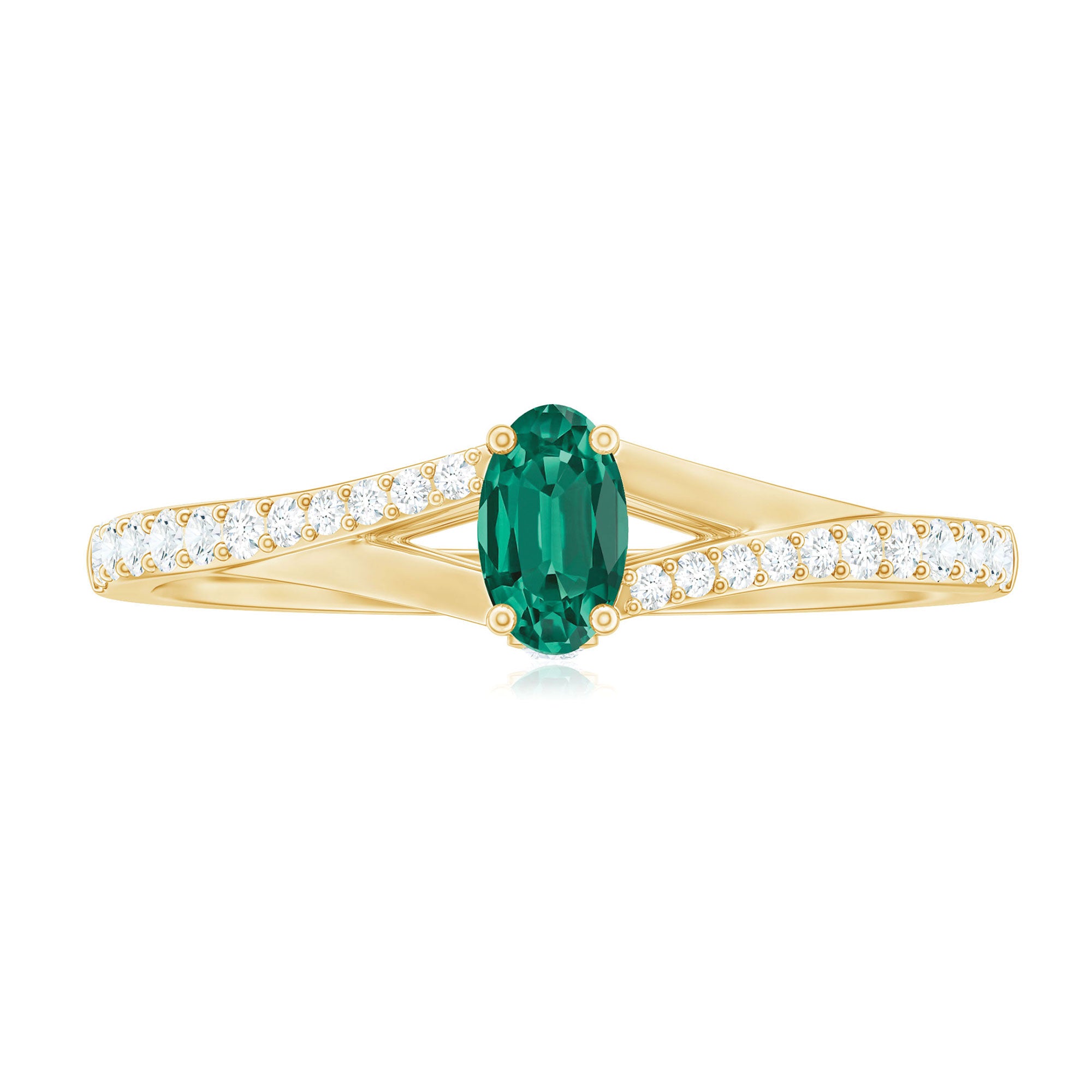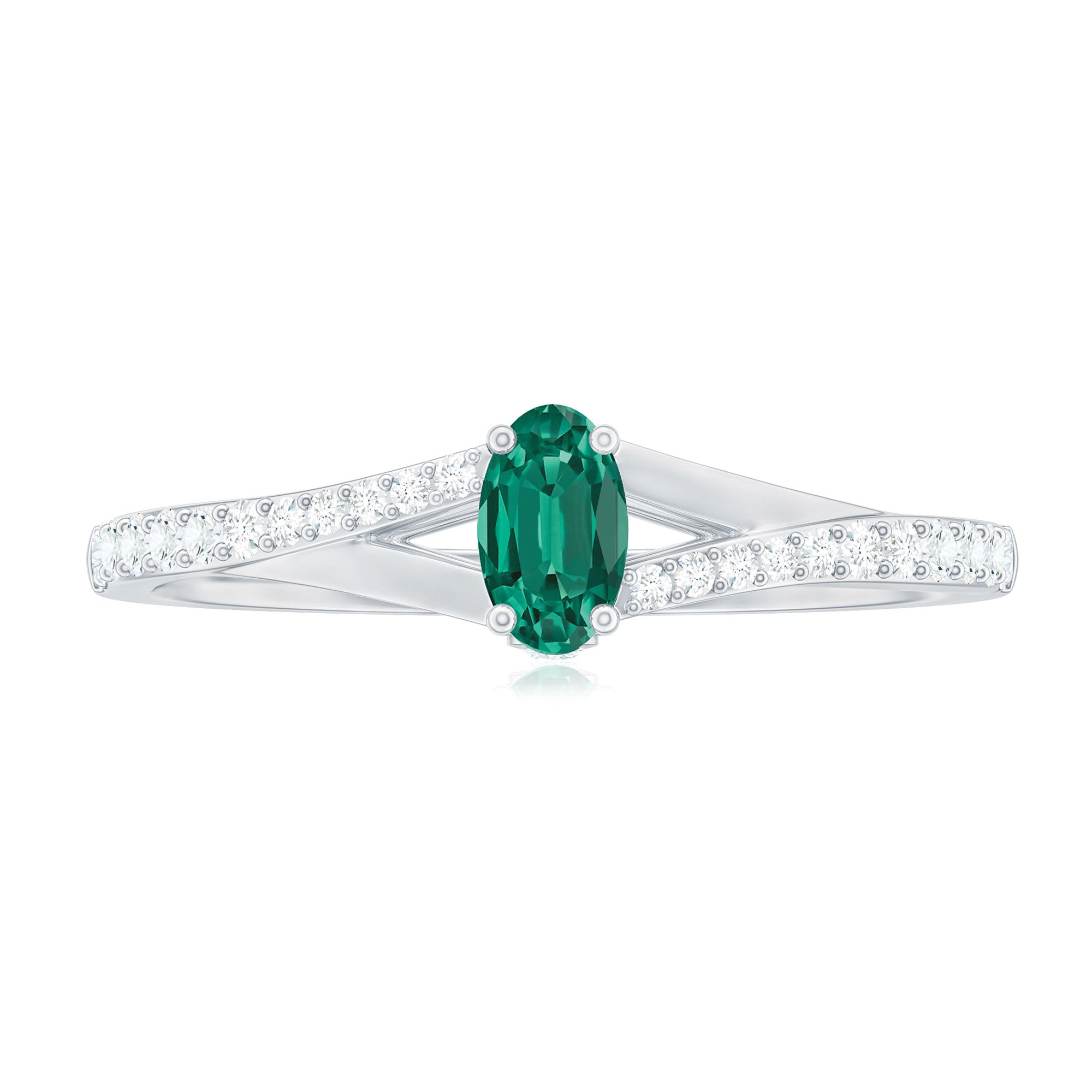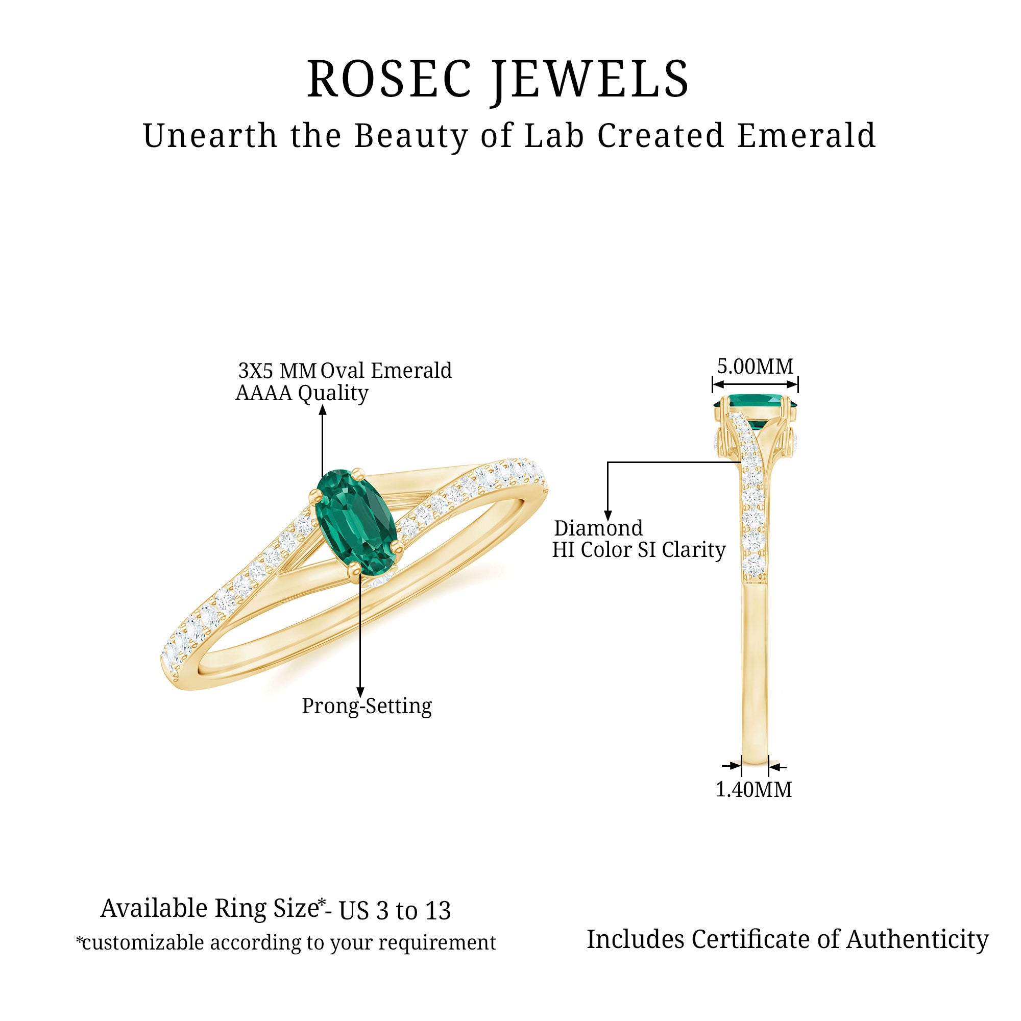 Oval Lab Grown Emerald Promise Ring with Diamond Split Shank