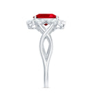 Oval Lab Grown Ruby Floral Ring with Diamond Halo