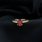 Oval Lab Grown Ruby Solitaire Ring with Moissanite Side Stones