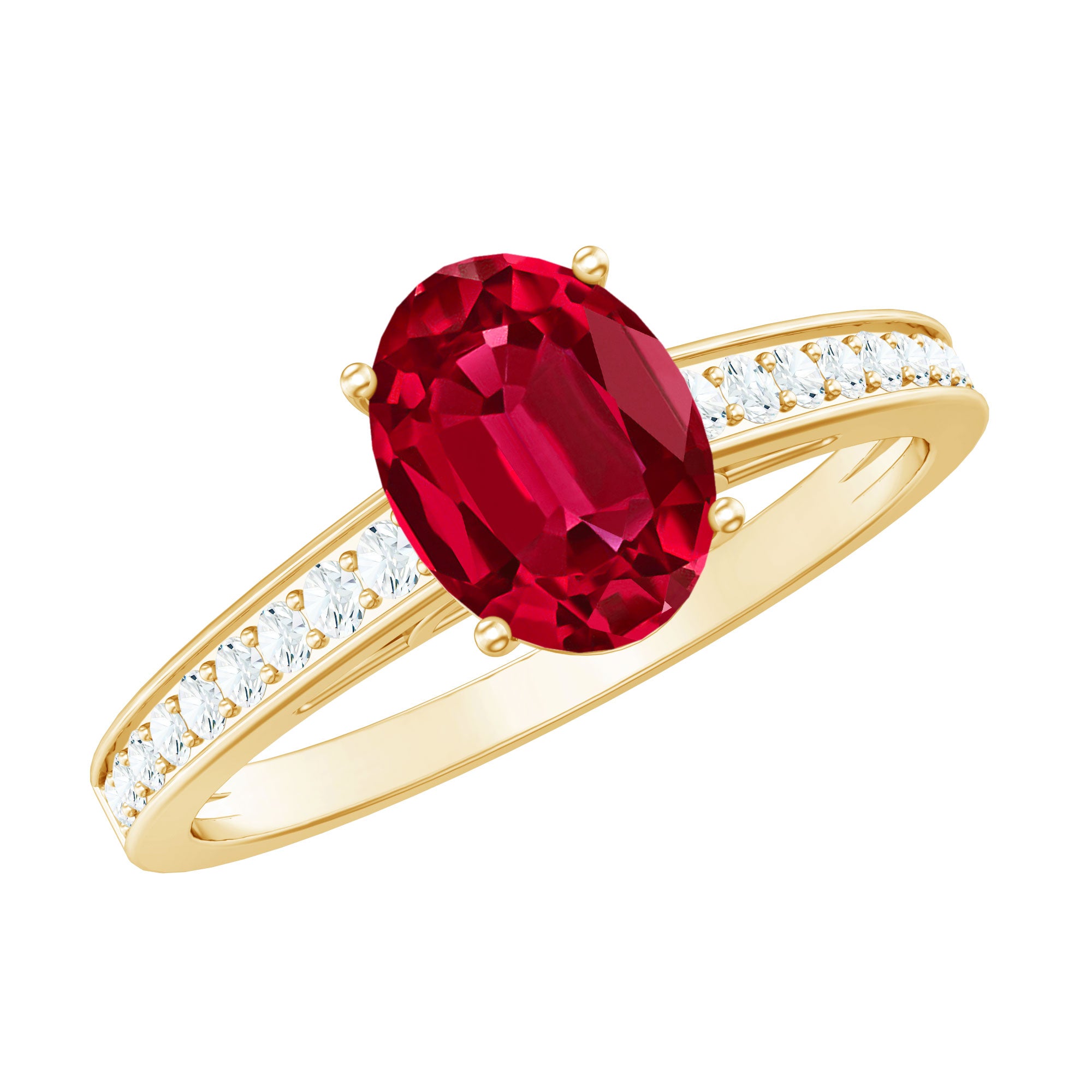 Oval Lab Grown Ruby Solitaire Ring with Moissanite Side Stones