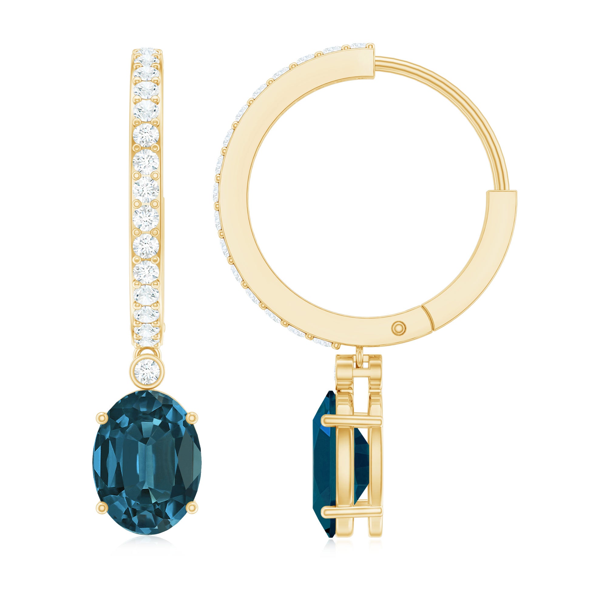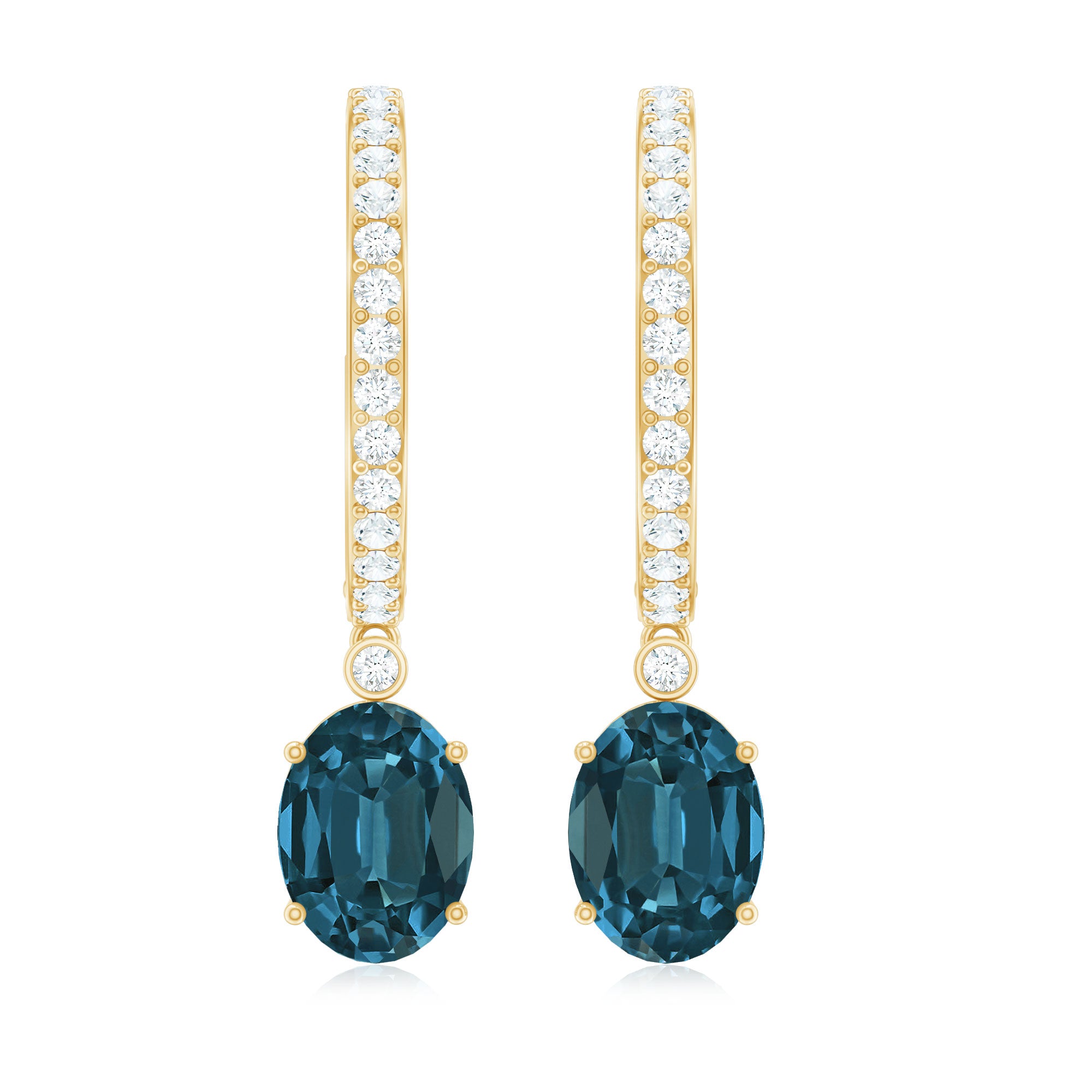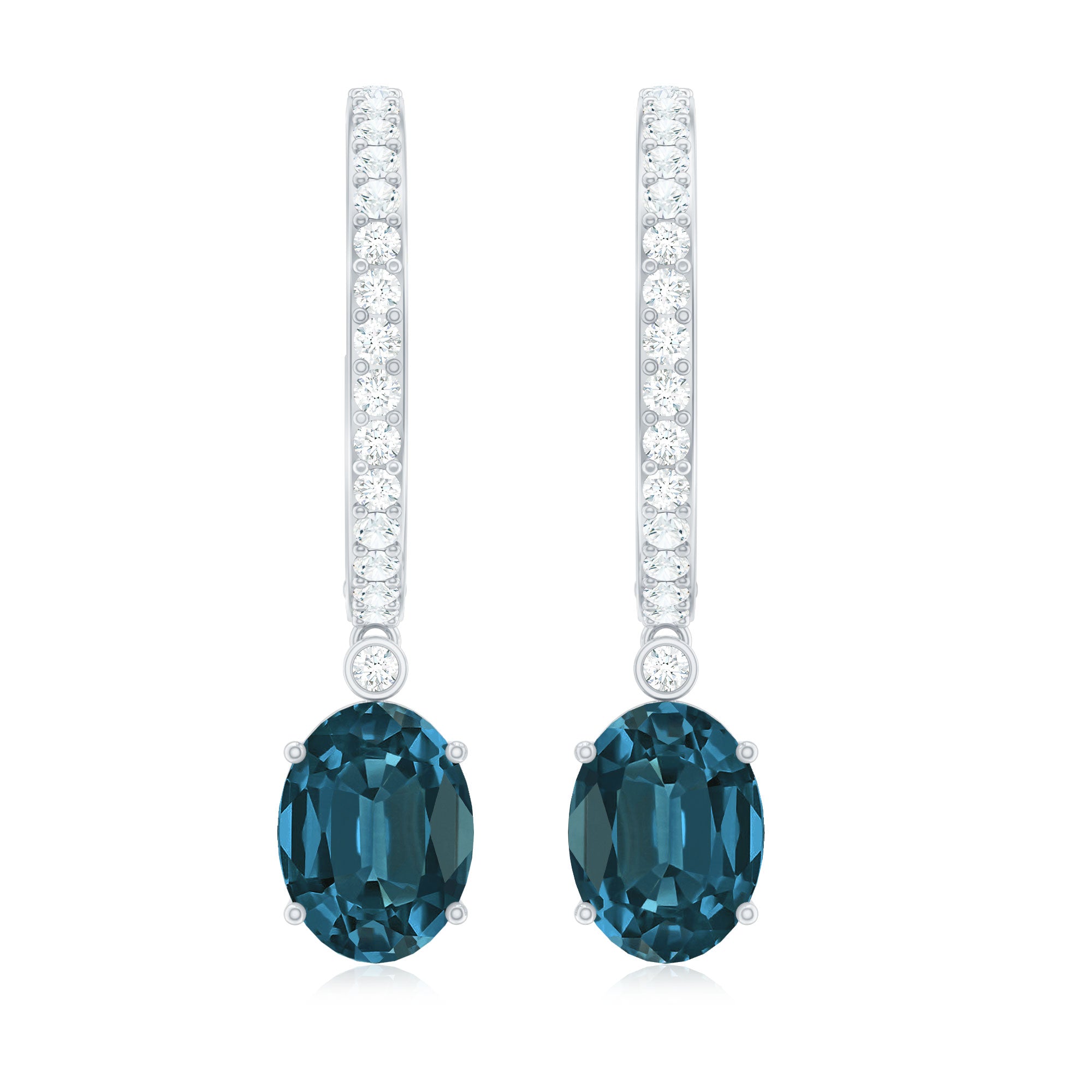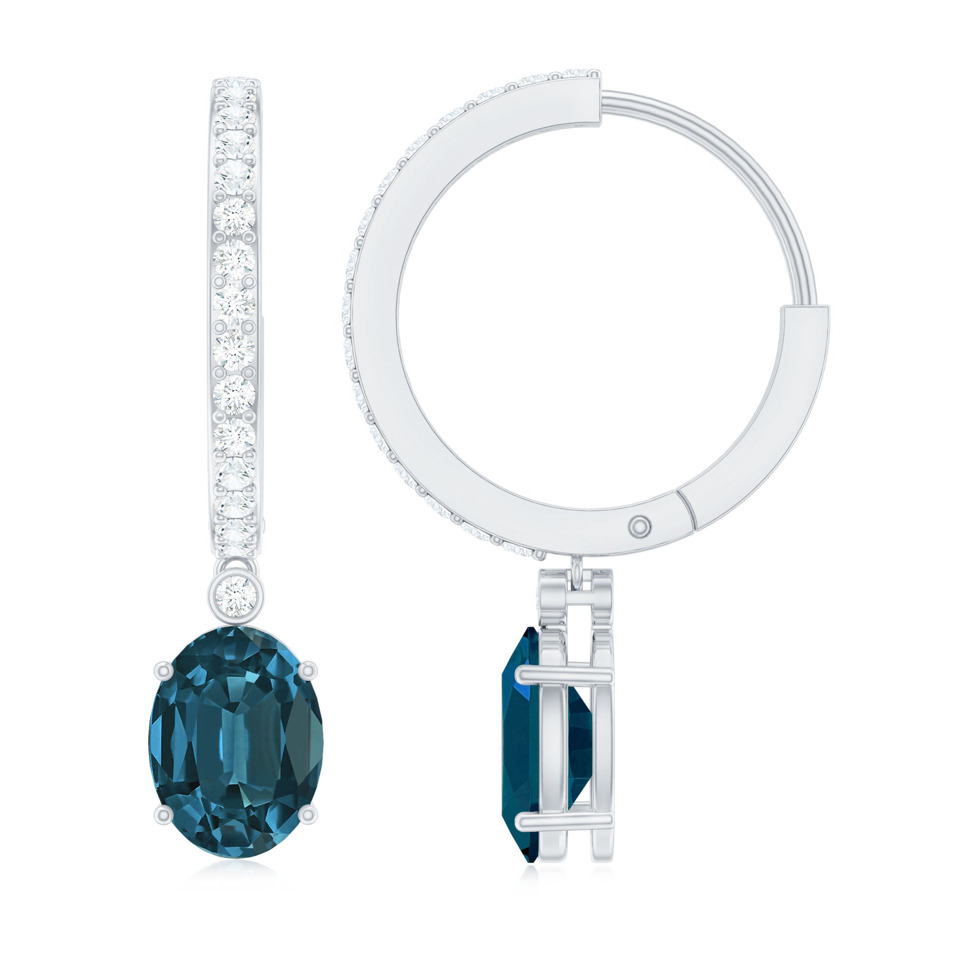 Oval London Blue Topaz and Diamond Hoop Drop Earrings