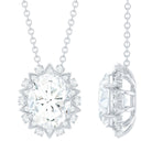 Enhance your bridal look with this stunning Moissanite Pendant Necklace. Crafted from 14K white gold plated silver, this exquisite piece showcases a 7X9 MM oval Moissanite encircled by a zigzag design and a halo adorned with round Moissanites. Featuring D Color VS1 Clarity stones and a brilliantly polished finish, this Oval Cut Pendant gracefully hangs from a cable chain secured with a lobster clasp, which allows you to adjust the length according to your preference. Wear this Wedding Necklace for Bride with assurance and let it dazzle, captivating everyone around you. Elevate any outfit with this unique accessory. It also makes a perfect sparkling gift for mother of bride. Grab all eyes with this breathtaking Oval Moissanite Necklace that elevates style in just a blink. Redefine classic elegance by highlighting timeless sophistication with this pendant, a remarkable jewelry piece that radiates sparkle and flair.