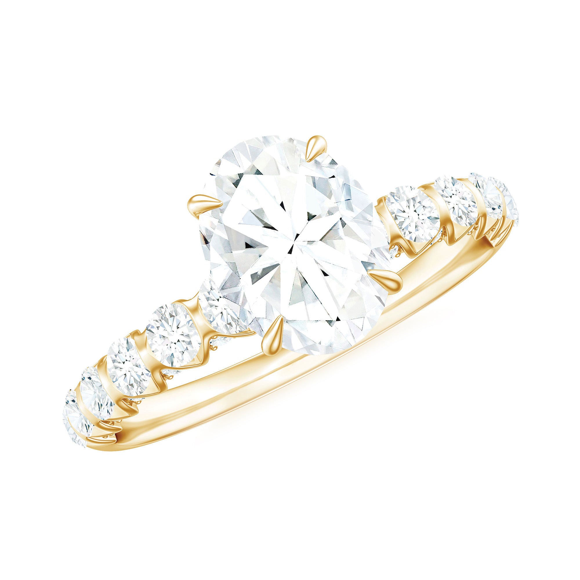 Oval Moissanite Solitaire Engagement Ring with Side Stones