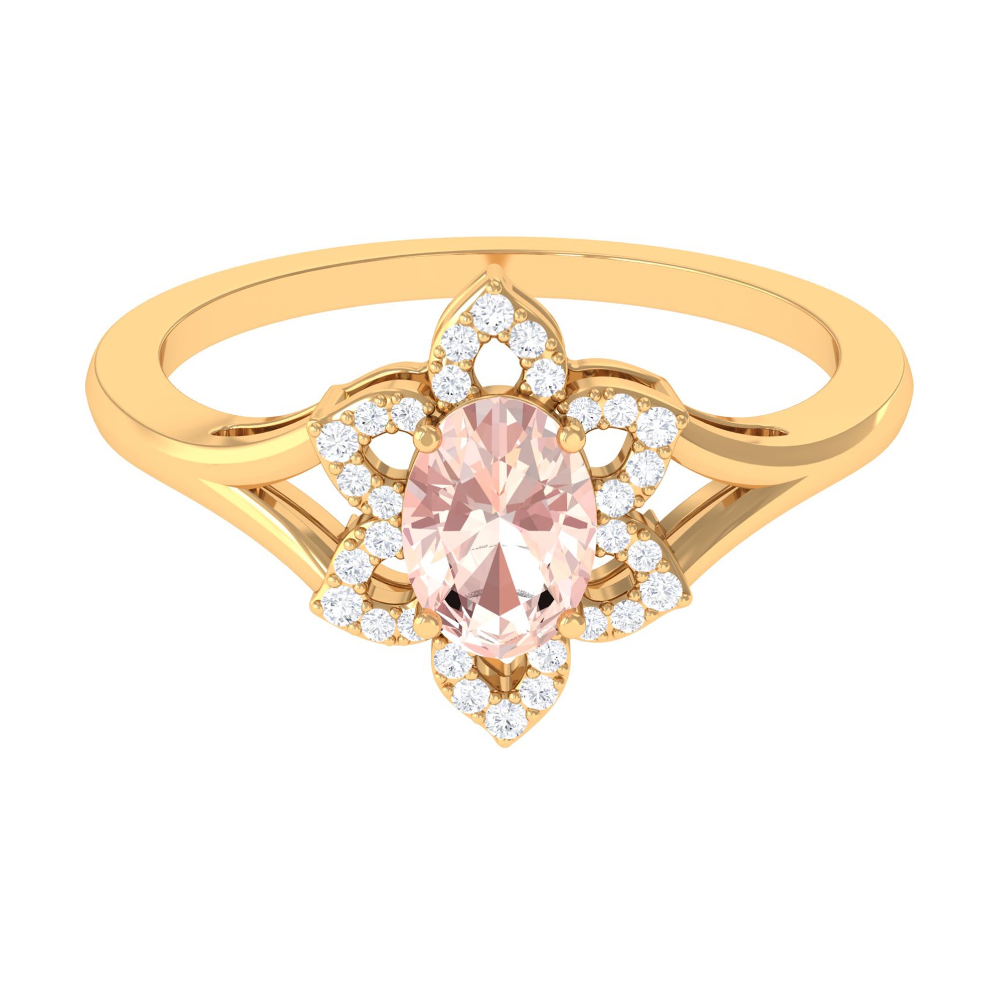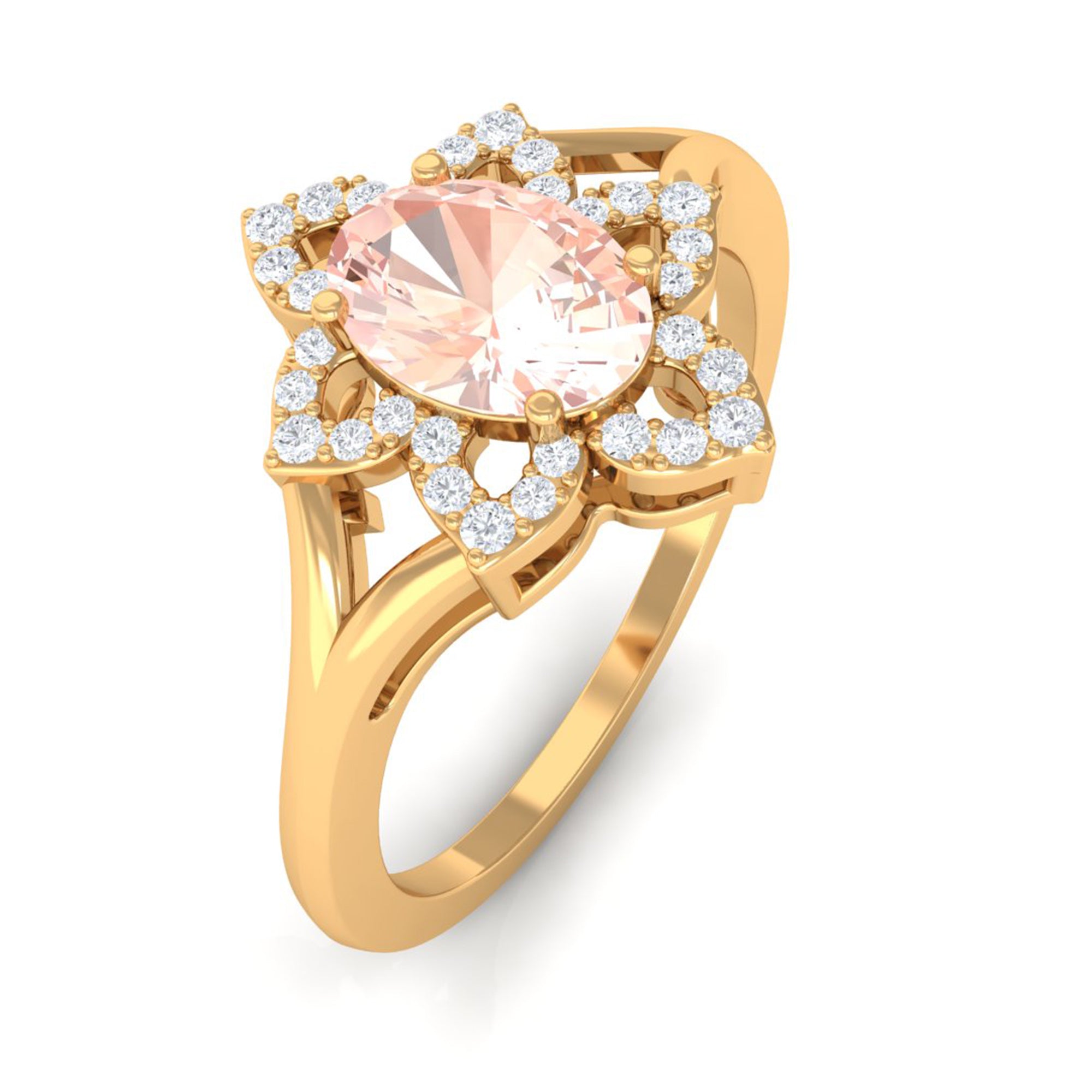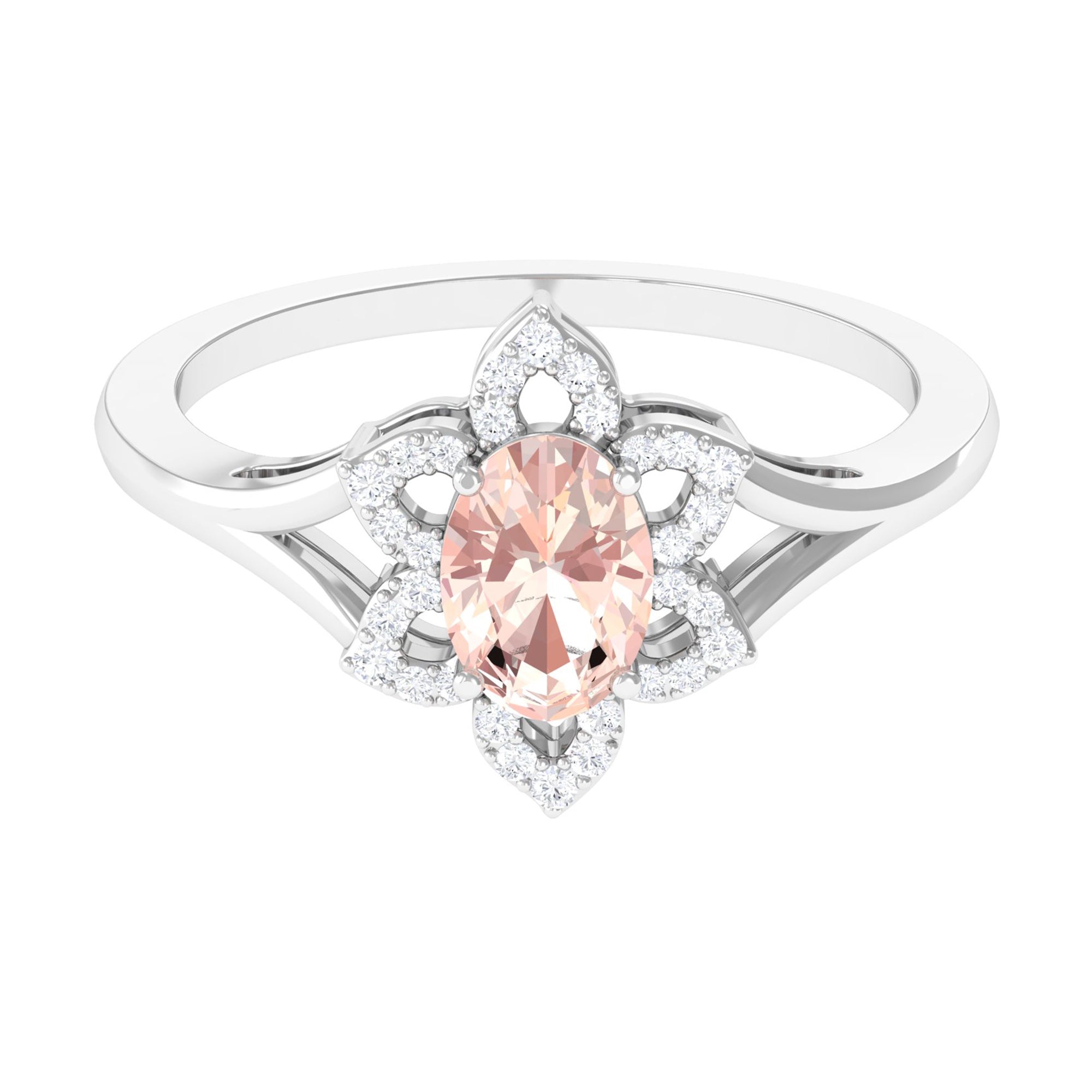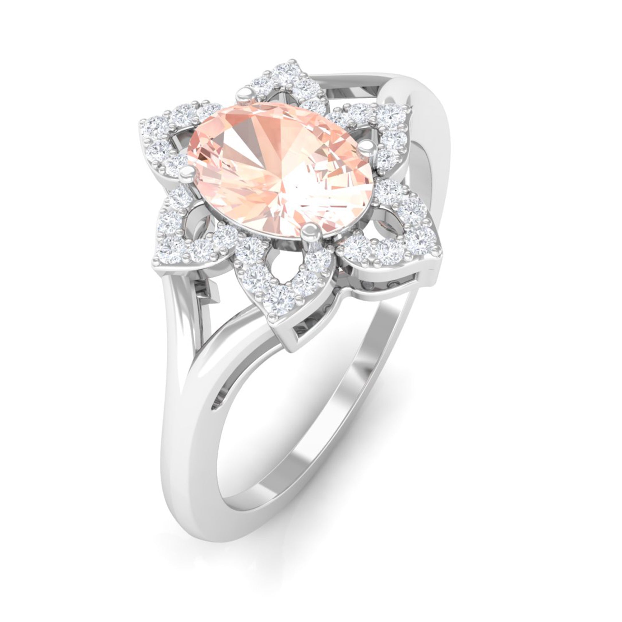 Oval Morganite and Diamond Flower Engagement Ring in Split Shank