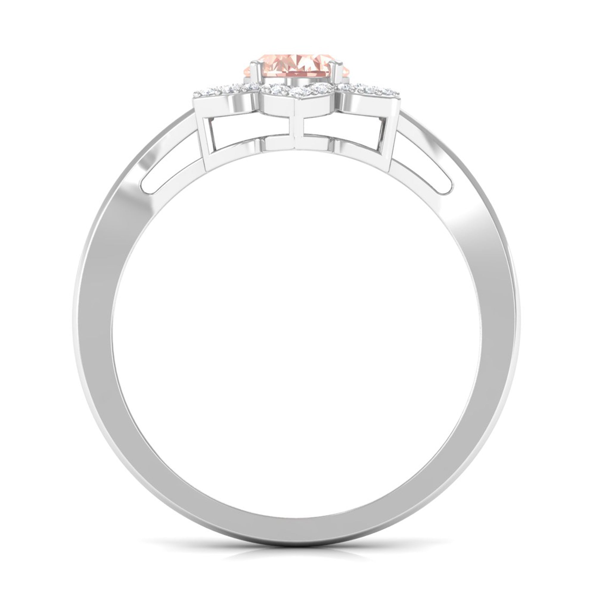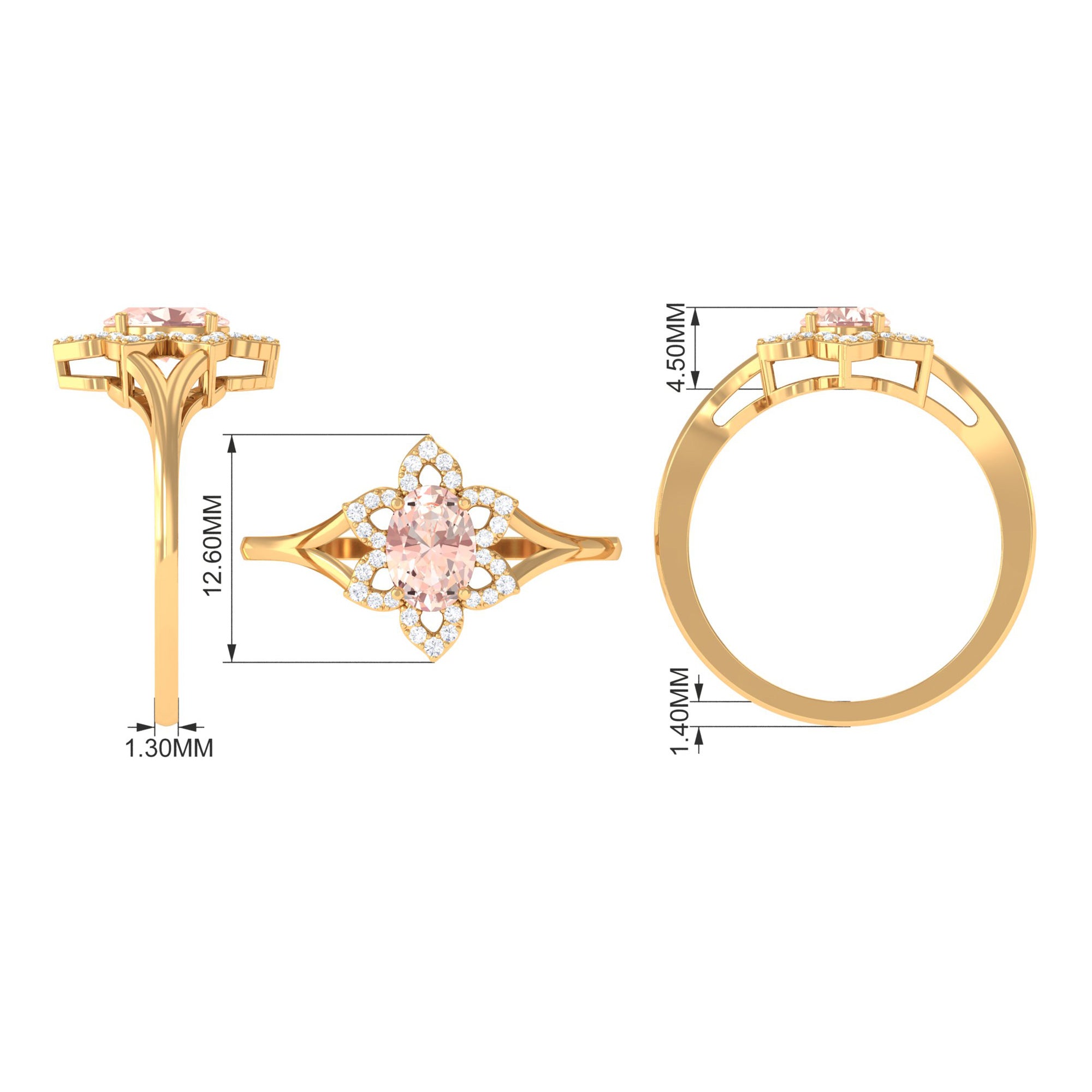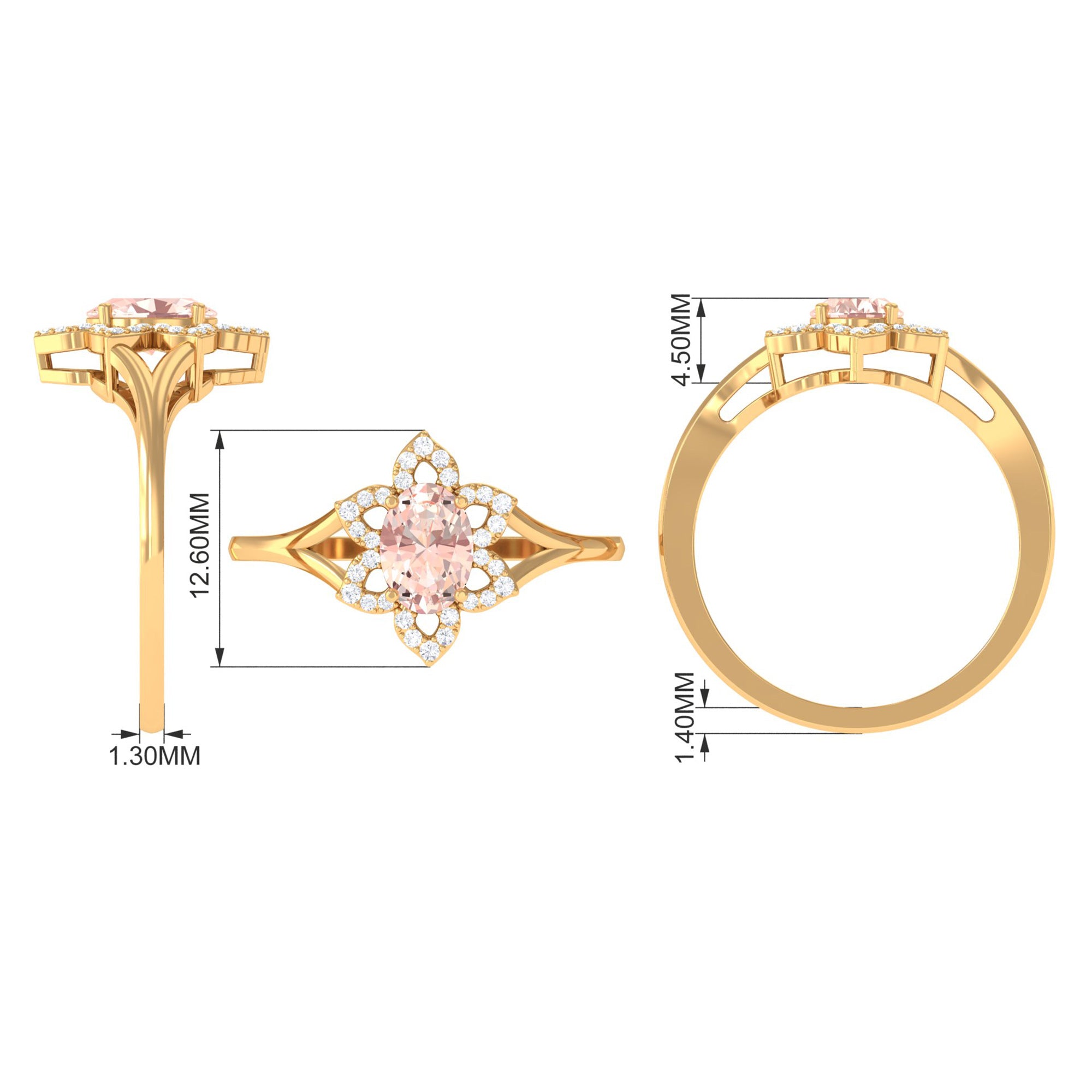 Oval Morganite and Diamond Flower Engagement Ring in Split Shank