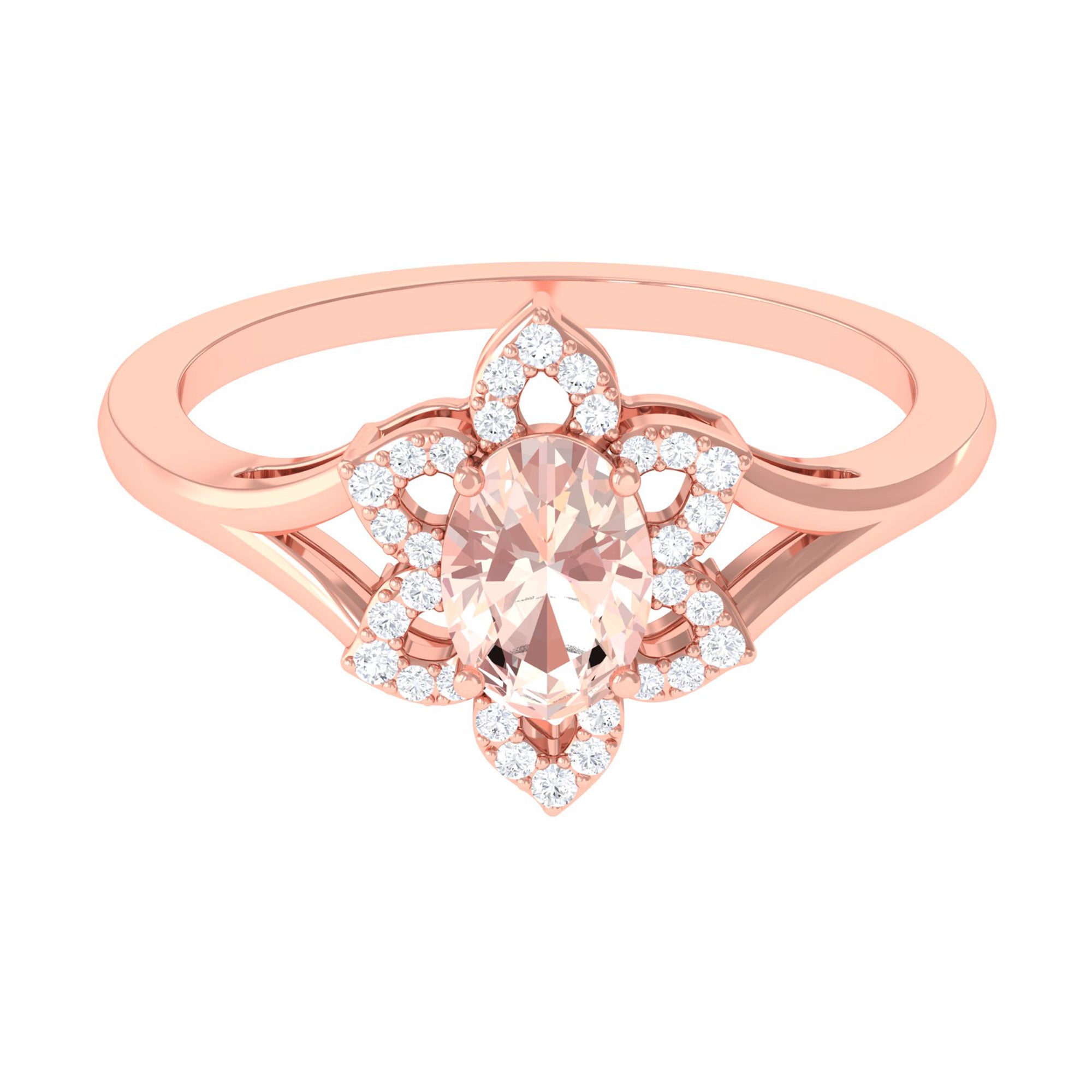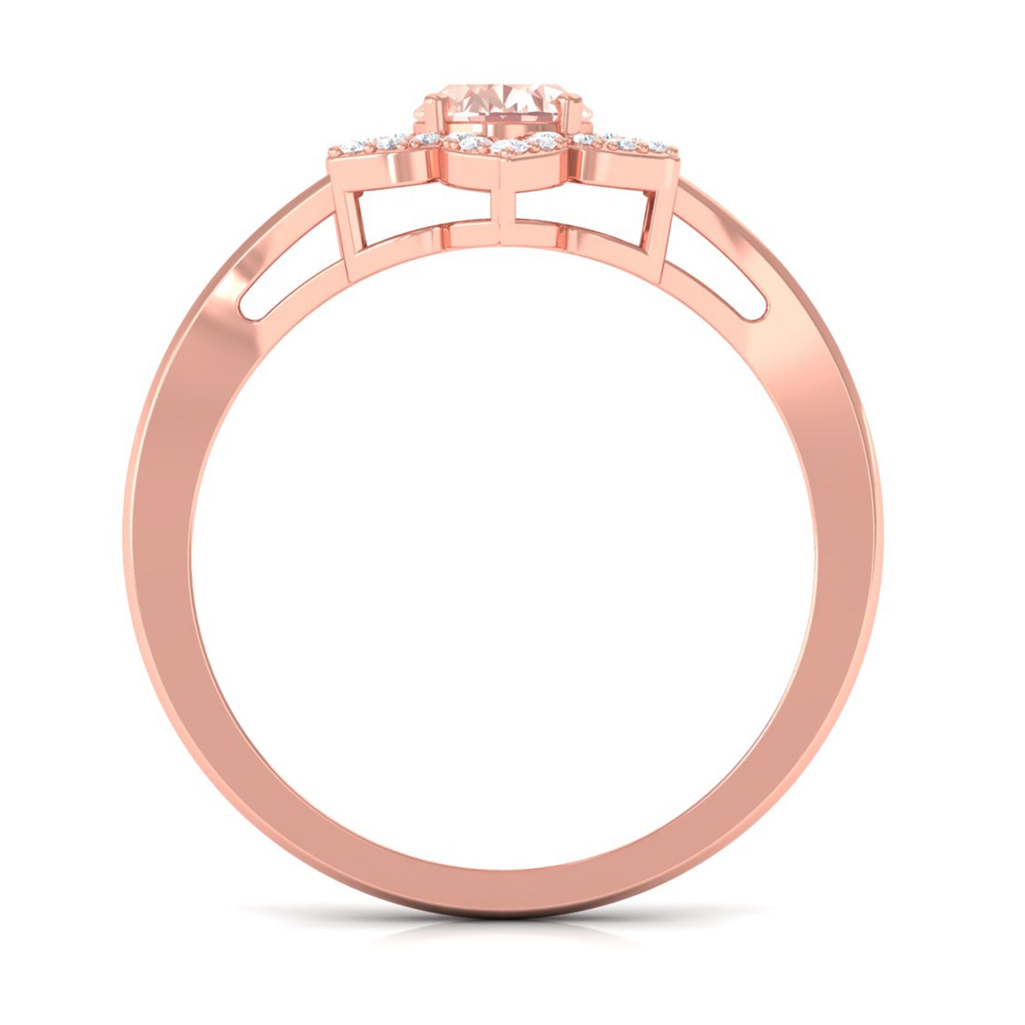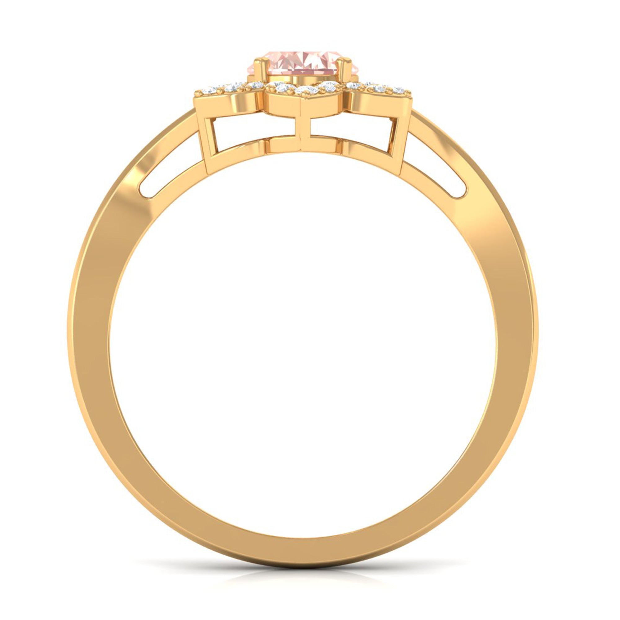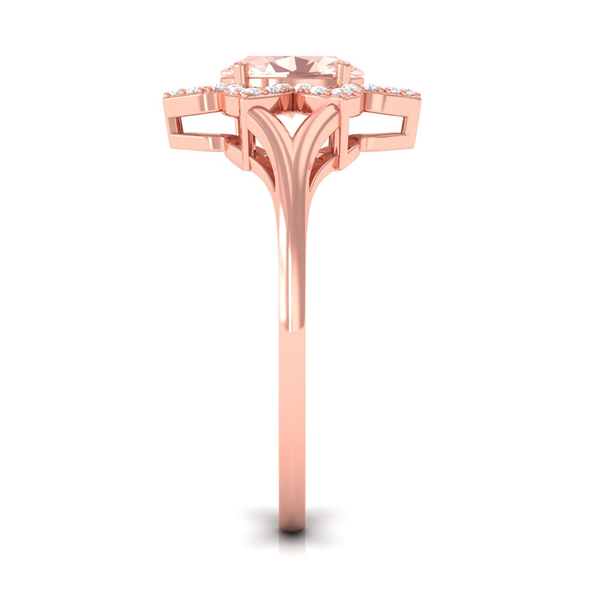 Oval Morganite and Diamond Flower Engagement Ring in Split Shank