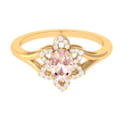 This stunning engagement ring features a captivating oval-cut Morganite, encircled by a dazzling array of round Diamond stones set in a delicate flower pattern. The gold split shank adds even more elegance to this already breathtaking piece. The Morganite ring is crafted from high-quality gold, adding a luxurious touch to the design. This ring is perfect for showing your love and commitment to that special someone.