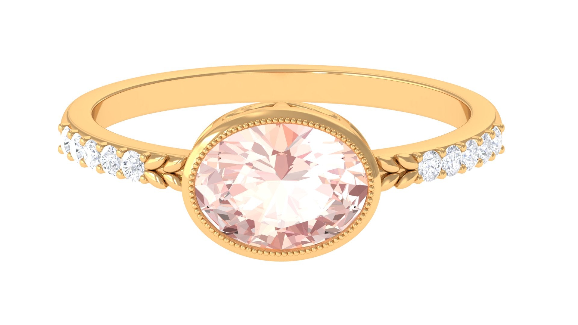 Embrace the ethereal beauty of this Solitaire Engagement Ring, featuring a 6X8 MM Oval Shape Morganite gemstone set horizontally in Beaded Bezel Setting graced by the enchanting brilliance of Diamond gemstones. Its delicate design symbolizes loves enduring grace, making it the perfect choice for a proposal that sparkles with sophistication and sentiment.