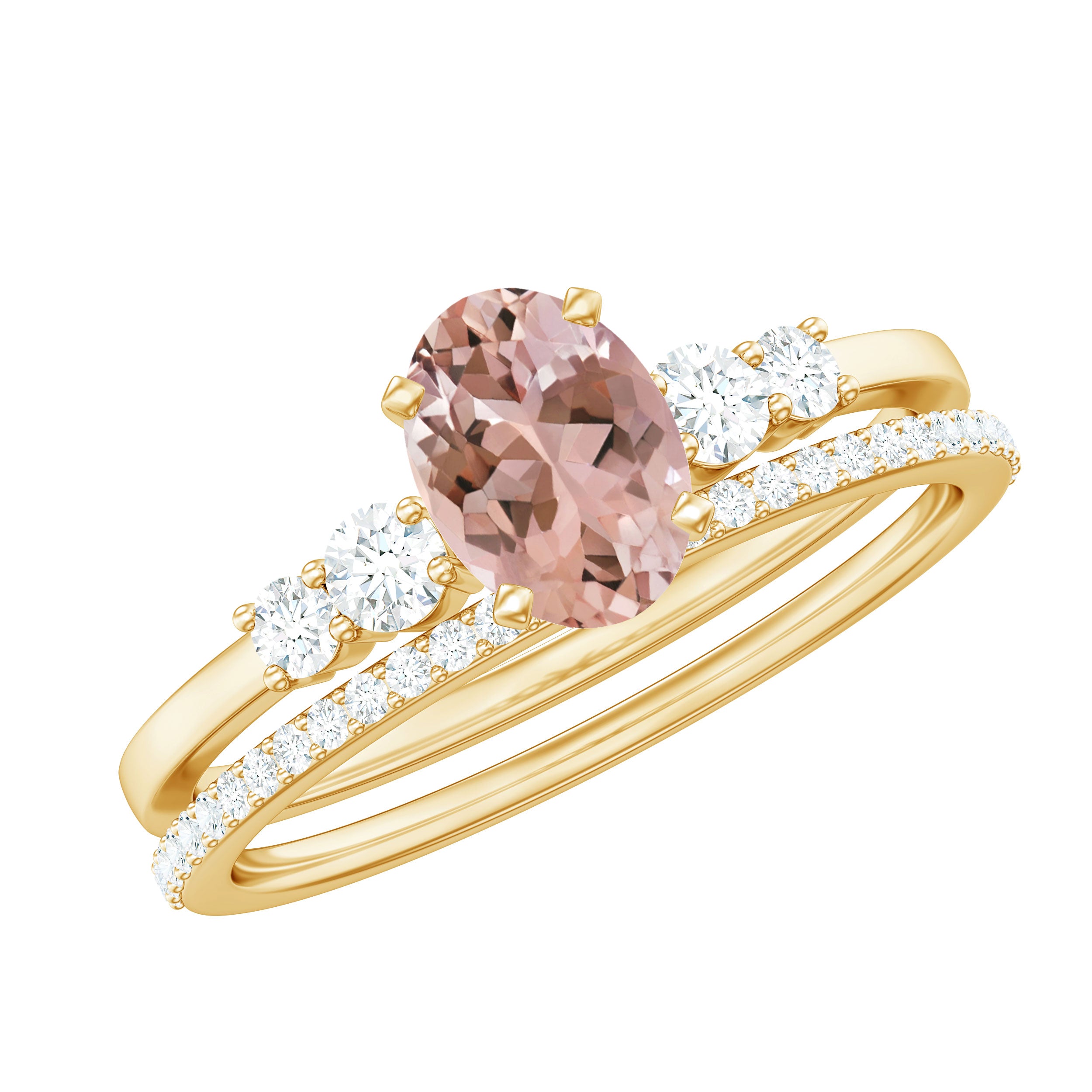 Elevate your style with this Oval Morganite Solitaire Ring Set, adorned with dazzling Diamond, a radiant testament to timeless elegance and love.