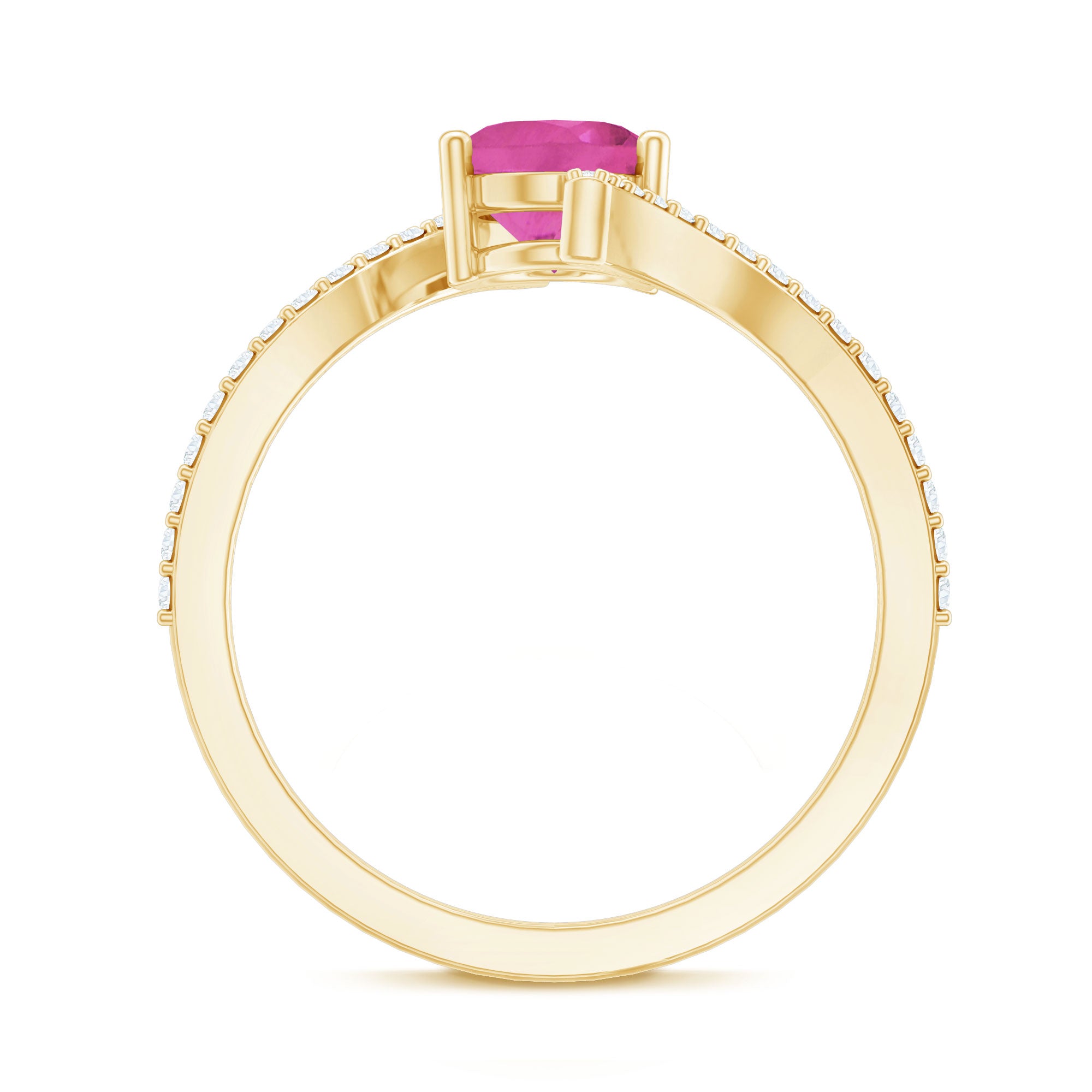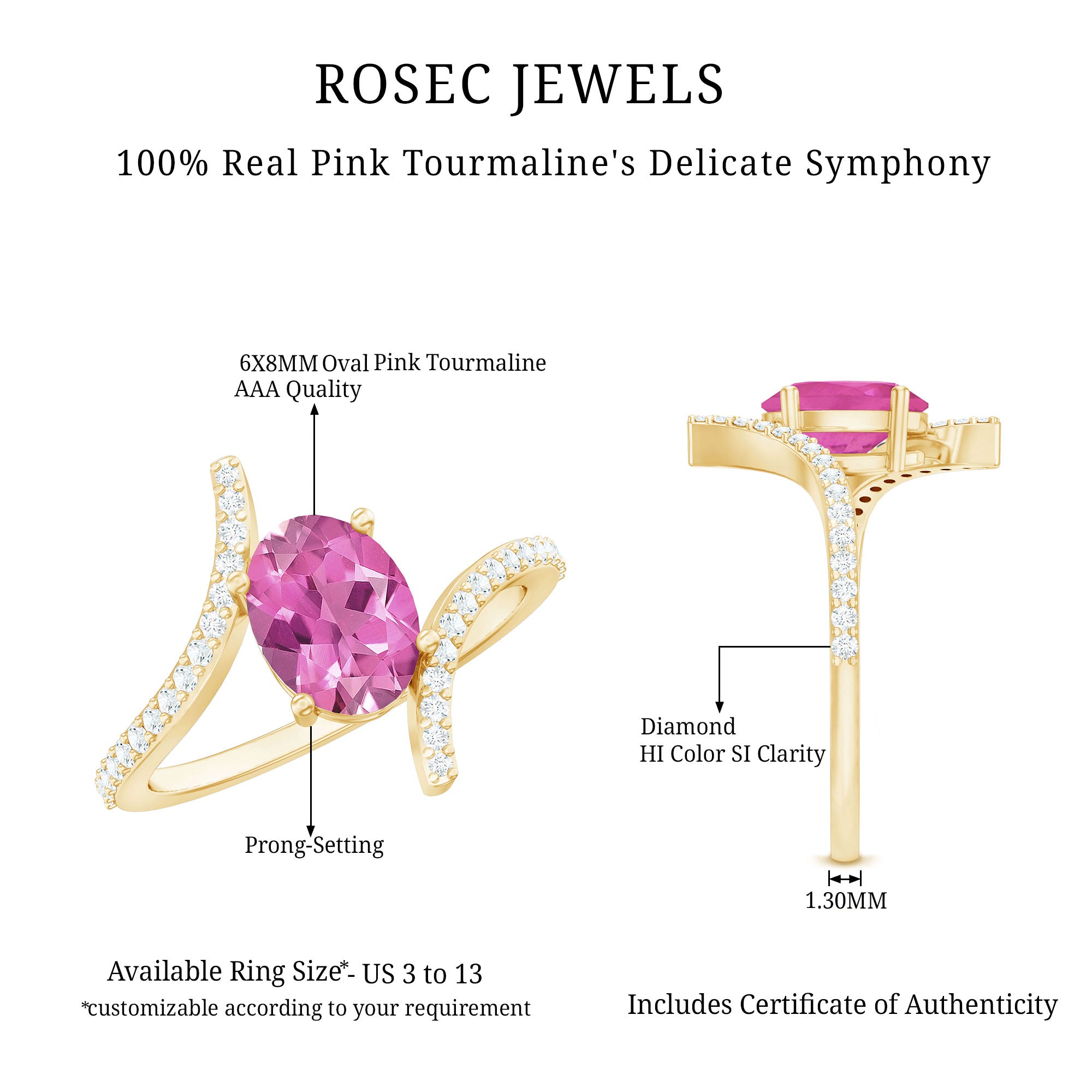 Oval Pink Tourmaline Solitaire Bypass Ring with Diamond