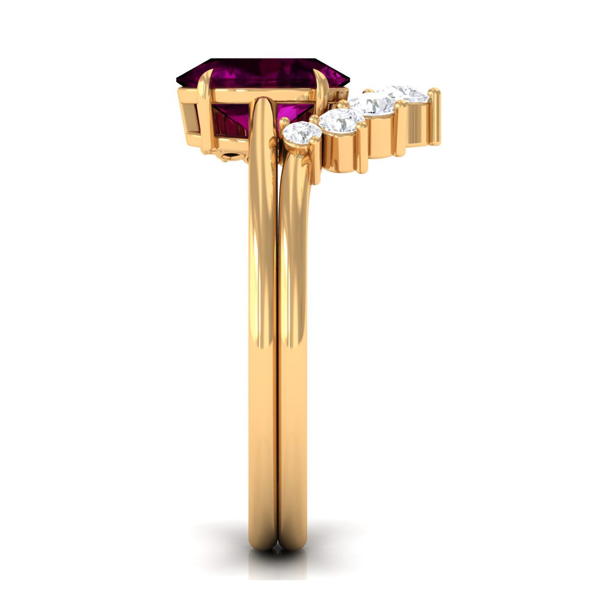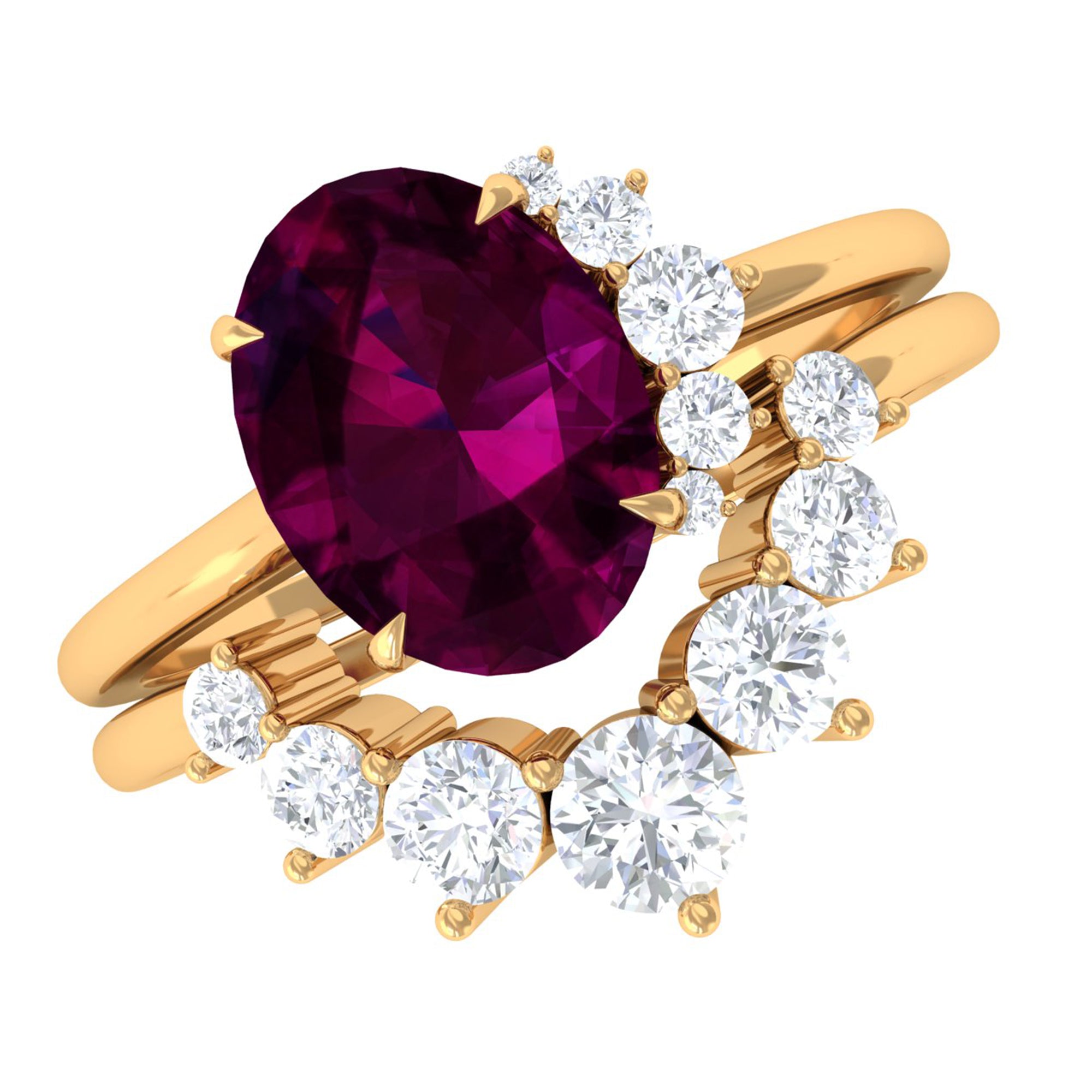 Oval Rhodolite Solitaire Wedding Ring Set with Diamond