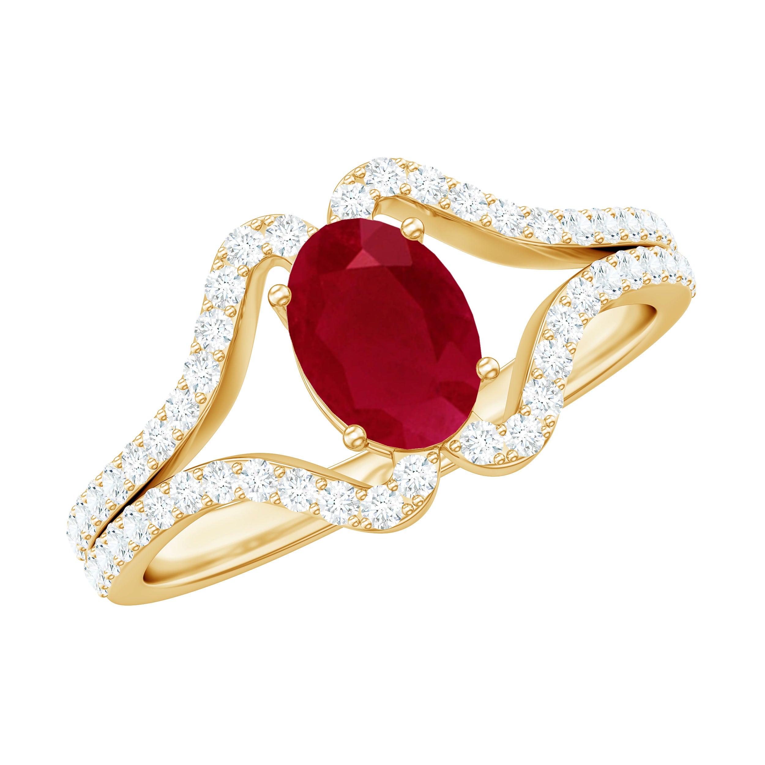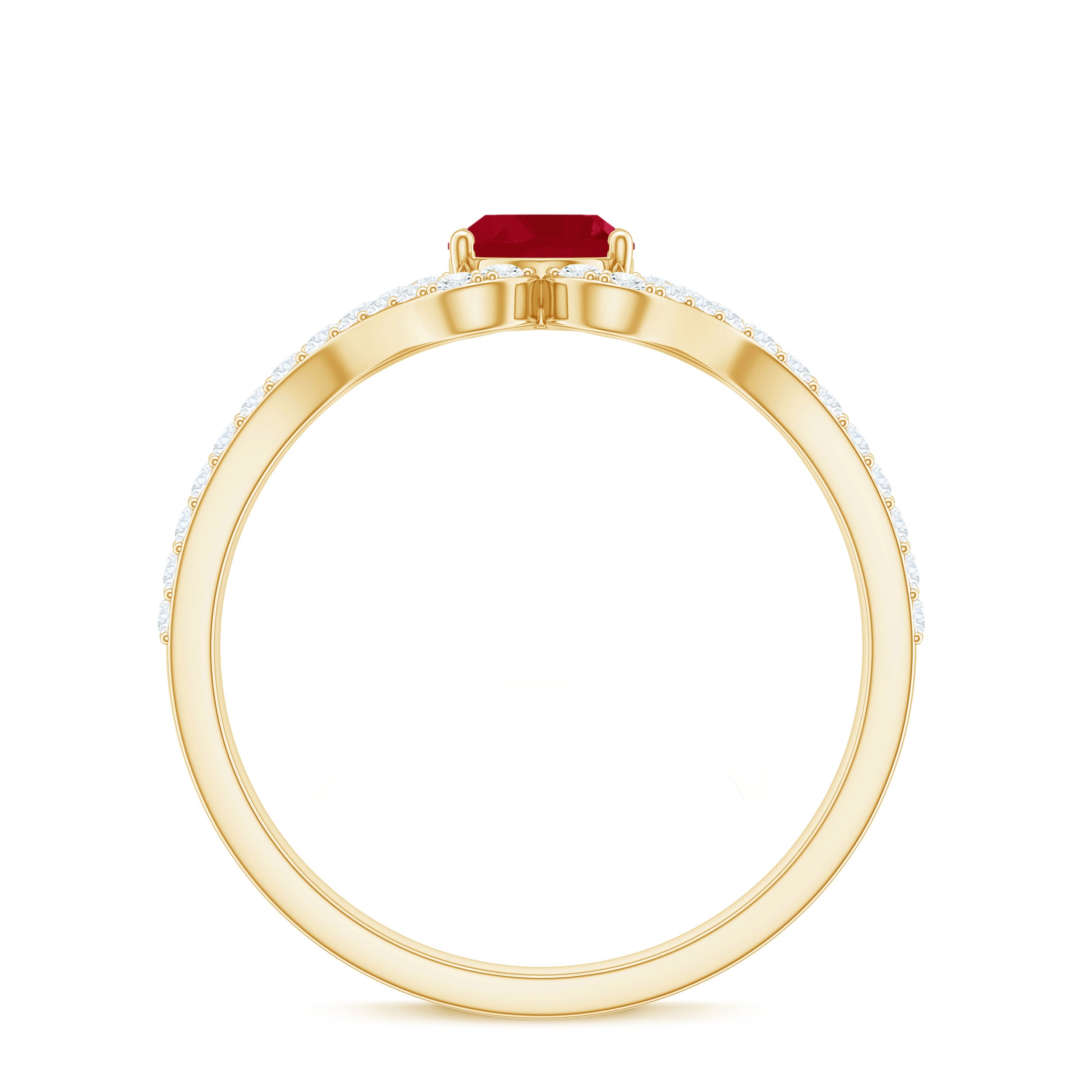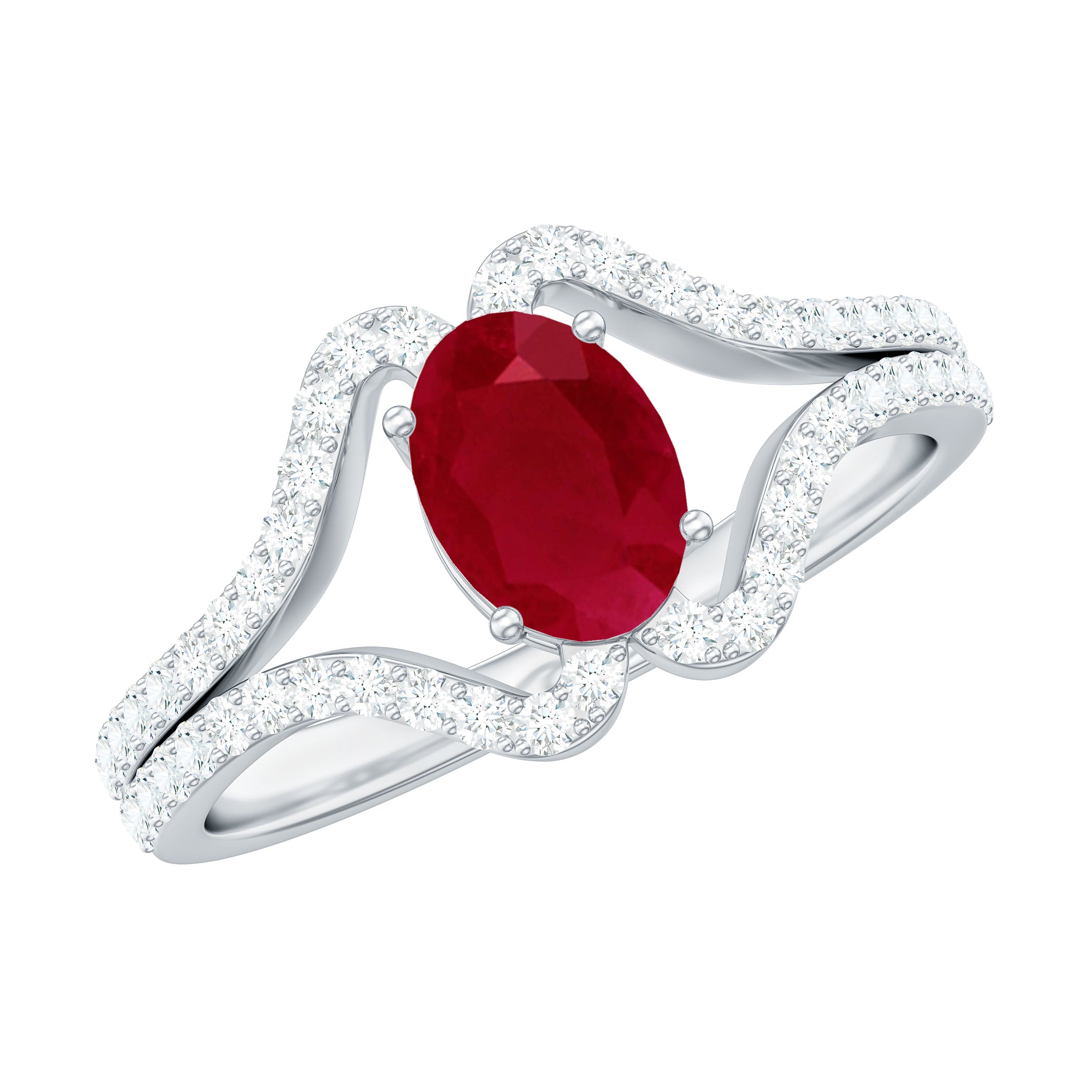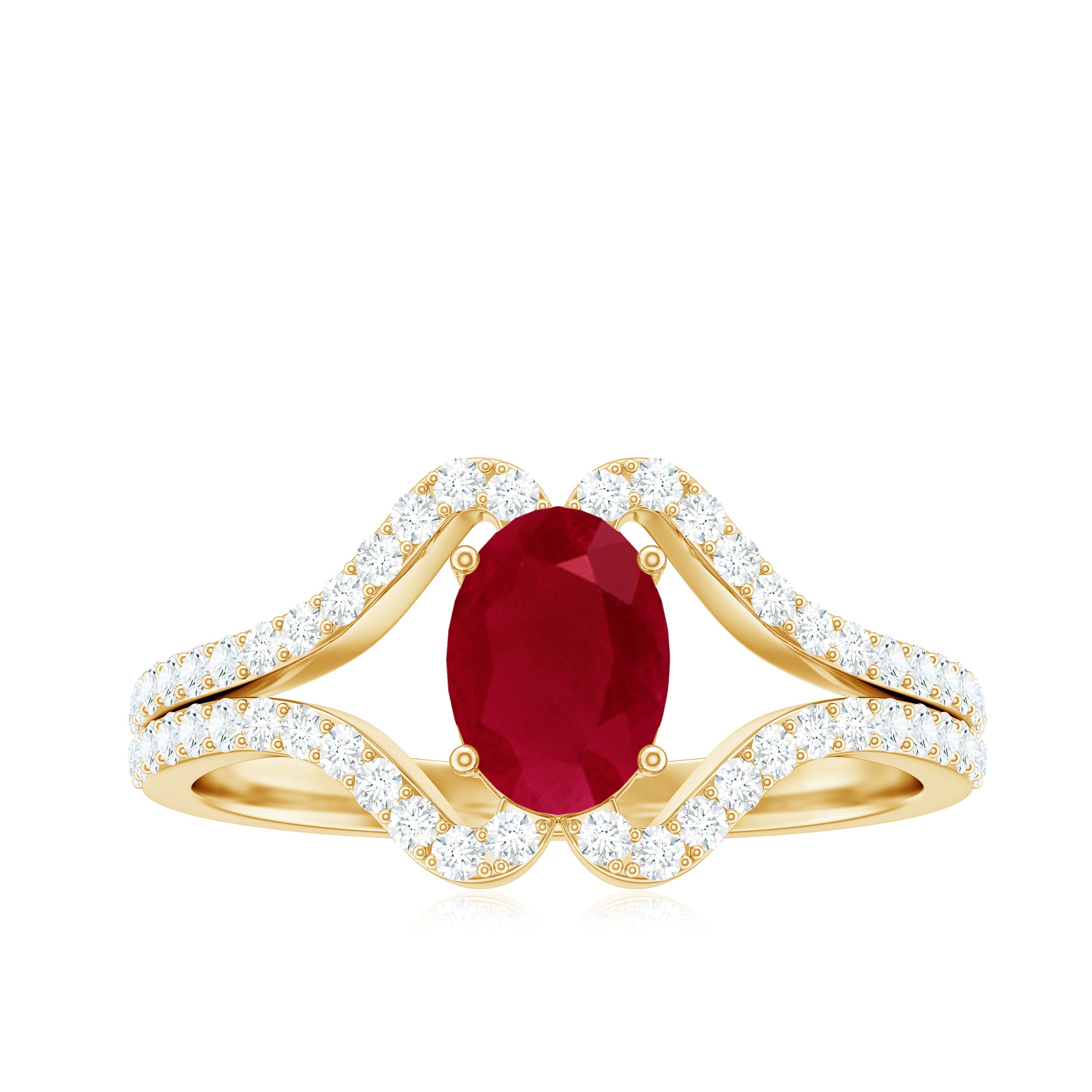 Oval Ruby Minimal Split Shank Ring with Diamond