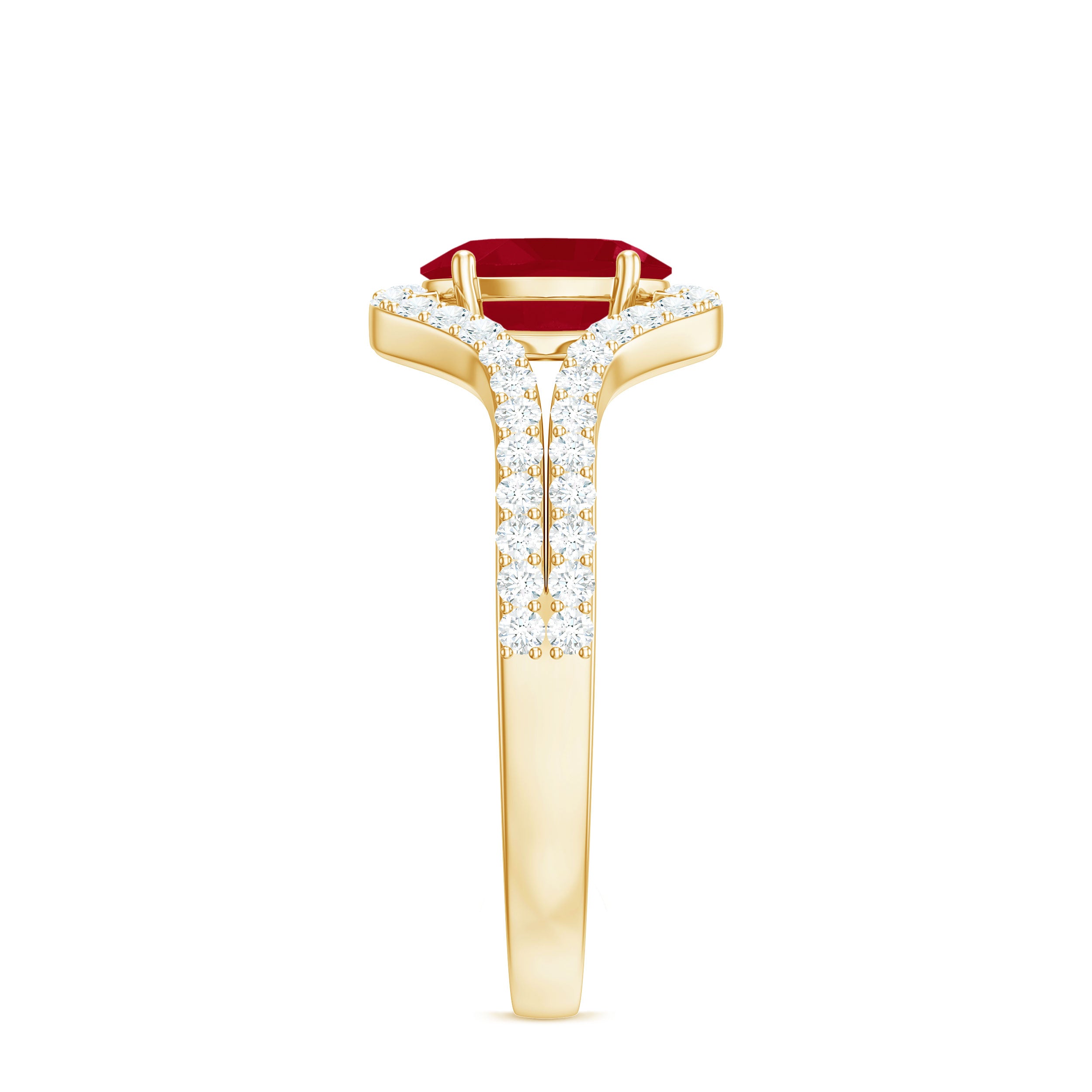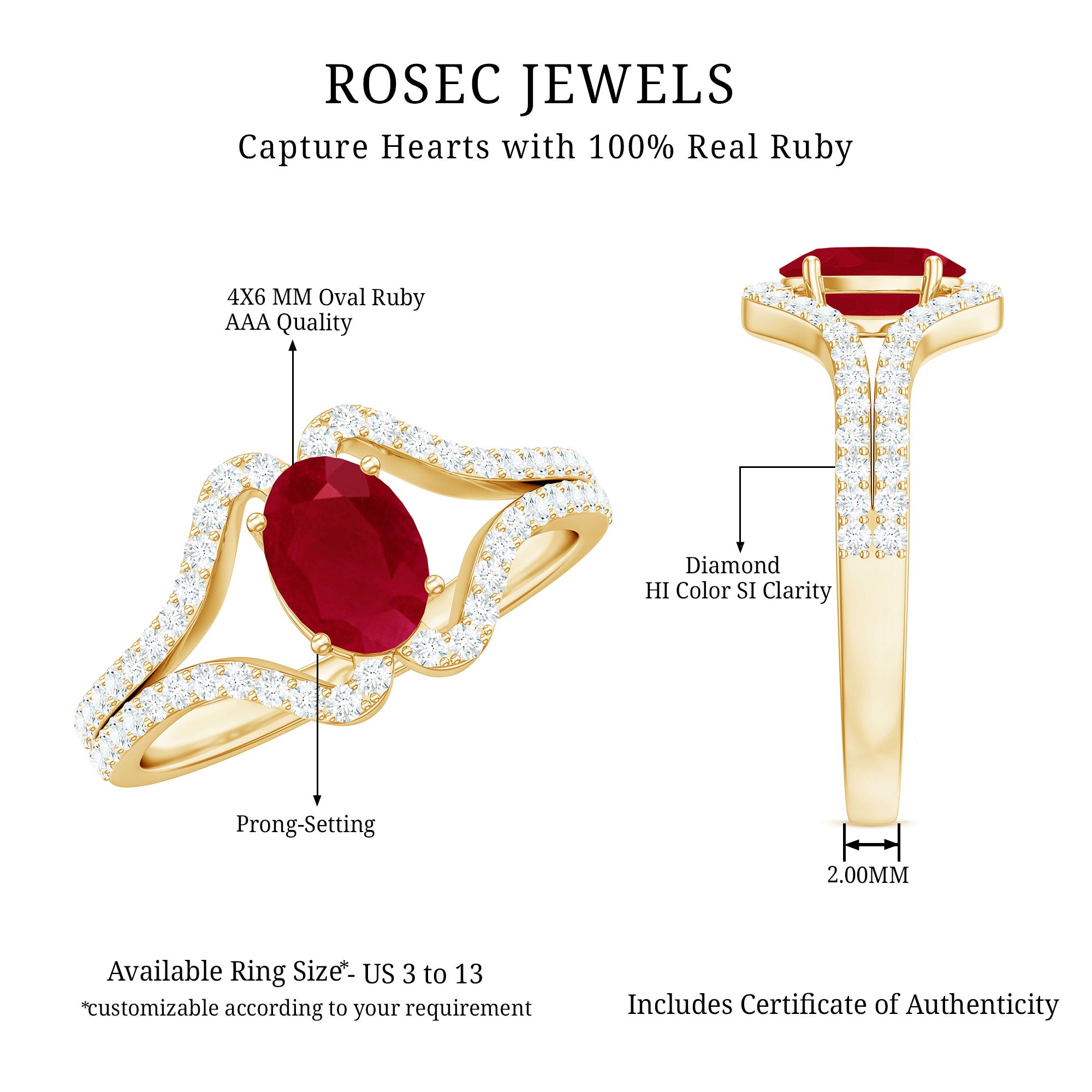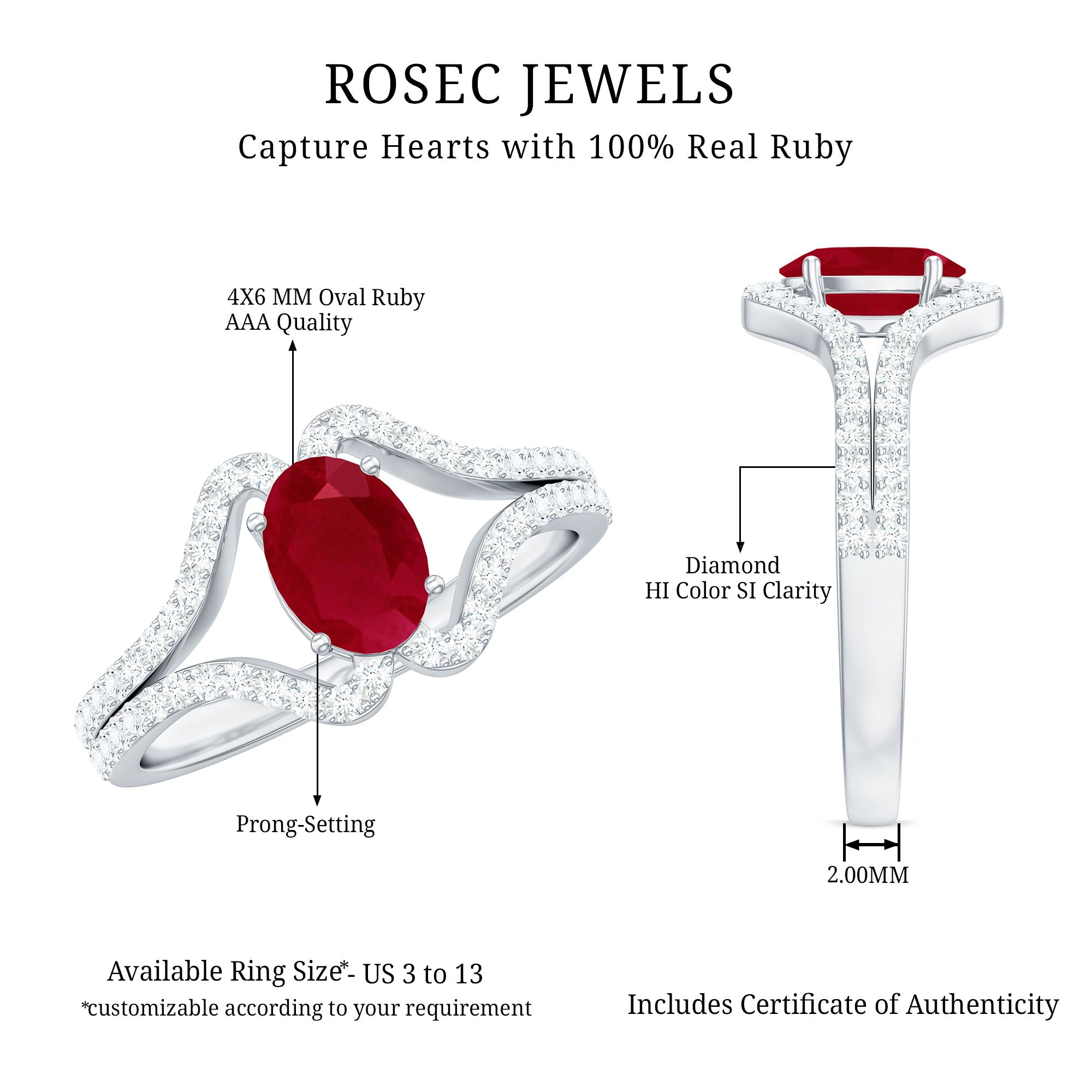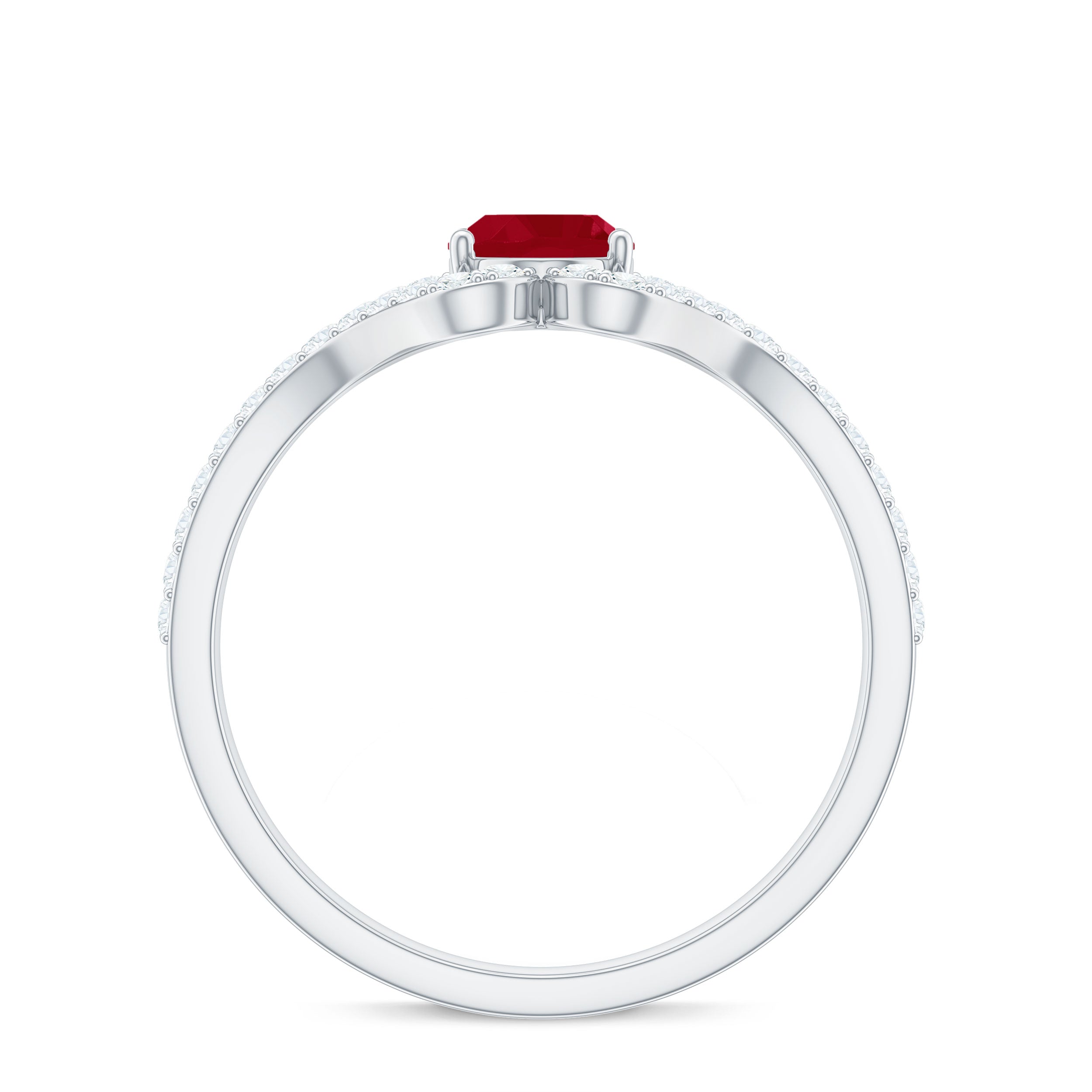Oval Ruby Minimal Split Shank Ring with Diamond