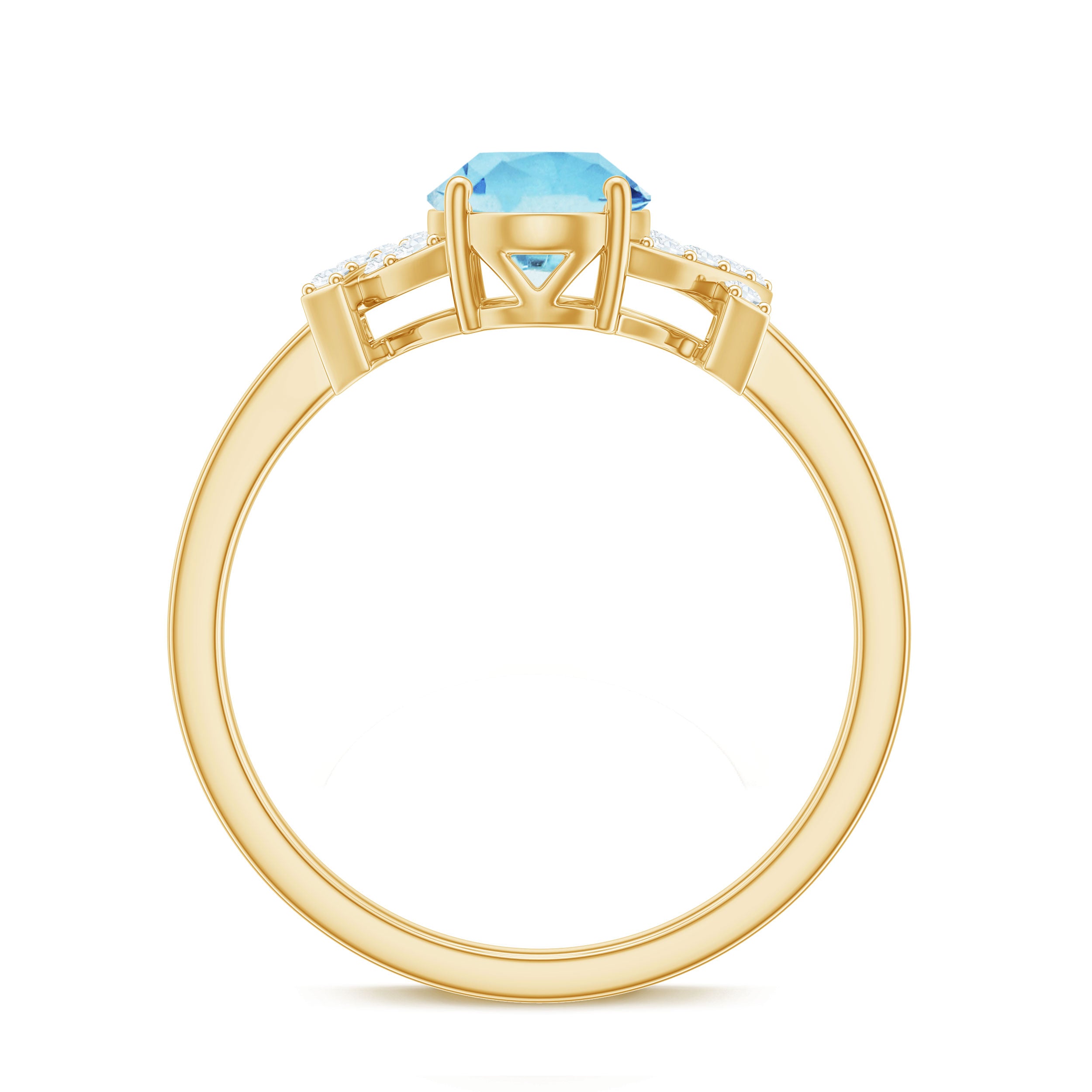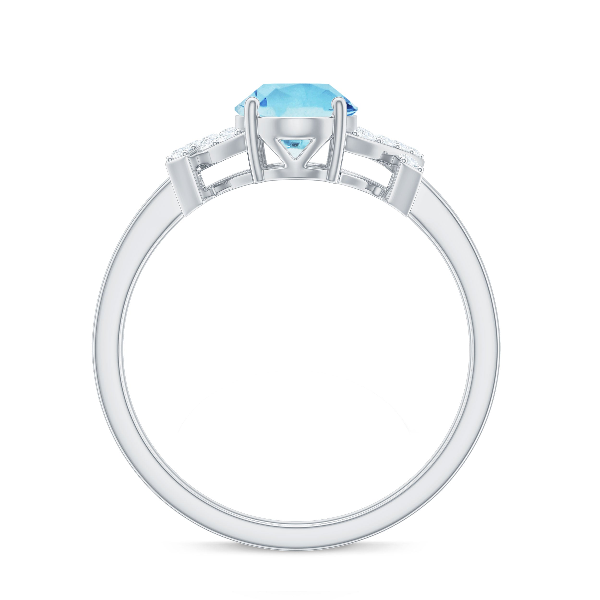 Oval Shape Aquamarine Solitaire Ring with Diamond