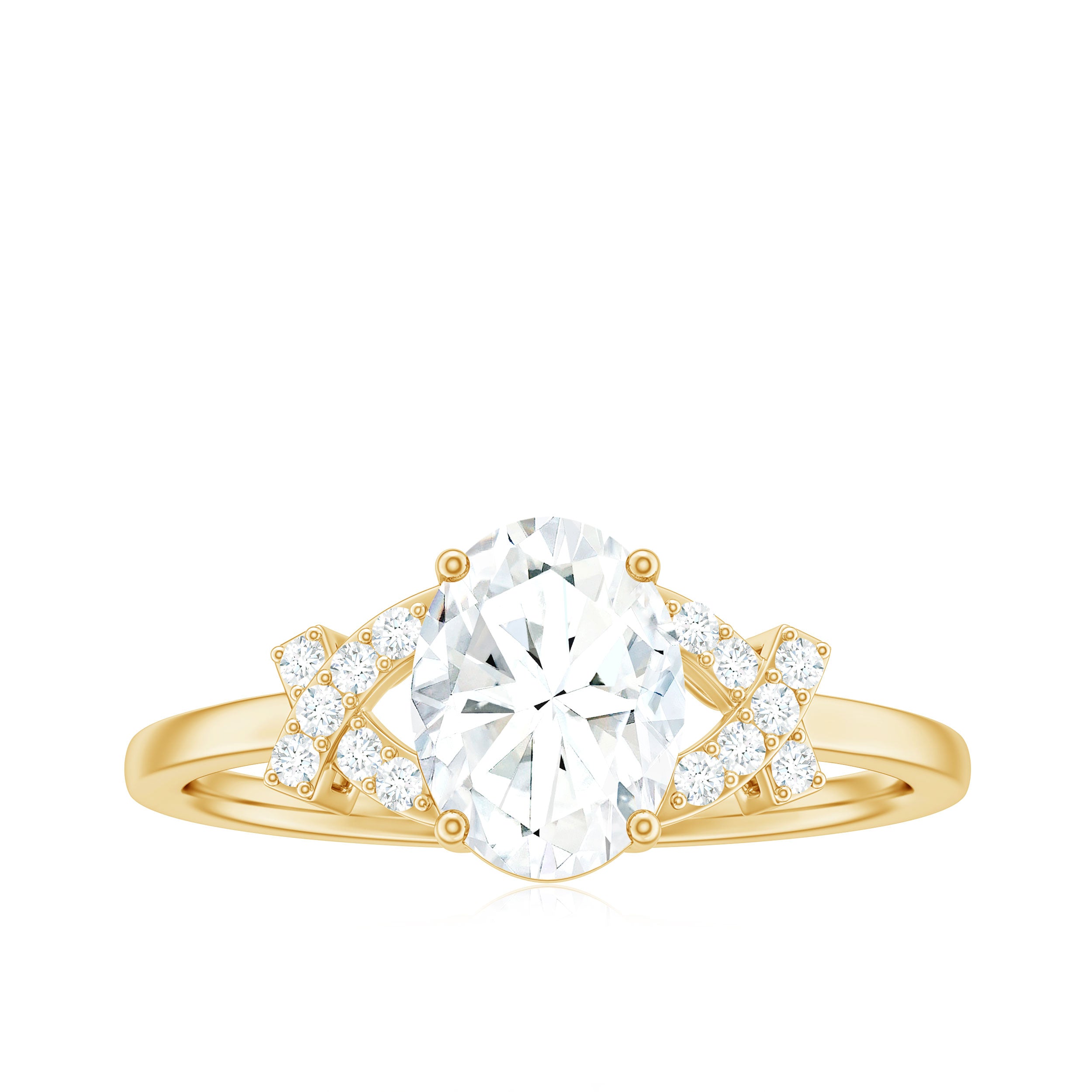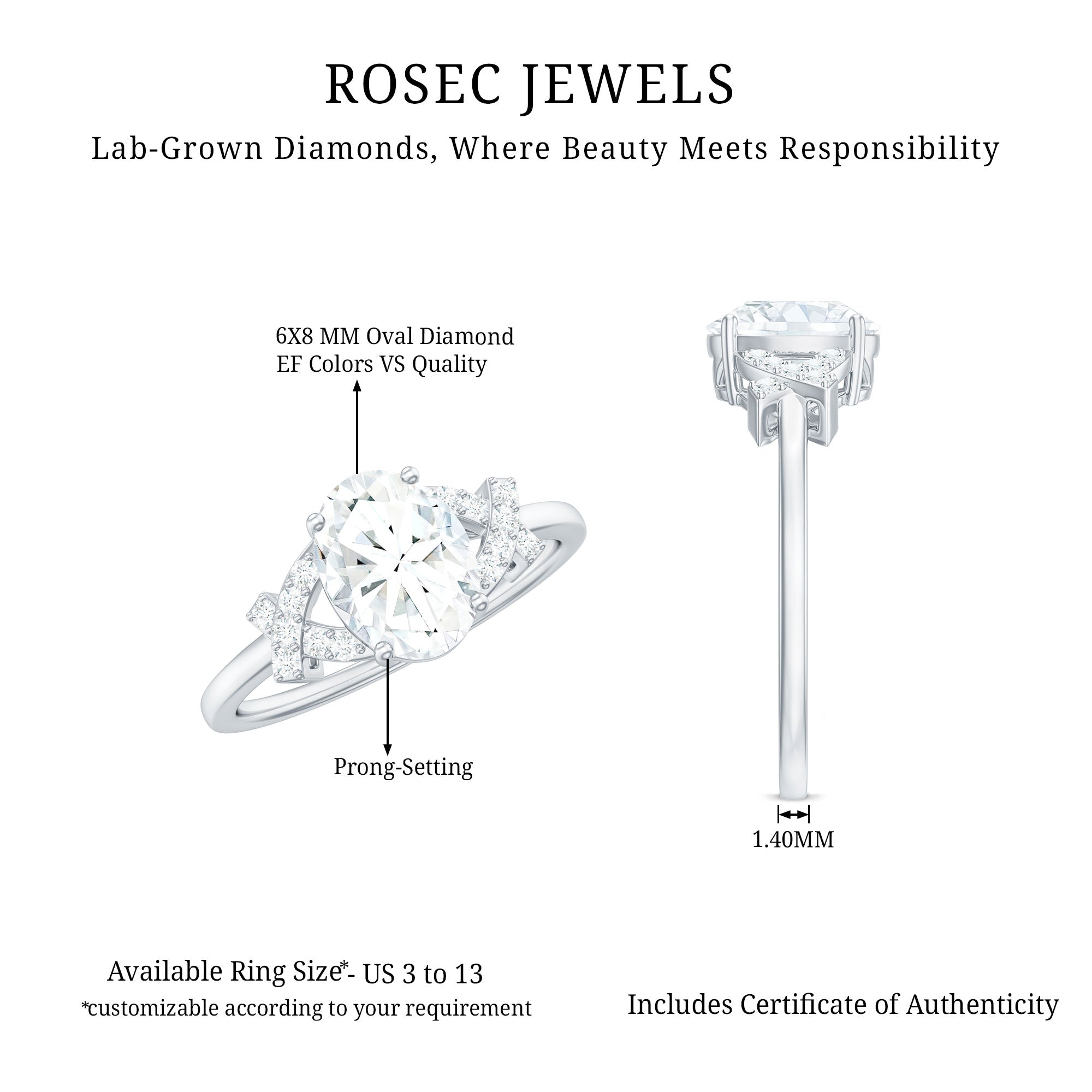 Present this captivating Lab Grown Diamond Ring during your proposal and prepare for an outpouring of compliments. With an oval-shape Lab Grown Diamond set elegantly in a prong setting, accompanied by round Lab Grown Diamond on split shank on the solitaire ring, this ring embodies a commitment meant to last a lifetime. Its unique design is sure to capture her heart and create a moment shell cherish forever.
