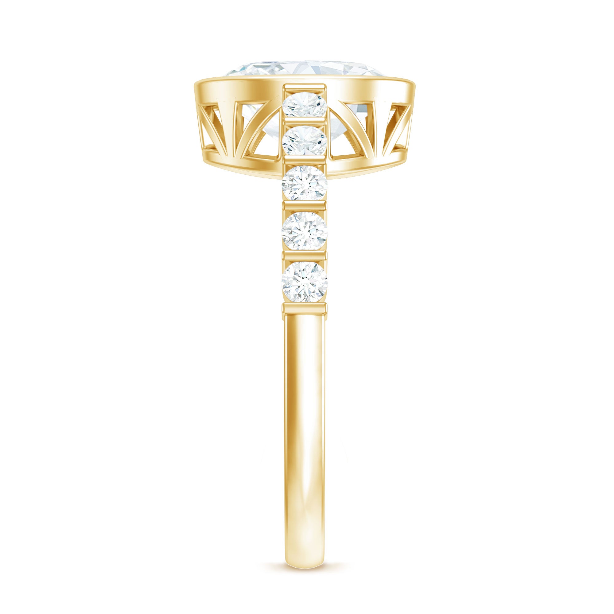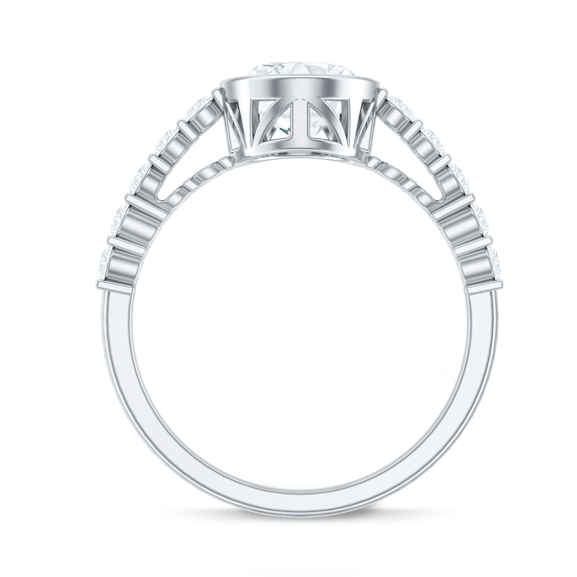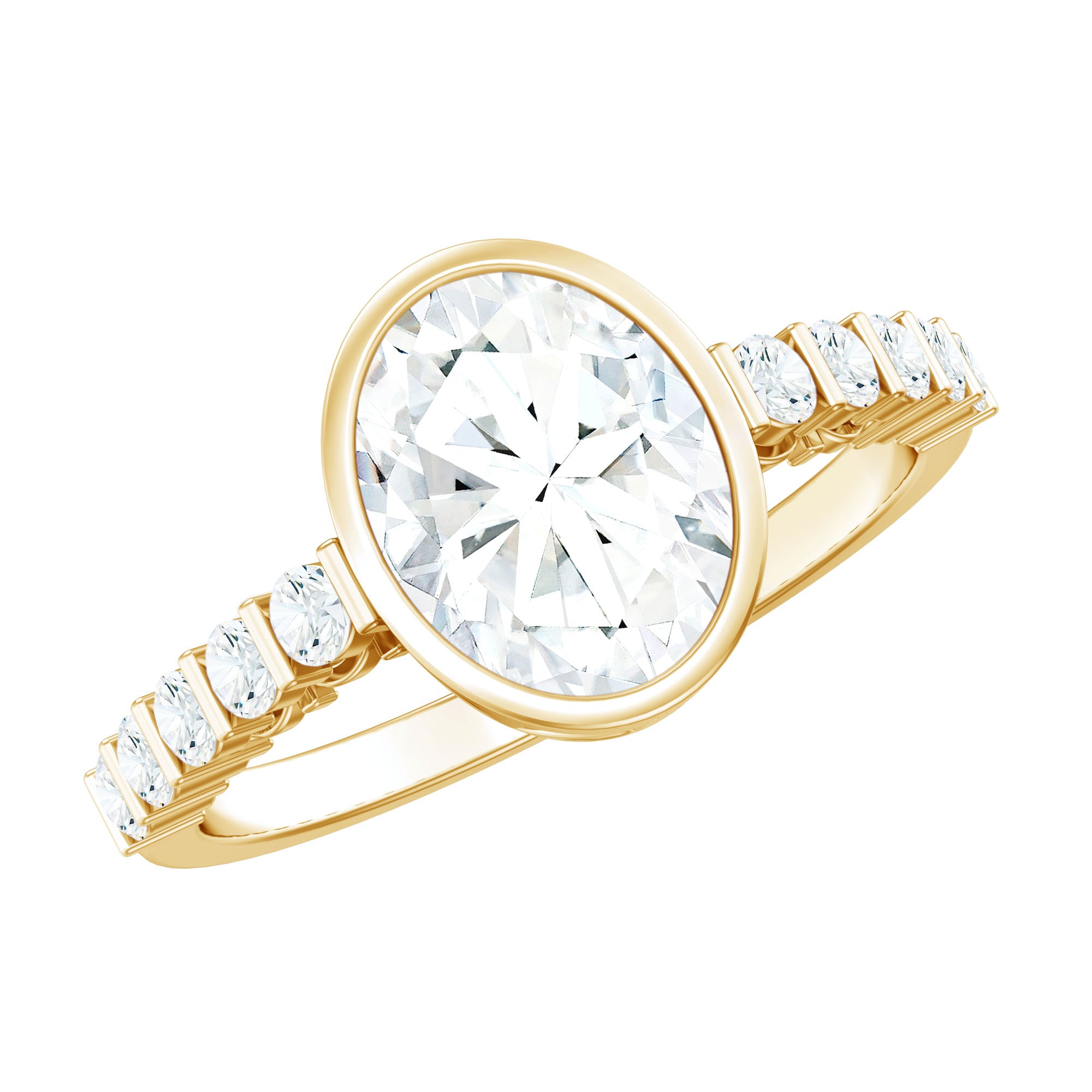 Bezel Set Moissanite Oval Engagement Ring with Side Stones