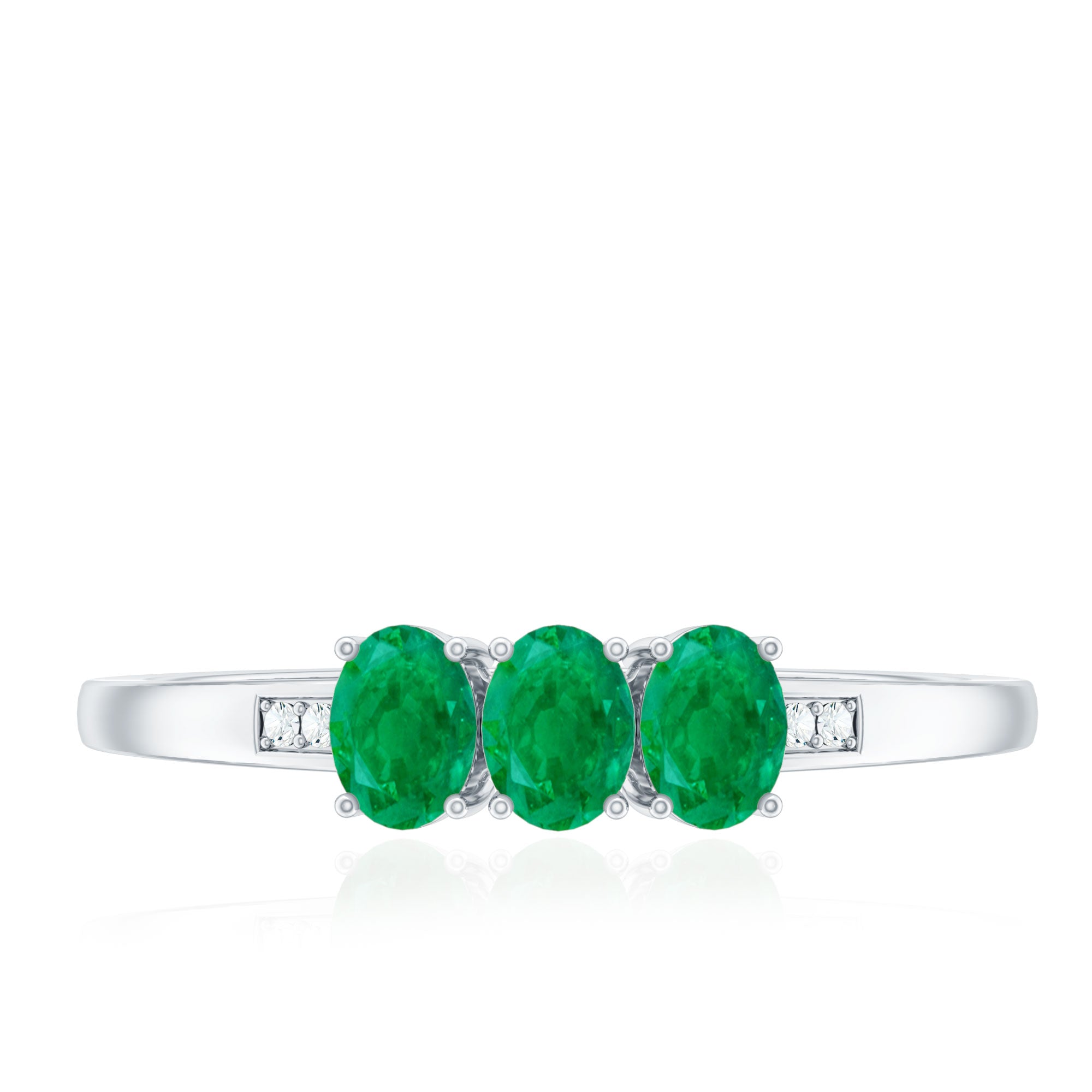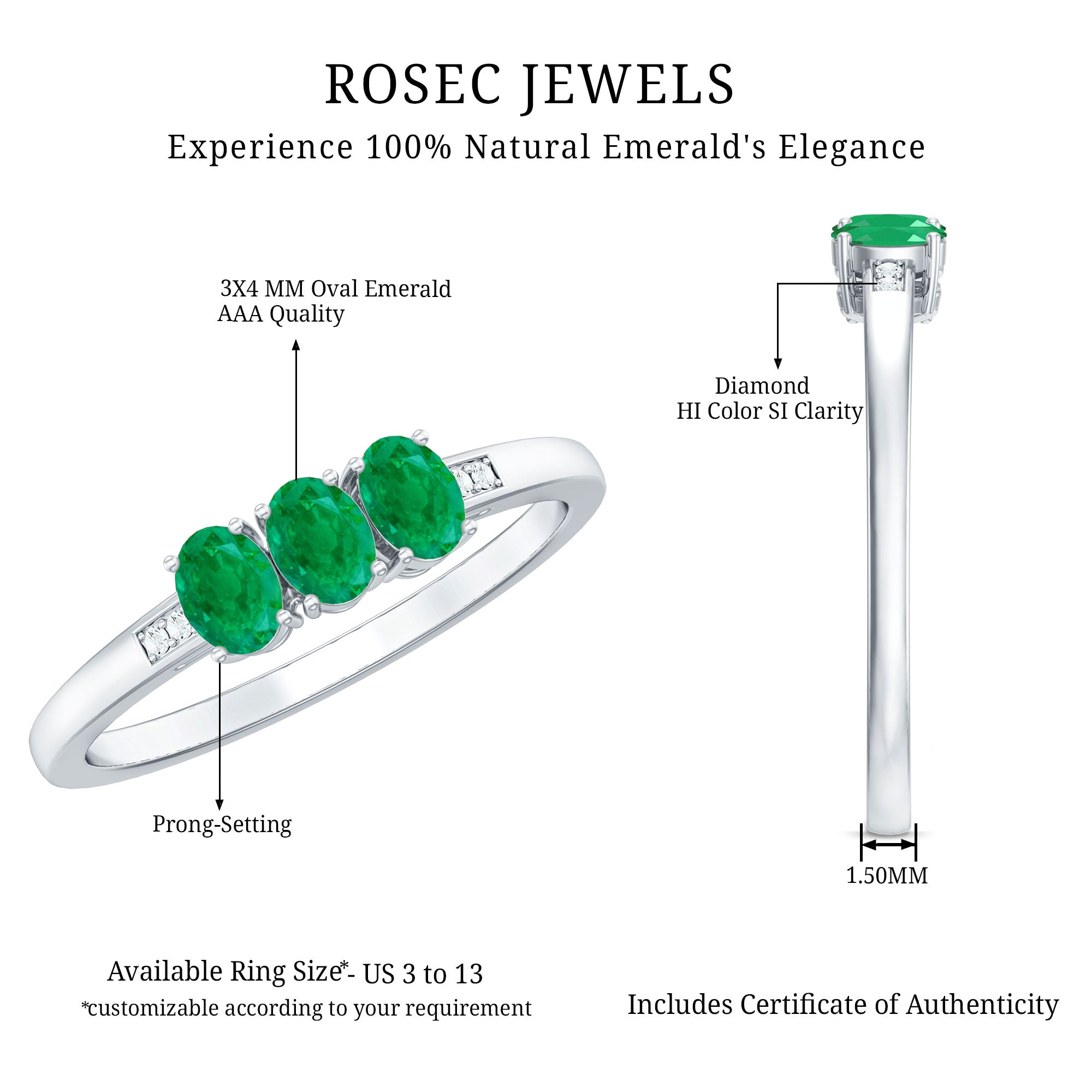 This mesmerizing 3 Stone Promise Ring is a piece designed to capture the essence of devotion and enduring connection. Three Oval Shape Emerald stones of size 3X4 mm set in Prong Setting take center stage, each symbolizing the past, present and future of a shared journey, while sparkling Diamond stones add a luminous touch that reflects the brilliance of a love nurtured over time. The vibrant green of the Emerald stones evokes growth, hope and renewal, perfectly complemented by the dazzling Diamond stones that catch the light with every movement. Thoughtfully designed, this Oval Emerald Ring is ideal as a promise of commitment, an anniversary gift or a heartfelt token to honor someone truly special. Presented in a signature jewelry box and available in various ring sizes, this Emerald Diamond Ring is made to be treasured, worn and admired for years to come. Every glance at this enchanting Emerald Proposal Ring tells a story of love that is constant and unwavering.