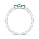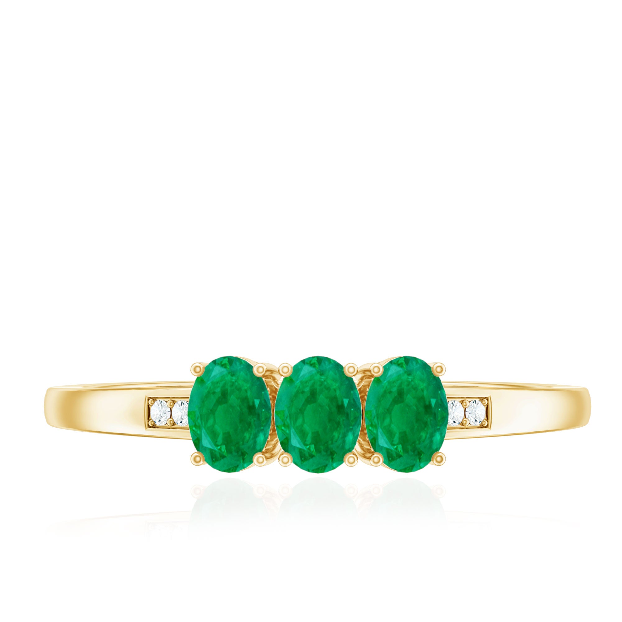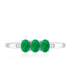 Certified Real Oval Emerald Three Stone Promise Ring with Diamond