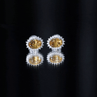 Adorn your ears with a bright hue exuding from these Citrine Stud Earrings made with white gold plated silver. The earrings feature a 6X8 MM Citrine of AAA Quality encircled with smaller Moissanite stones of D-VS1 Quality. These Halo Earrings can be styled with various fits, including cocktail parties, Sunday brunches, etc. The earrings can be presented to your special one to make them feel loved and cherished. These Oval Stud Earrings will complete your special day look with their bright shine and can be a classic gift for your beloved on their special day.