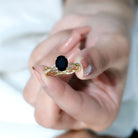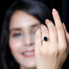 Designed to honor meaningful moments, this Black Onyx Engagement Ring brings together thoughtful details and timeless beauty. At the center of the Braided Engagement Ring sits a 7X9 MM oval cut black onyx, set securely in prong setting. What truly sets this Oval Shaped Engagement Ring apart is its braided band, which gently wraps around the finger in a woven pattern. The braided design represents unity and connection, making it a beautiful symbol of two lives coming together. Small round cut diamonds are delicately placed along the band, adding a soft shimmer that enhances the richness of the onyx. A surprise diamond beneath the center stone adds a subtle touch of sparkle and sentiment, a detail that makes the Black Onyx Oval Ring even more special. The infinity inspired braiding brings a romantic and graceful feel, blending traditional charm with a modern design approach. Crafted with care using AAA quality Black onyx and HI-SI quality diamonds, the December Birthstone Engagement Ring is available in US sizes 3 to 13, allowing for a secure and perfect fit. This Black Onyx and Diamond Ring is designed to be both beautiful and lasting.