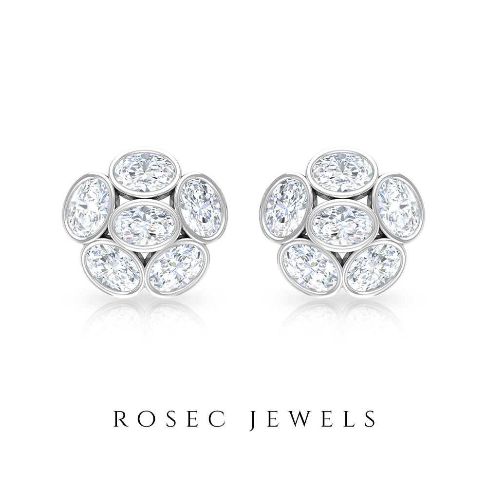 Oval Shaped Diamond Cluster Stud Earrings