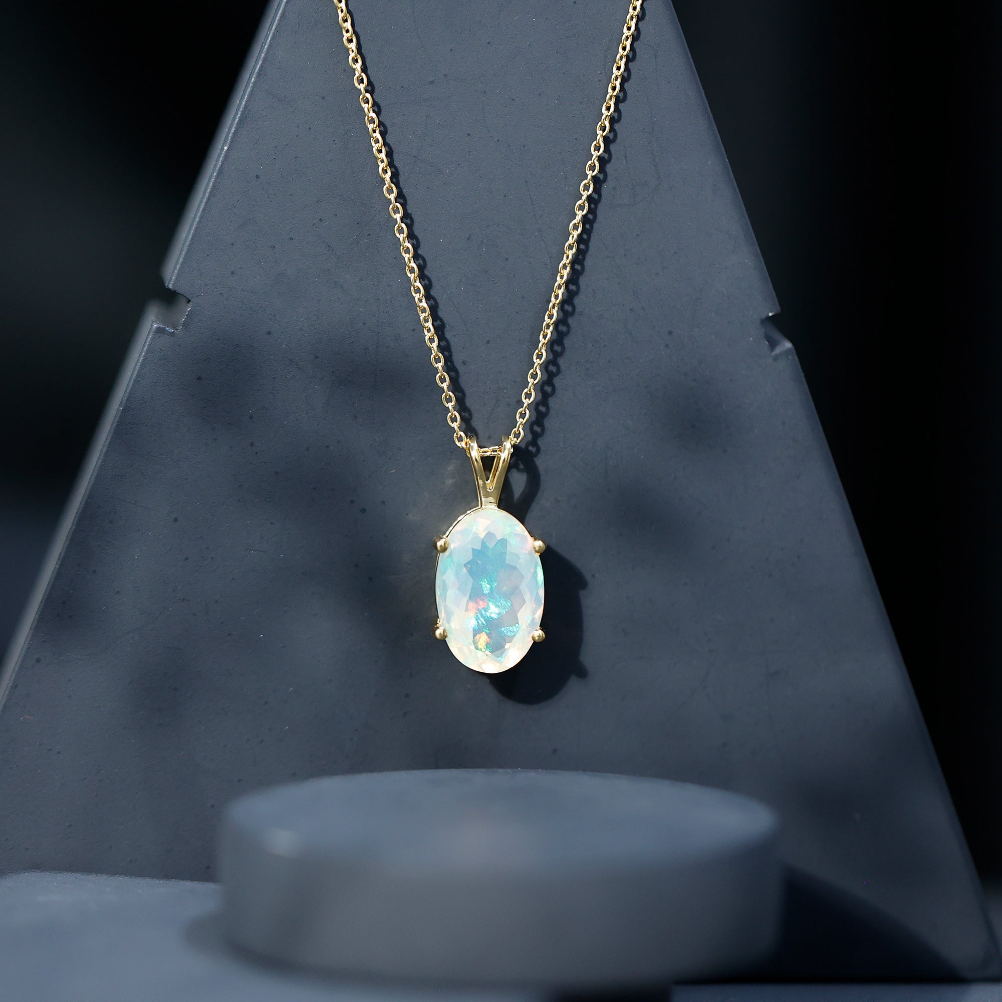Oval Shaped Huge Ethiopian Opal Birthstone Necklace with Chain