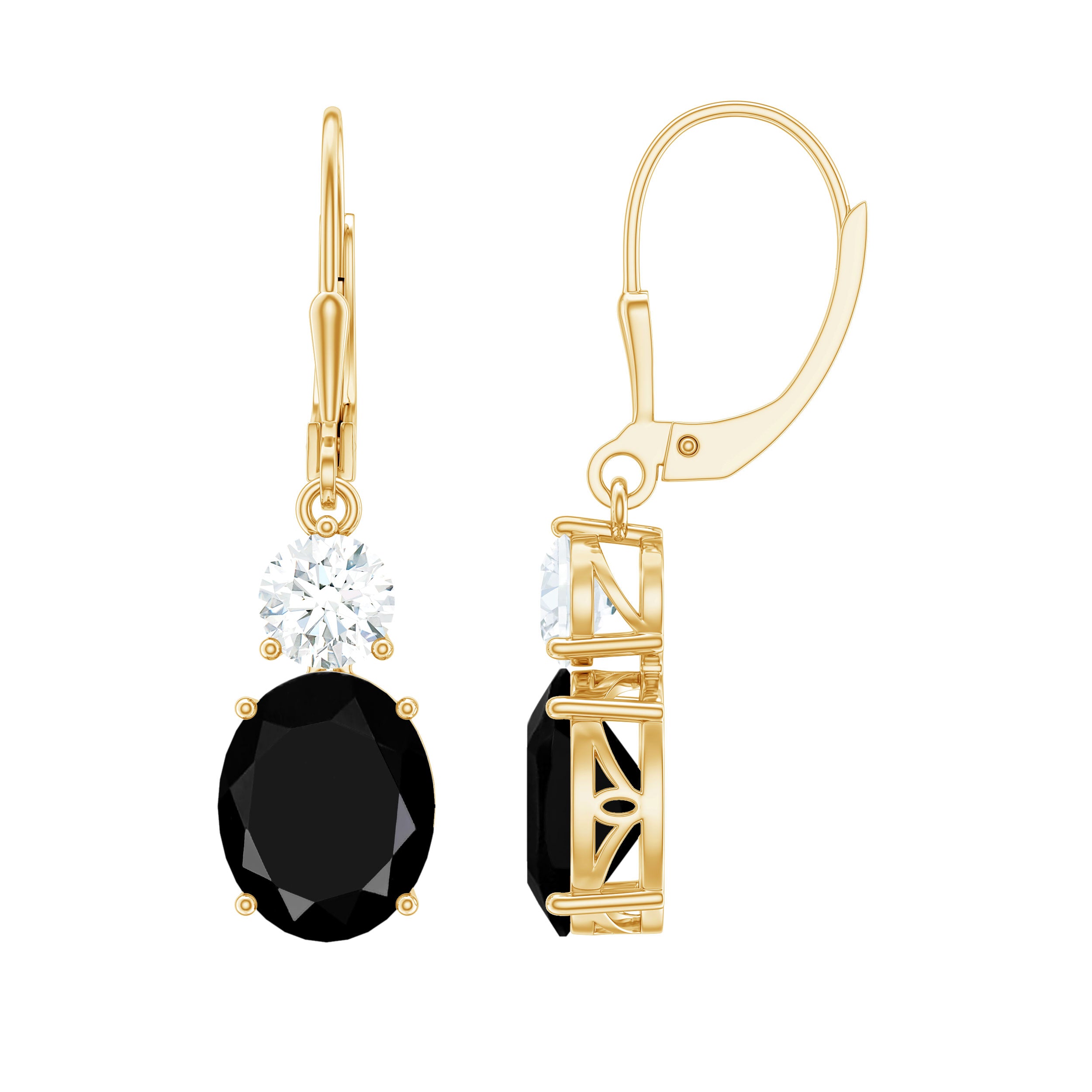 A touch of bold sophistication meets timeless design in these Lab Created Black Diamond Earrings. Made for women who appreciate style with confidence, they bring a perfect balance of luxury and elegance. Each Dangle Drop Earring features an 8X10 MM oval shaped lab created black diamond of AAAA quality set in prong setting. Above the center stone sits a brilliant round moissanite, adding a radiant sparkle that beautifully contrasts the rich black hue. The elegant drop design allows the stones to catch the light with every movement, creating a graceful and eye-catching effect. Crafted with care, the Black Diamond Hoop Earrings hang securely from lever back closures, ensuring both comfort and stability for all-day wear. Their timeless yet modern appeal makes them a versatile addition to any jewelry collection, perfect for evening events, weddings, or simply adding sophistication to an everyday outfit. The refined combination of the dark center stone and shimmering moissanite offers a unique statement of beauty and strength. Ethically made and eco-friendly, these Oval Drop Earrings are crafted to last, offering both elegance and peace of mind.