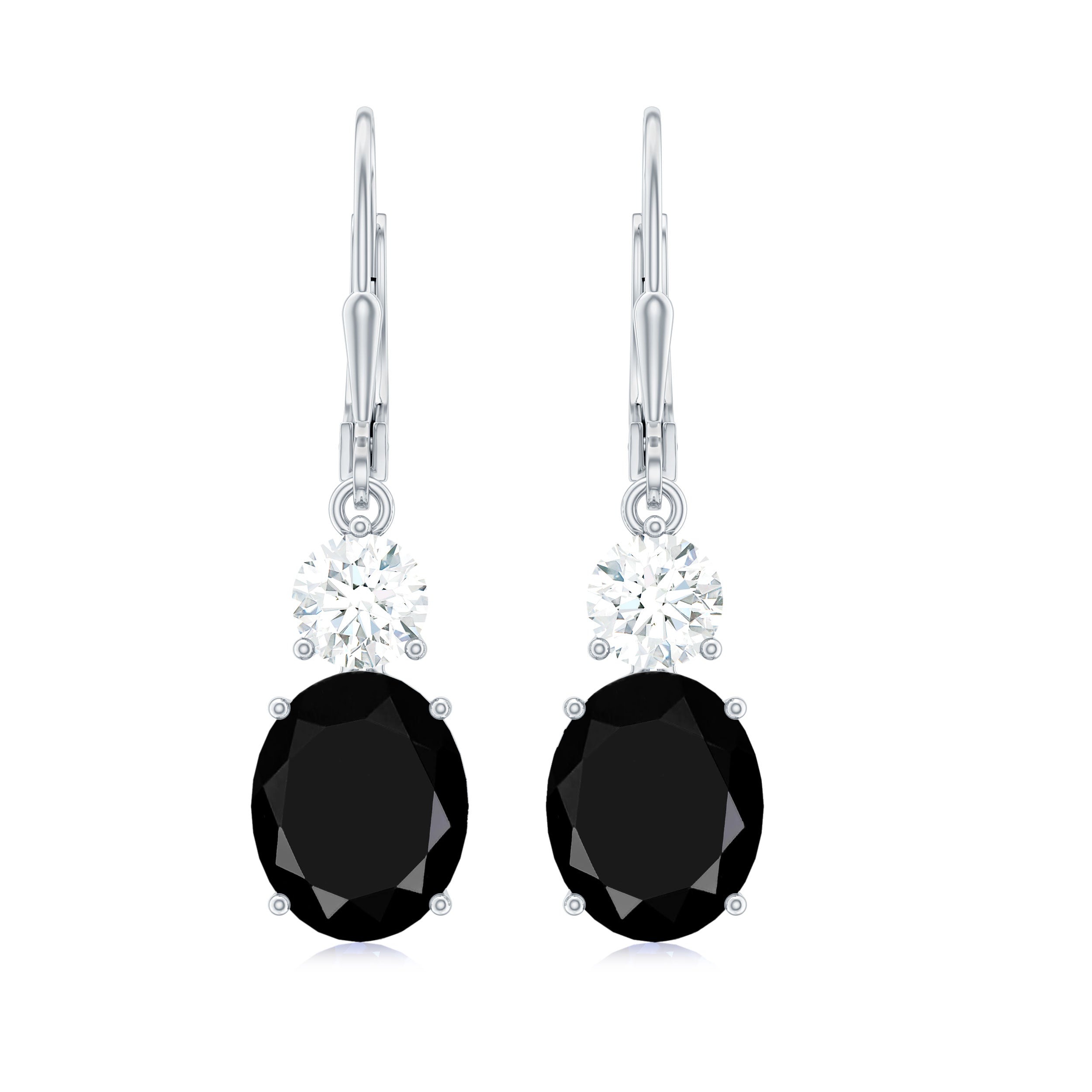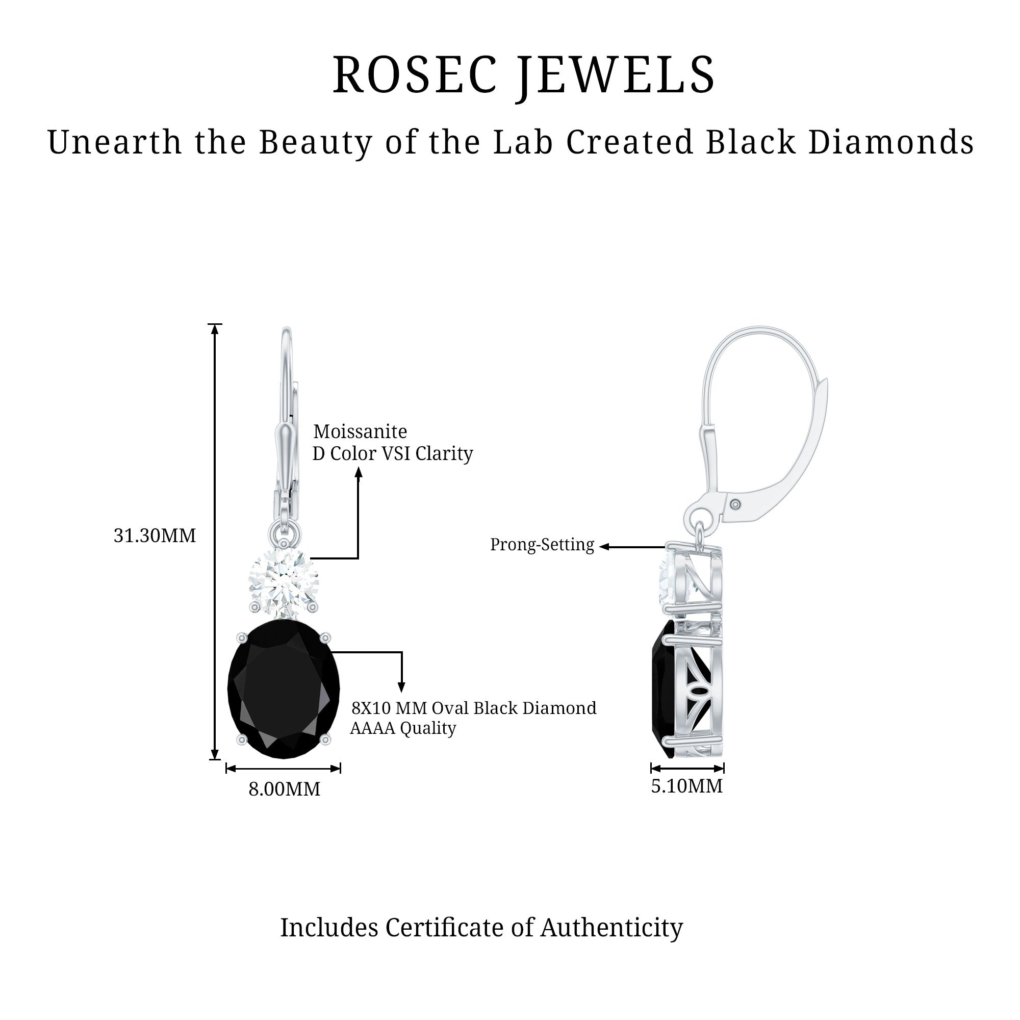A touch of bold sophistication meets timeless design in these Lab Created Black Diamond Earrings. Made for women who appreciate style with confidence, they bring a perfect balance of luxury and elegance. Each Dangle Drop Earring features an 8X10 MM oval shaped lab created black diamond of AAAA quality set in prong setting. Above the center stone sits a brilliant round moissanite, adding a radiant sparkle that beautifully contrasts the rich black hue. The elegant drop design allows the stones to catch the light with every movement, creating a graceful and eye-catching effect. Crafted with care, the Black Diamond Hoop Earrings hang securely from lever back closures, ensuring both comfort and stability for all-day wear. Their timeless yet modern appeal makes them a versatile addition to any jewelry collection, perfect for evening events, weddings, or simply adding sophistication to an everyday outfit. The refined combination of the dark center stone and shimmering moissanite offers a unique statement of beauty and strength. Ethically made and eco-friendly, these Oval Drop Earrings are crafted to last, offering both elegance and peace of mind.