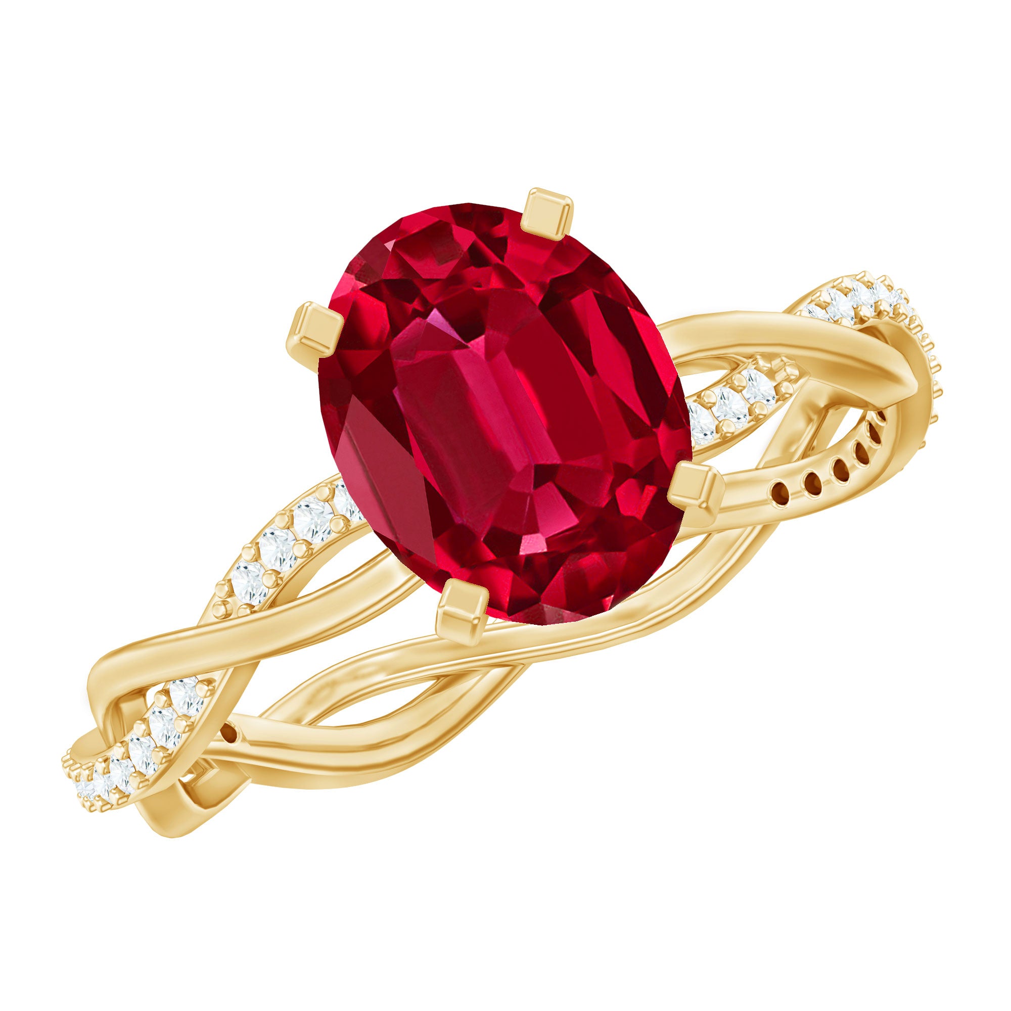 Oval Shaped Lab Ruby and Diamond Braided Engagement Ring