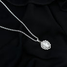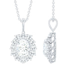 Make your style talk of the town with this Moissanite Pendant Necklace that dazzles with extraordinary shine. The pendant features a 6X8 MM Oval Shape Moissanite of D-VS1 Quality securely placed in Prong Setting and encircled by a Double Halo of smaller Moissanite Stones. This Oval Pendant Necklace has a unique design and dazzles with the sparkling shine of Moissanites, which makes it a statement necklace to wear on special days. The Cocktail Pendant can be an ideal gift for your better half on special days such as birthdays and anniversaries.