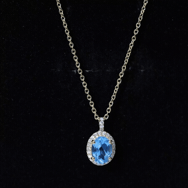 Oval Shaped Swiss Blue Topaz and Diamond Halo Necklace